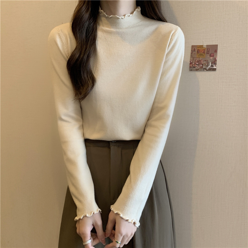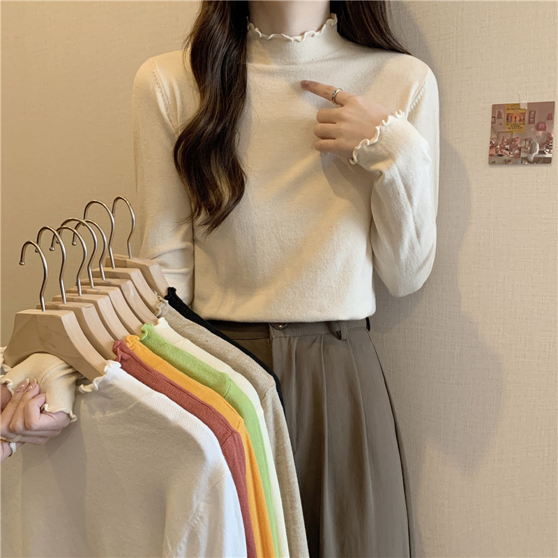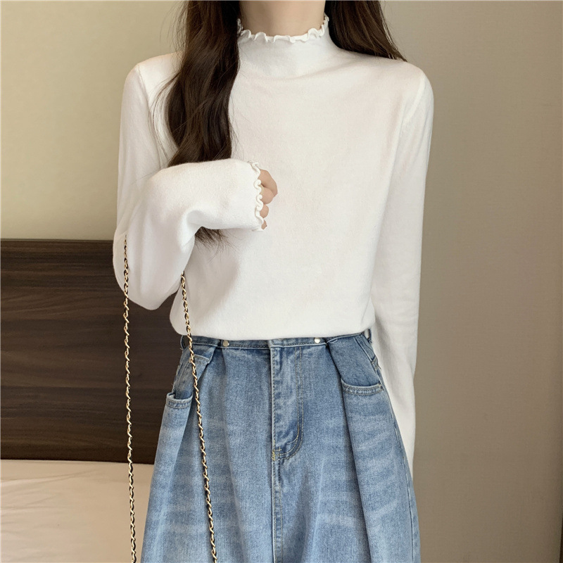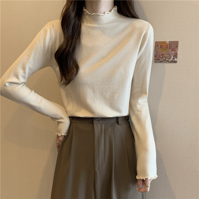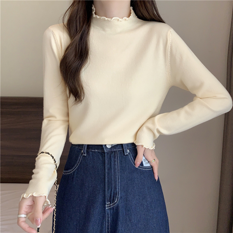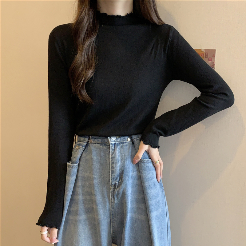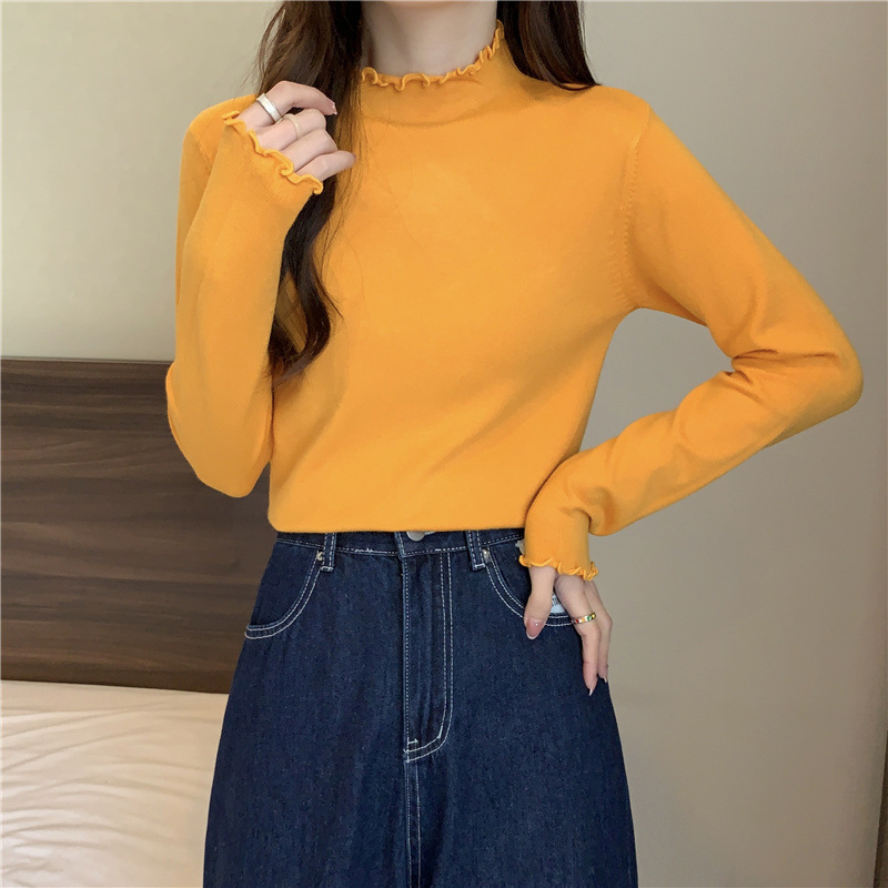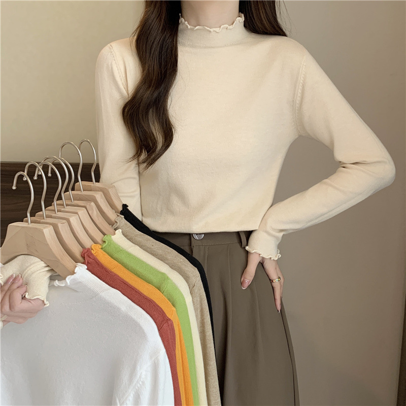 2635#秋季2022新款软糯半高领木耳边针织打底衫上衣女装长袖毛衣
