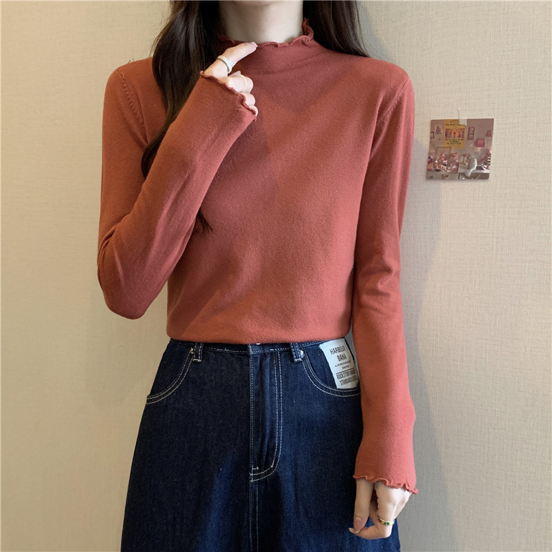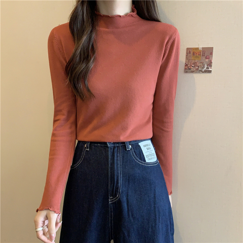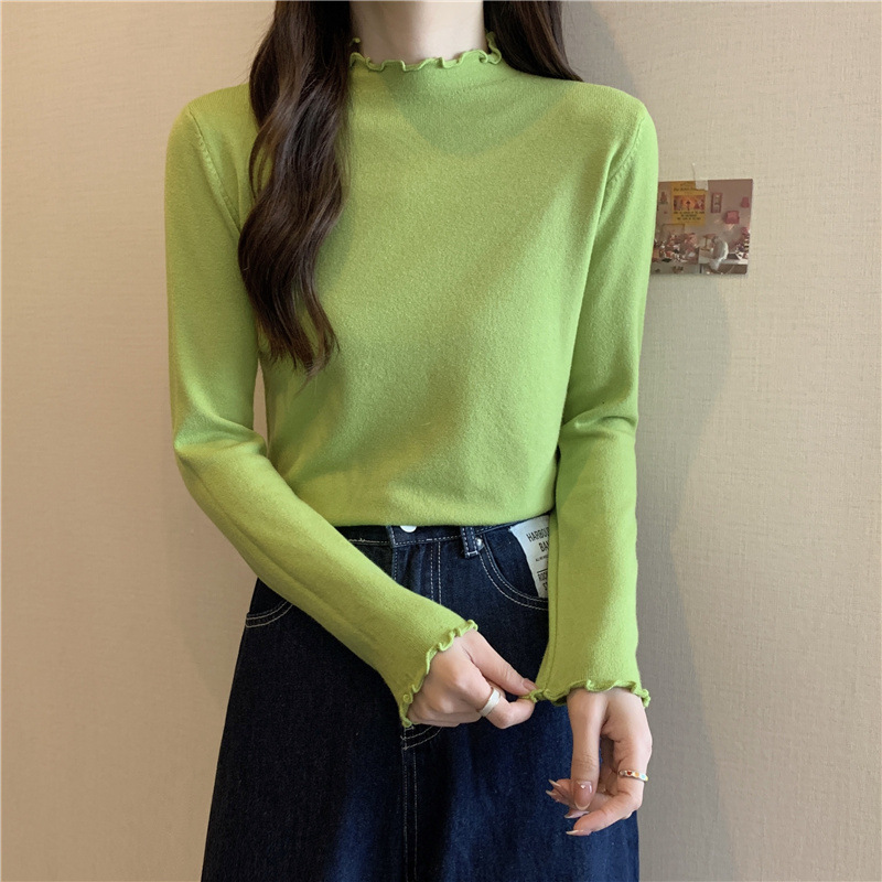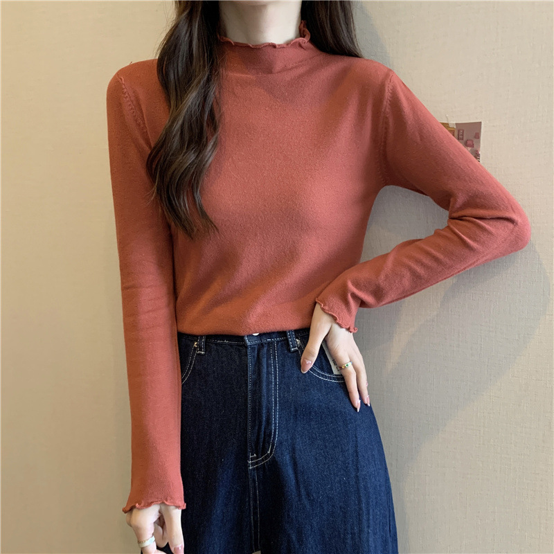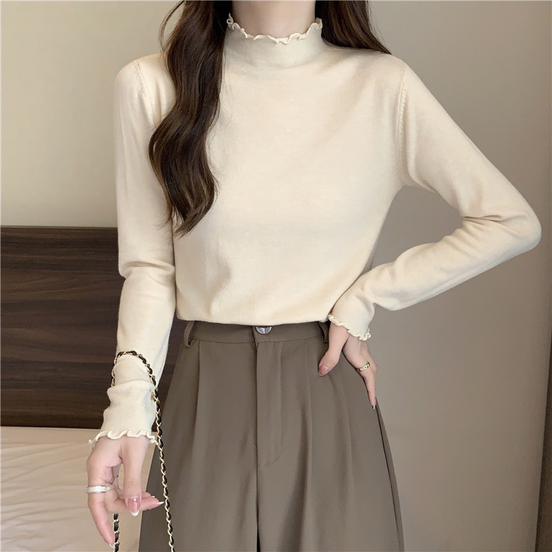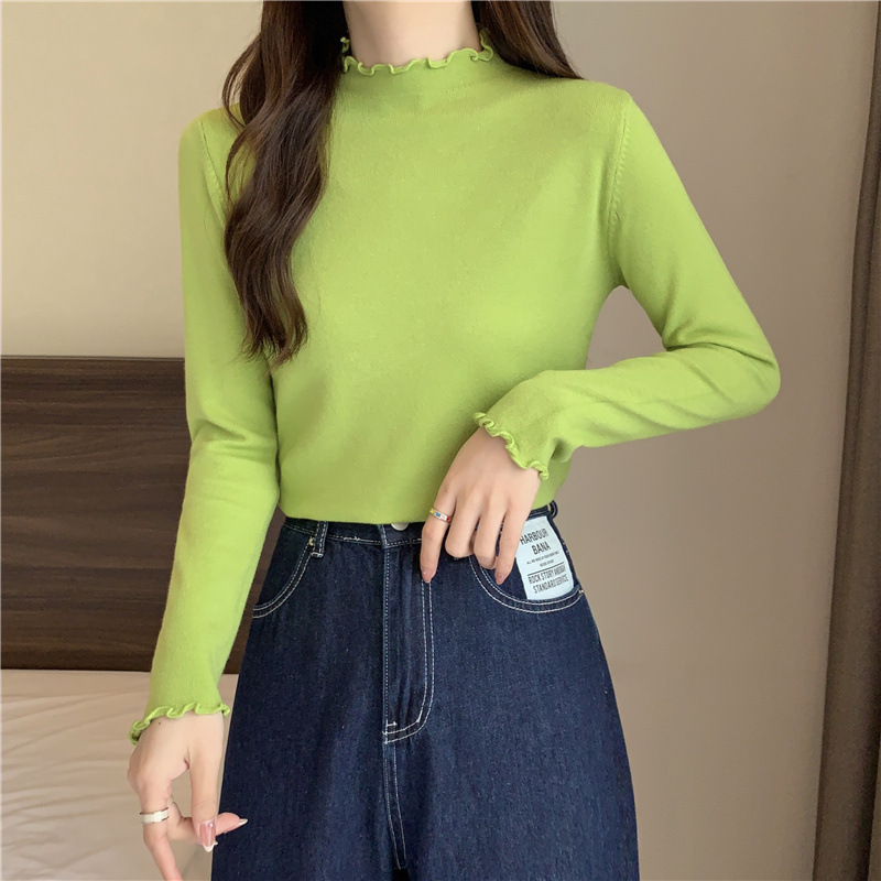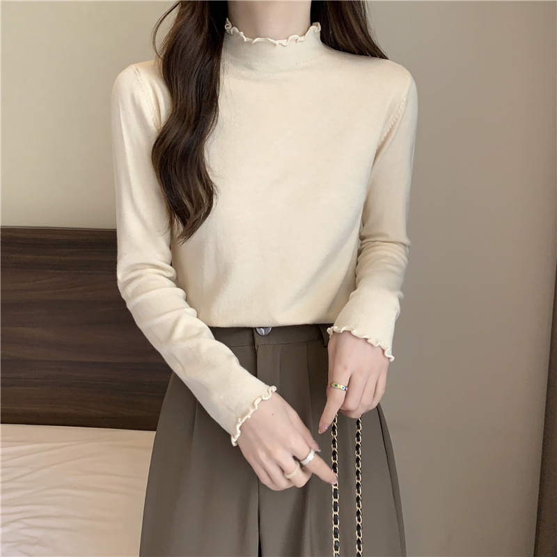 2635#秋季2022新款软糯半高领木耳边针织打底衫上衣女装长袖毛衣