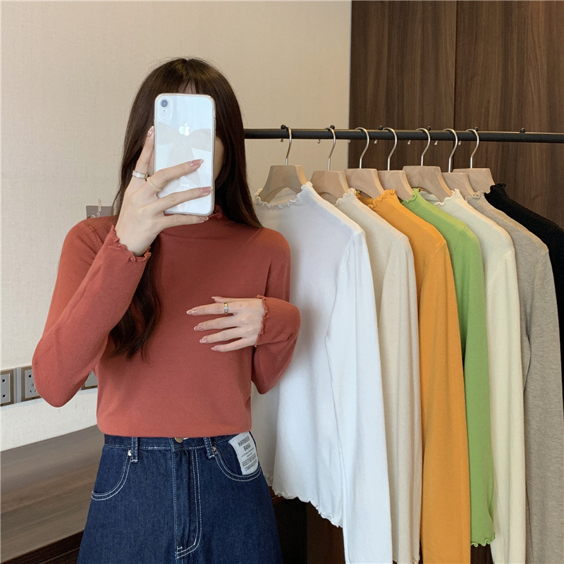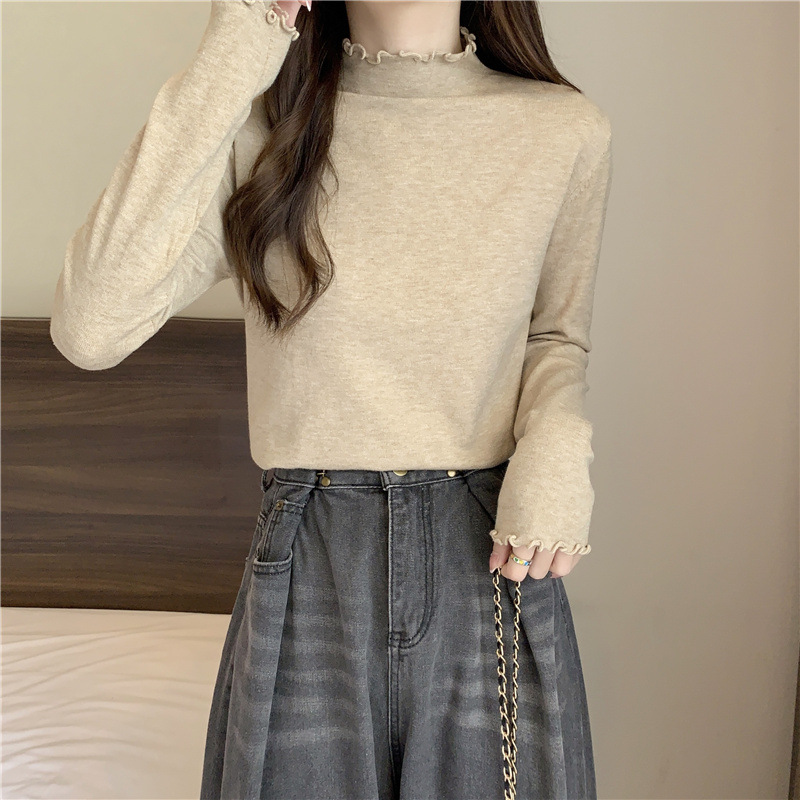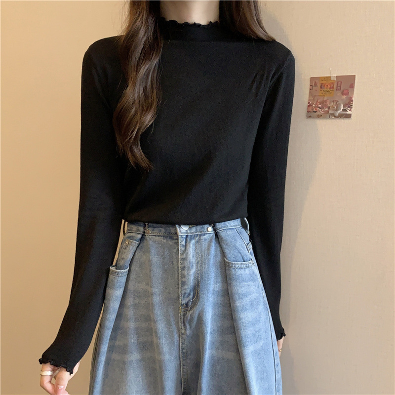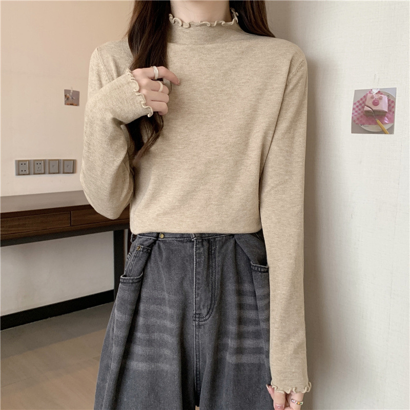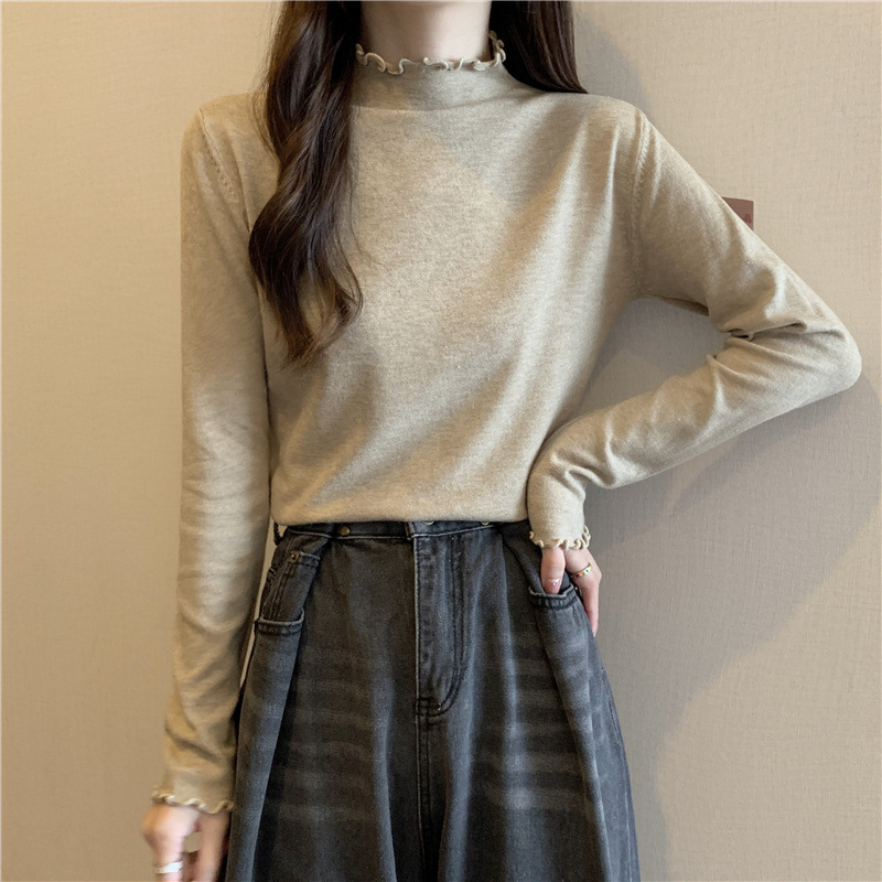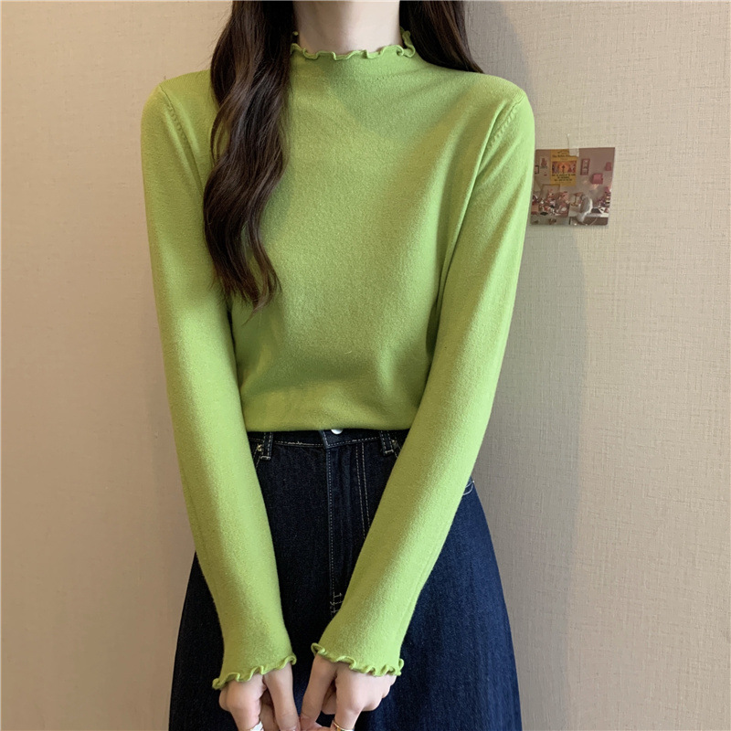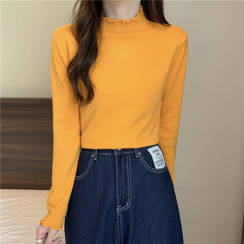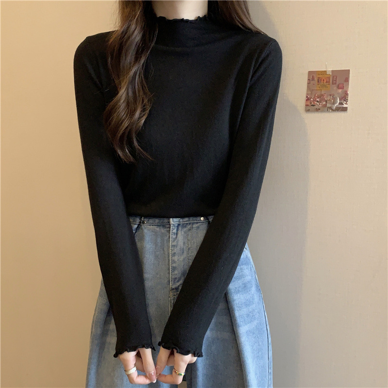 2635#秋季2022新款软糯半高领木耳边针织打底衫上衣女装长袖毛衣