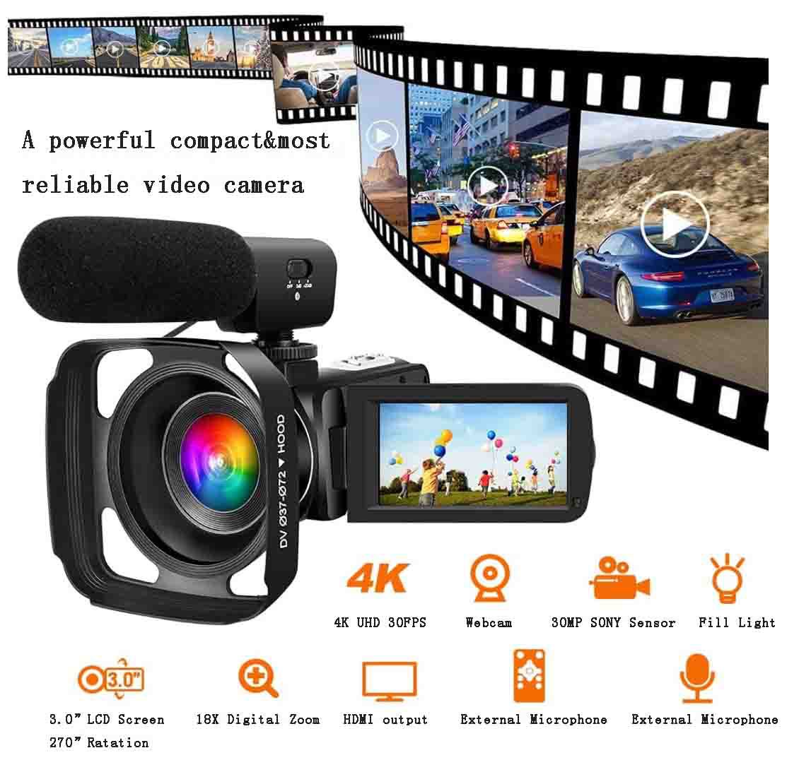 高清4K,2.7K ,1080P 30FPS 和 56MP 和 18X 数码变焦和 3.0 英寸 IPS 触摸屏,270° 可旋转;