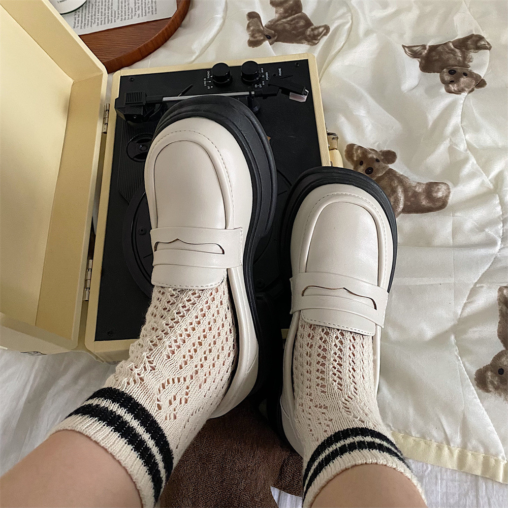 빈티지 영국 스타일 가을과 겨울 기모 작은 가죽 신발 여성용 2022 새로운 라운드 발가락 모든 일치 두꺼운 바닥 증가 Lefu 단일 신발스토어 가기