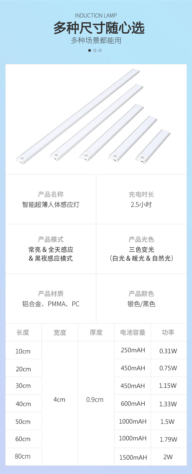 초박형 스마트 충전식 인체 센서 라이트 자기 자체 접착 긴 LED 옷장 캐비닛 와인 캐비닛 라이트 스트립 라이트 스트립