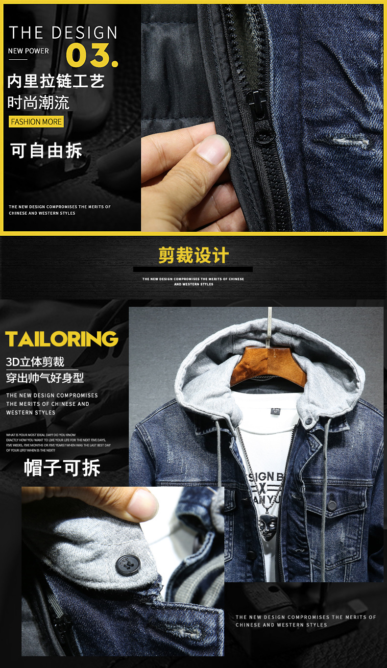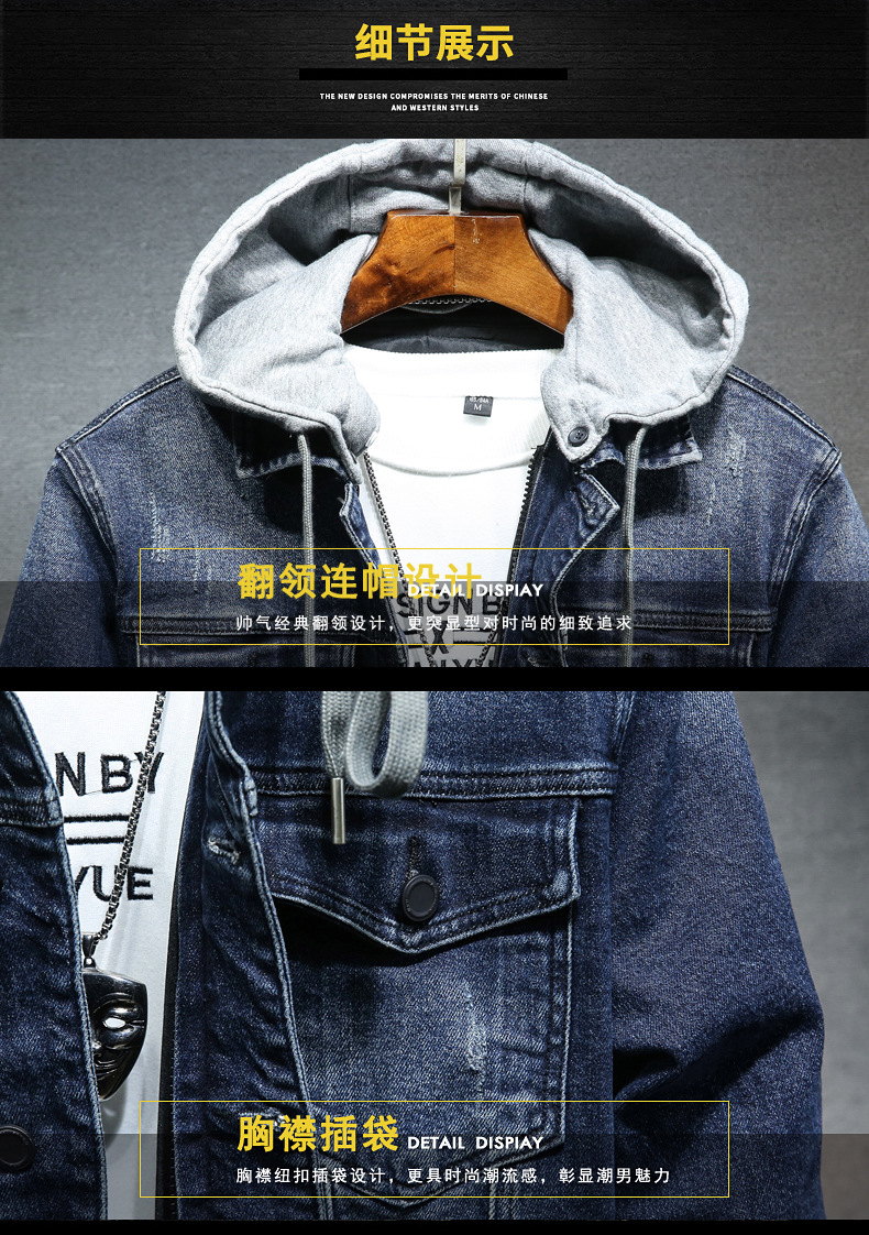 도매 겨울 분리 모자 개인 데님 의류 남자의 청소년 느슨한 데님 재킷 코트 블루 코튼 재킷 남성용