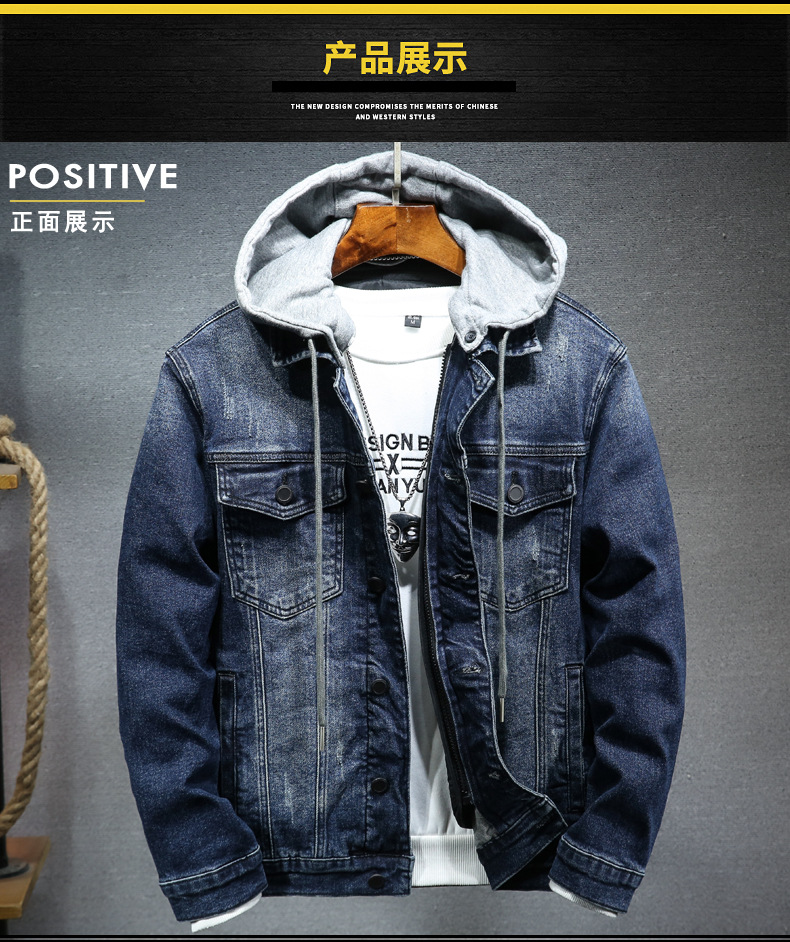 도매 겨울 분리 모자 개인 데님 의류 남자의 청소년 느슨한 데님 재킷 코트 블루 코튼 재킷 남성용스토어 가기