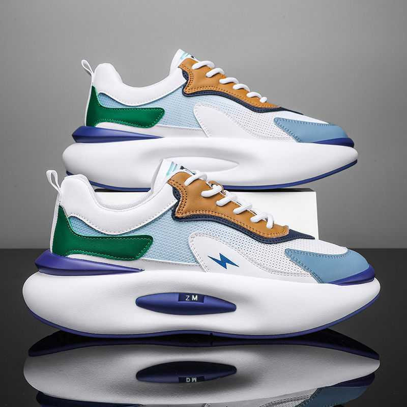 국경 간 스포츠 신발 남자 2024 새로운 비행 직조 통기성 남성 러닝 슈즈 대외 무역 저급 두꺼운 트렌디 토르 슈즈스토어 가기