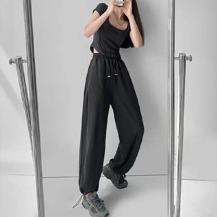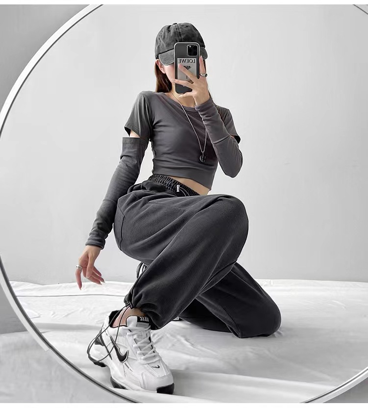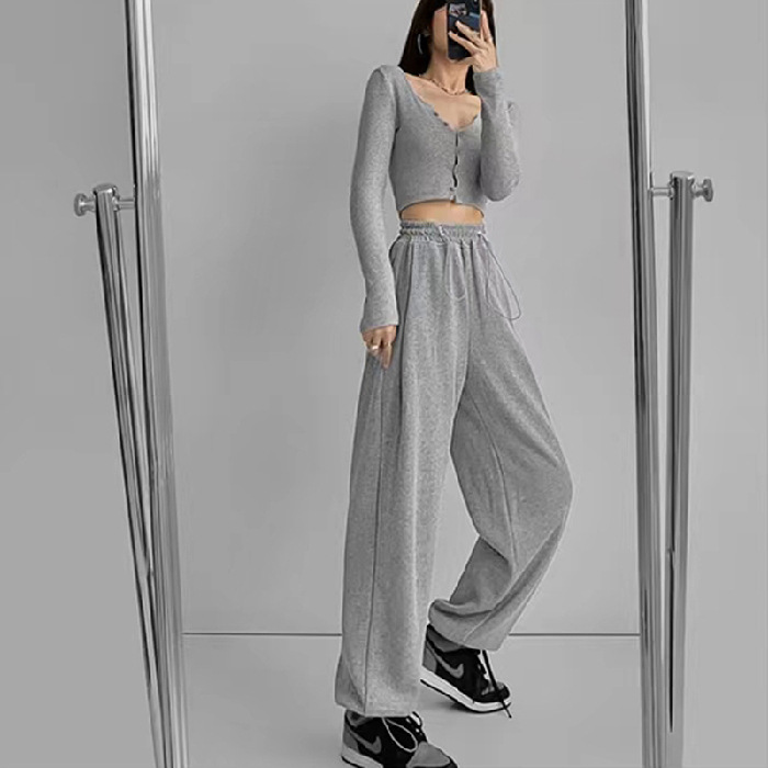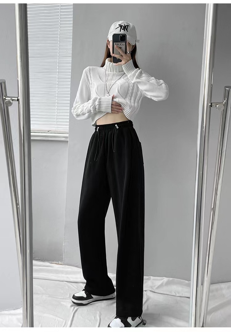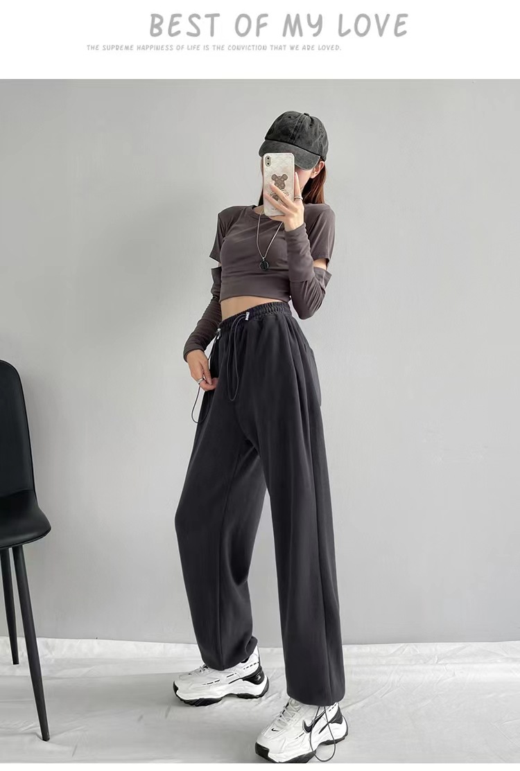 그레이 티 가을과 겨울 두꺼운 블랙 스포츠 바지 여자의 봄과 가을 캐주얼 바지 새로운 슬리밍 기모 와이드 레그 바지
