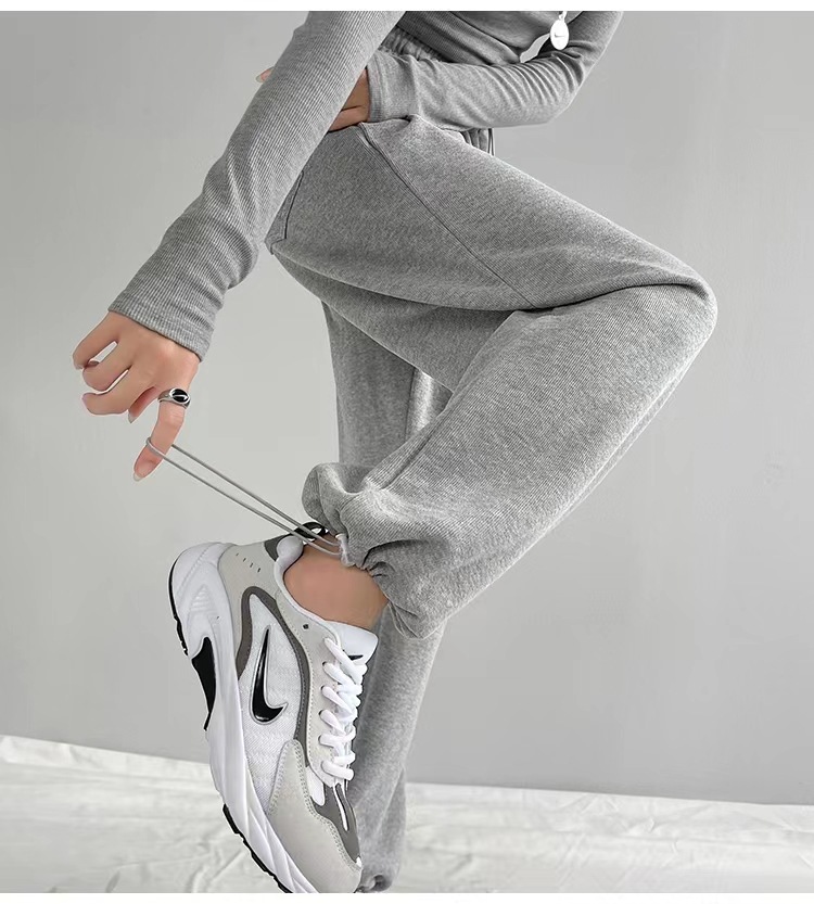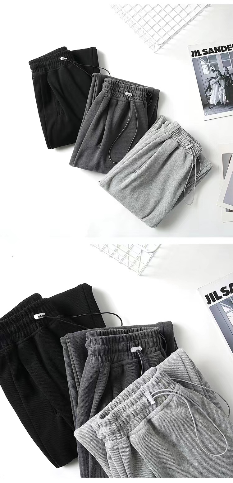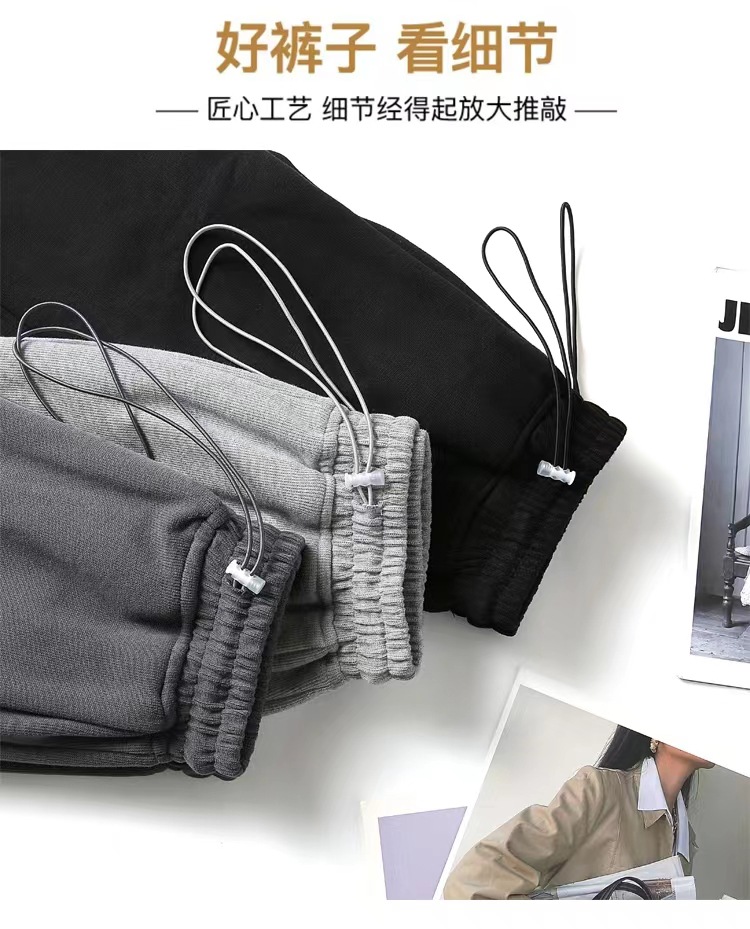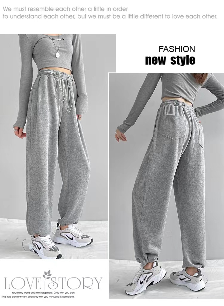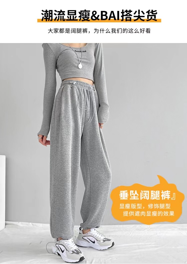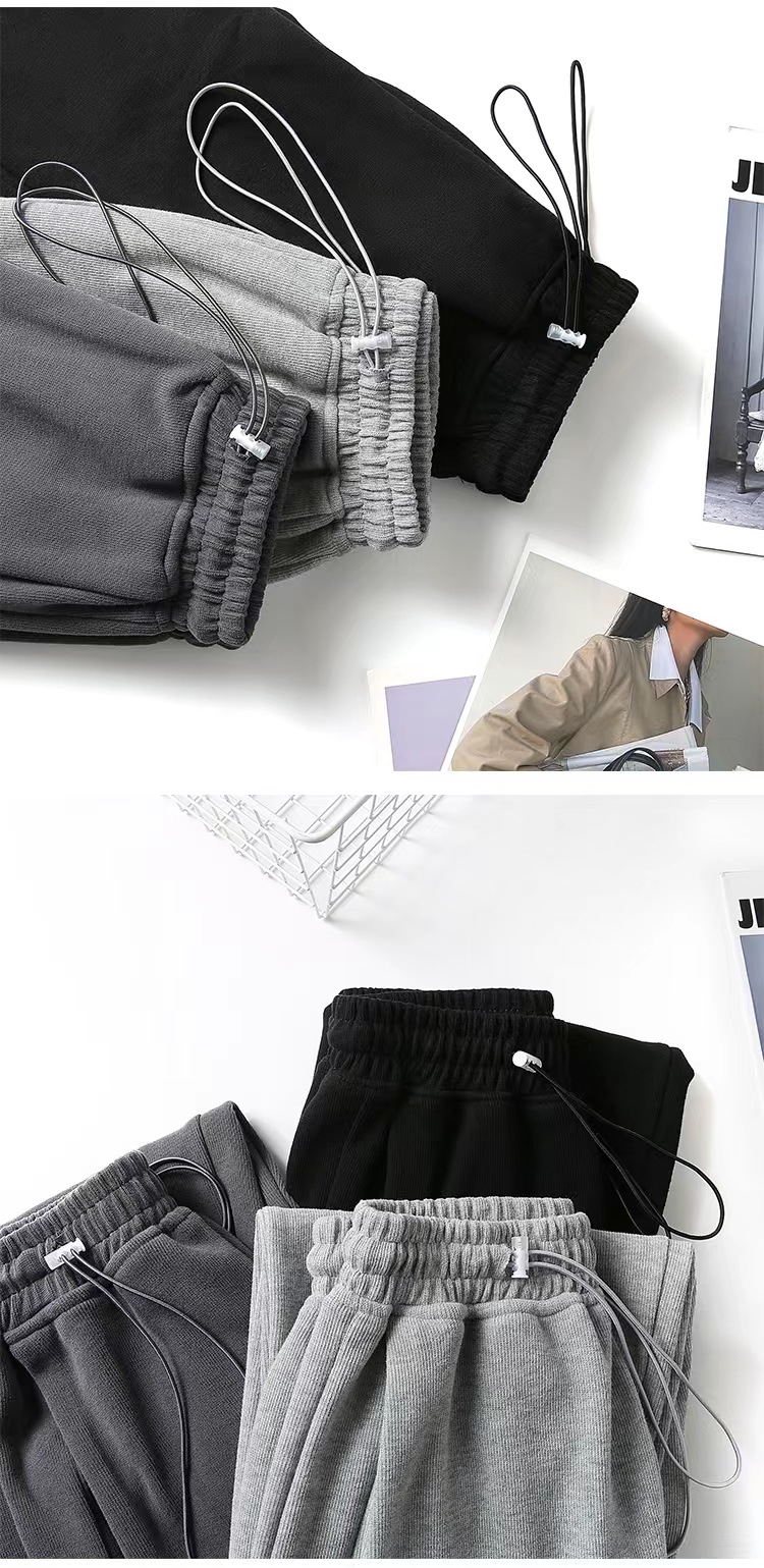 그레이 티 가을과 겨울 두꺼운 블랙 스포츠 바지 여자의 봄과 가을 캐주얼 바지 새로운 슬리밍 기모 와이드 레그 바지스토어 가기