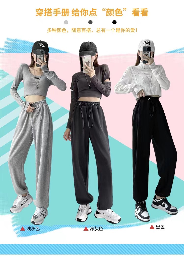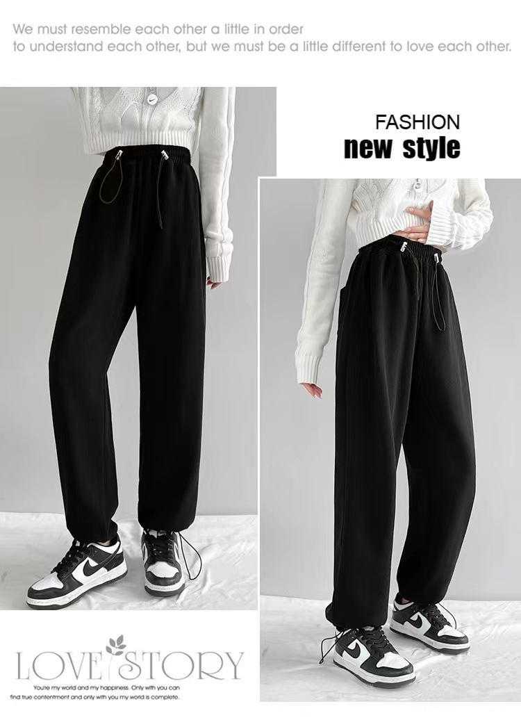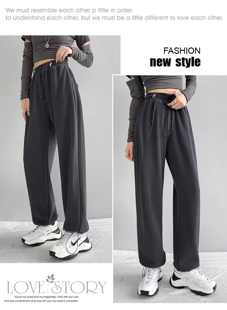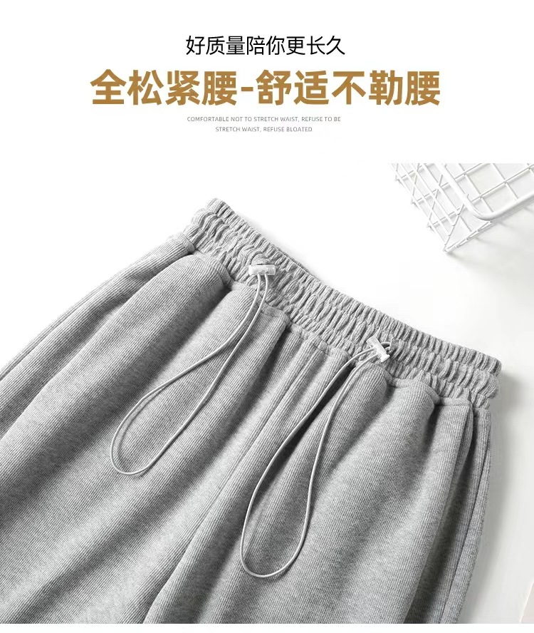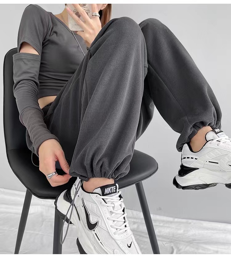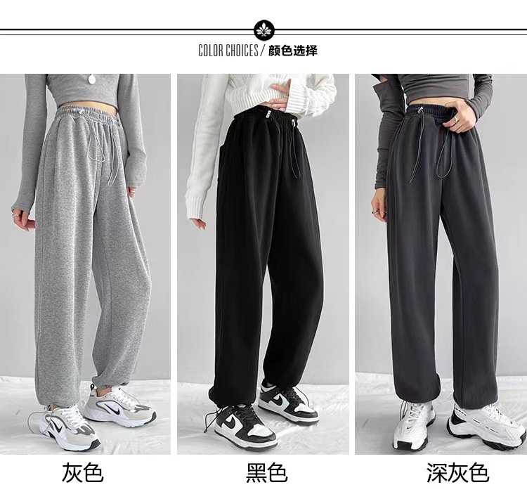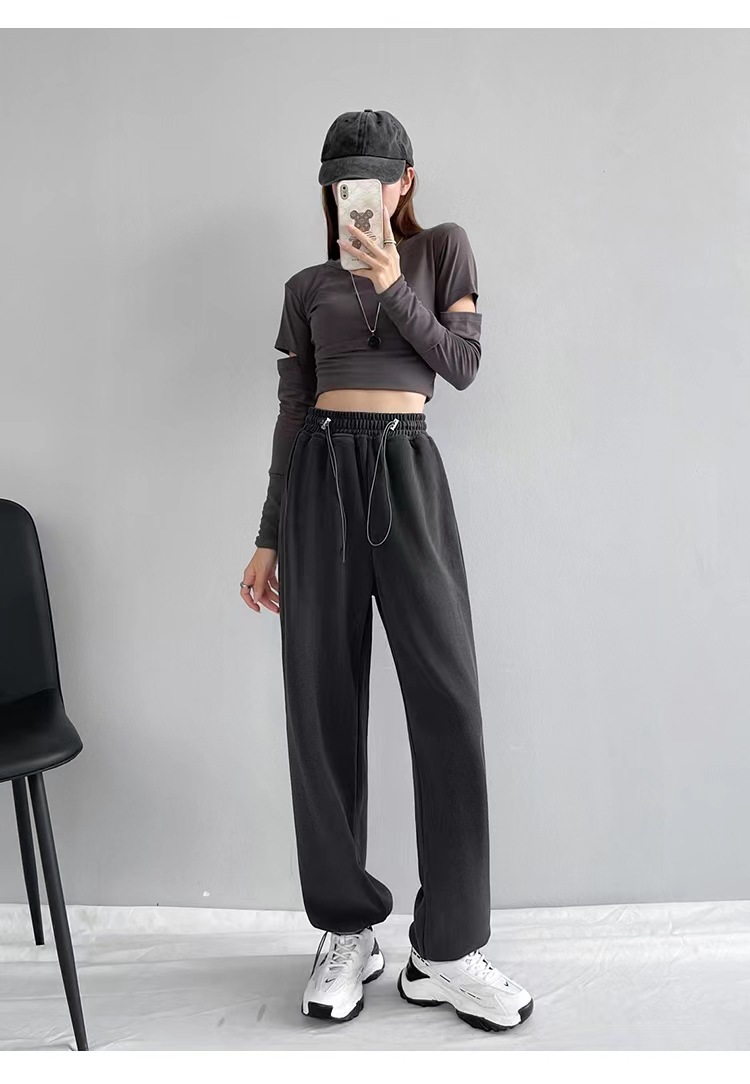 그레이 티 가을과 겨울 두꺼운 블랙 스포츠 바지 여자의 봄과 가을 캐주얼 바지 새로운 슬리밍 기모 와이드 레그 바지스토어 가기