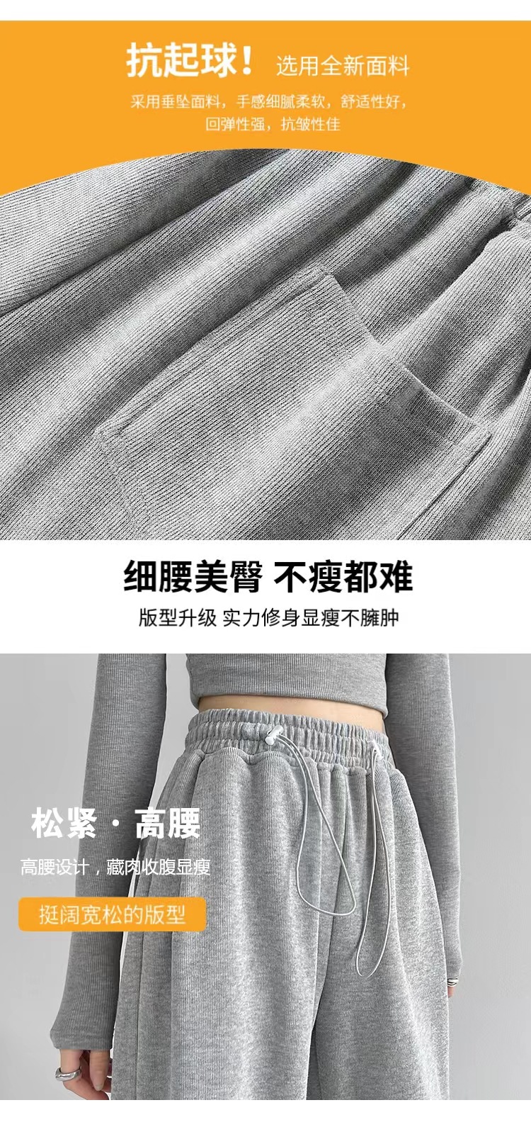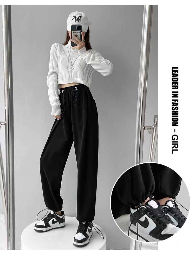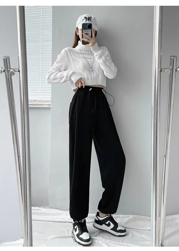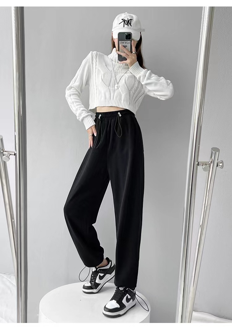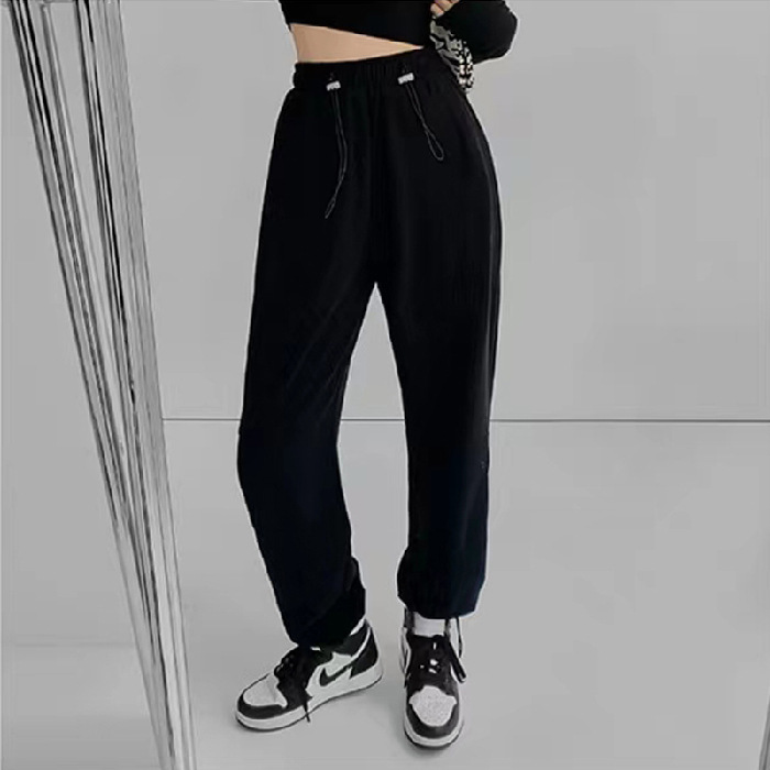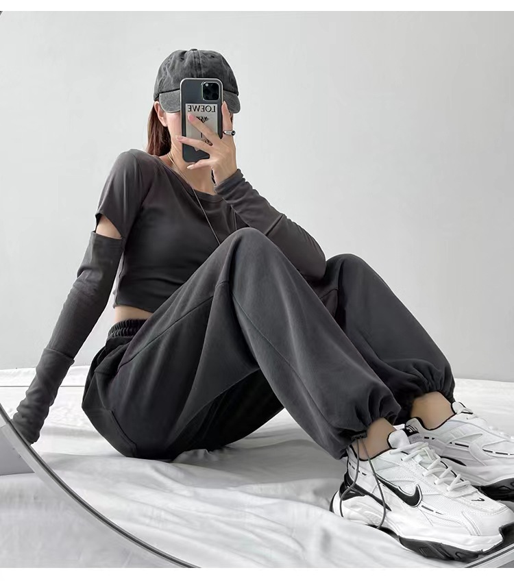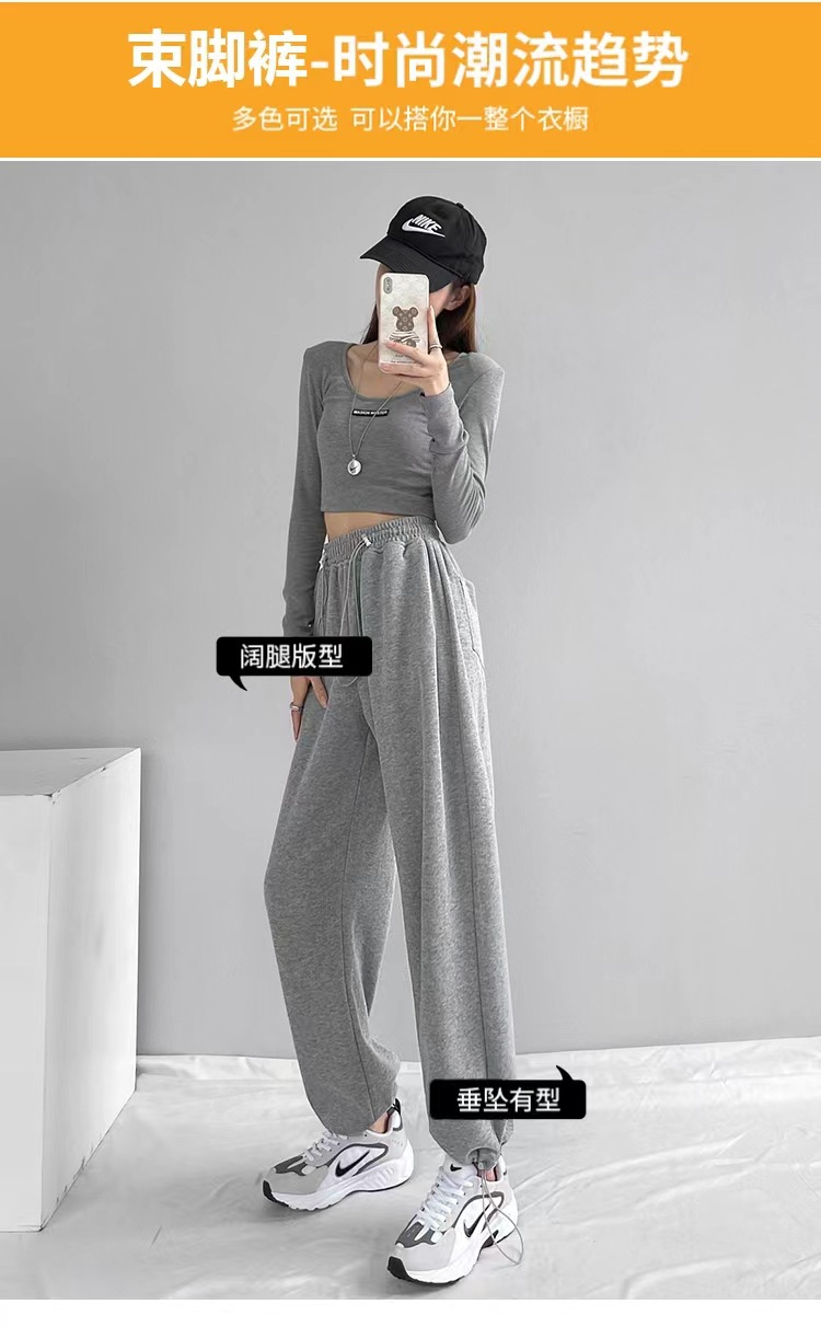 그레이 티 가을과 겨울 두꺼운 블랙 스포츠 바지 여자의 봄과 가을 캐주얼 바지 새로운 슬리밍 기모 와이드 레그 바지스토어 가기