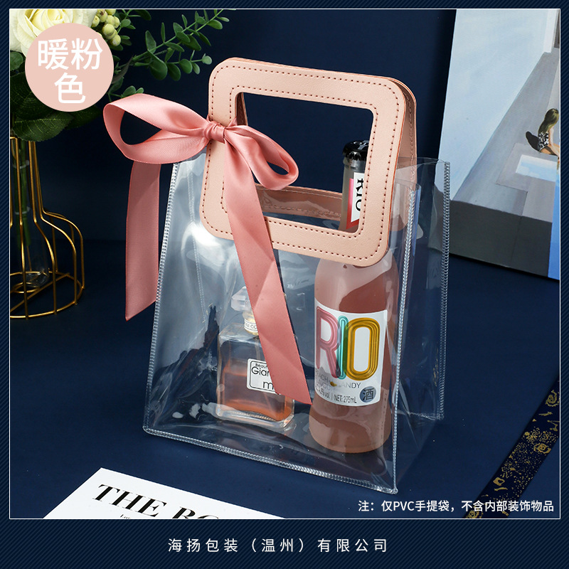 • 사각 따뜻한 핑크 [투명 PVC], 대형 세로 (길이 25 높이 27 옆 폭 14cm), 더블 레이어 60 실크