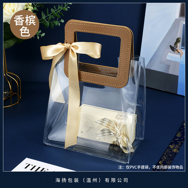 • 사각 샴페인 컬러 [투명 PVC]; 대형 가로 (길이 27*높이 25*가로 폭 14cm); 이중 두꺼운 80 실크