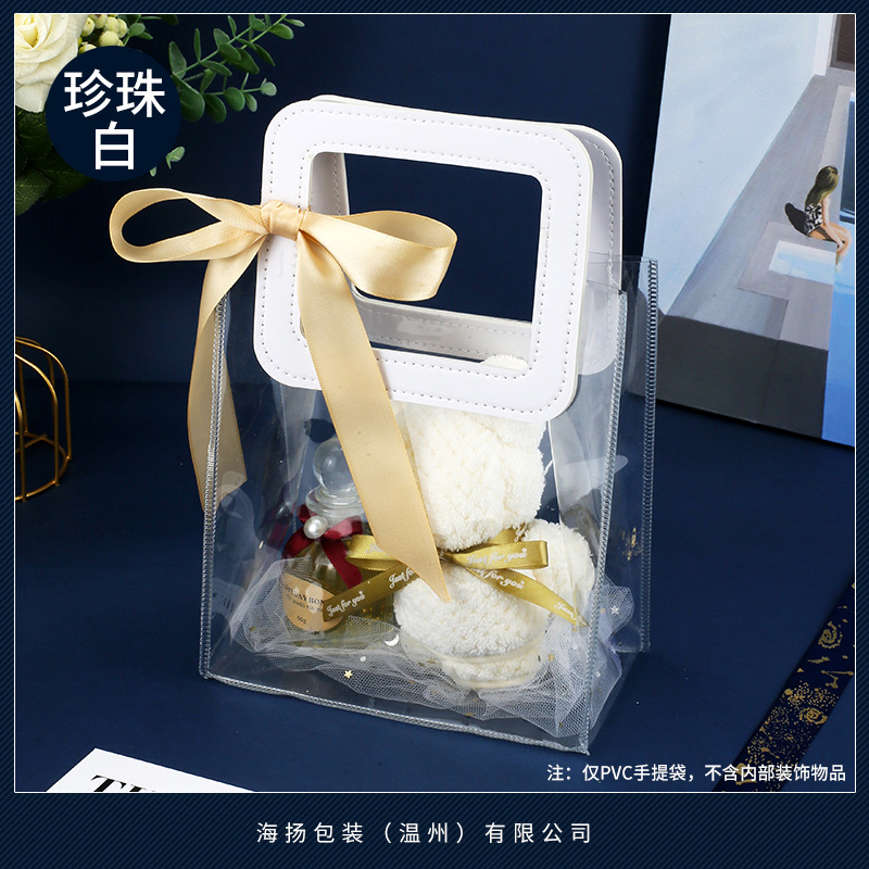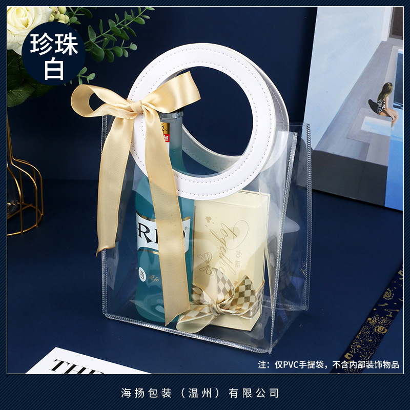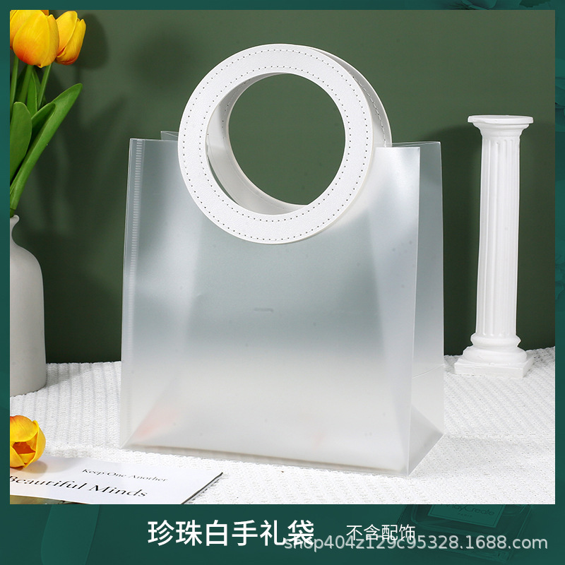 • 라운드 펄 화이트 [투명 PVC]; 대형 가로 (길이 27*높이 25*가로 폭 14cm); 이중층 두꺼운 80 실크