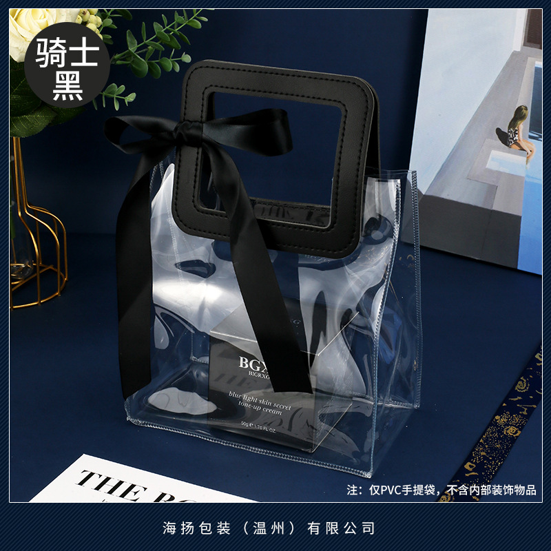 • 스퀘어 나이트 블랙 [투명 PVC], 대형 가로 (길이 27*높이 25*가로 폭 14cm), 이중 두께 80 실크