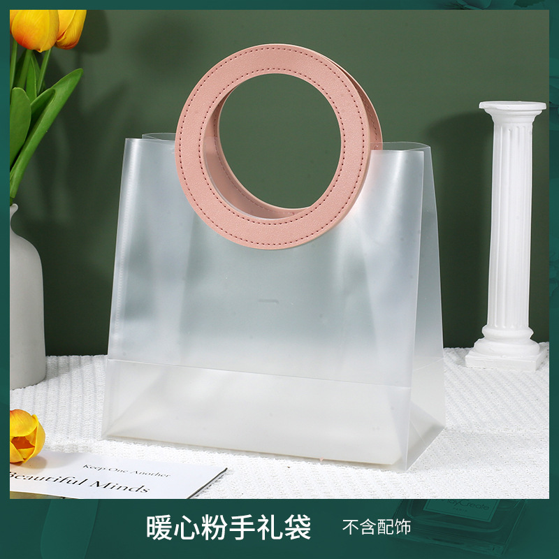 • 사각 따뜻한 핑크 [투명 PVC], 중대형 세로 (길이 20 높이 24 옆 폭 12cm), 더블 레이어 60 실크