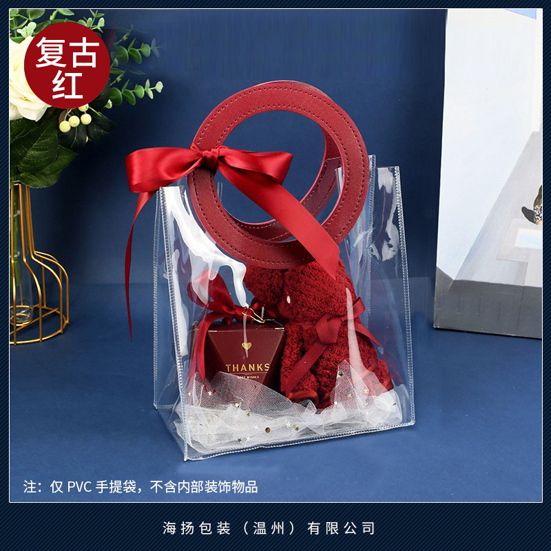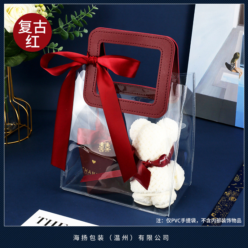 • 사각 레트로 레드 [투명 PVC]; 대형 세로 (길이 25 높이 27 옆 폭 14cm); 더블 레이어 60 실크
