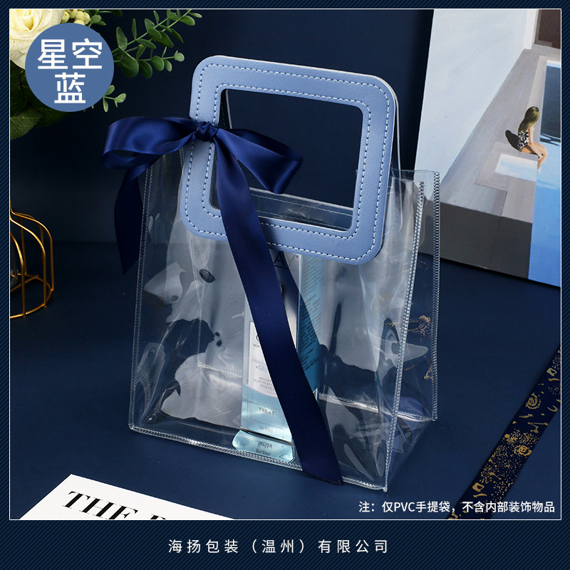 • 사각 별이 빛나는 하늘색 [투명 PVC]; 큰 가로 (길이 27*높이 25*가로 폭 14cm); 이중층 두꺼운 80 실크