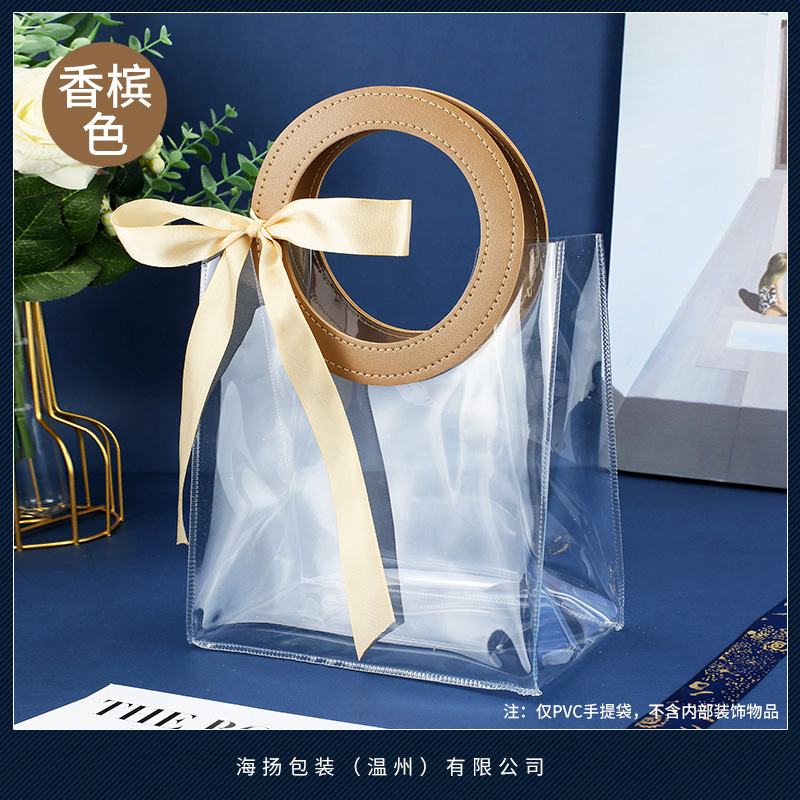 • 라운드 샴페인 컬러 [투명 PVC], 대형 가로 (길이 27*높이 25*가로 폭 14cm), 이중층 두꺼운 80 실크