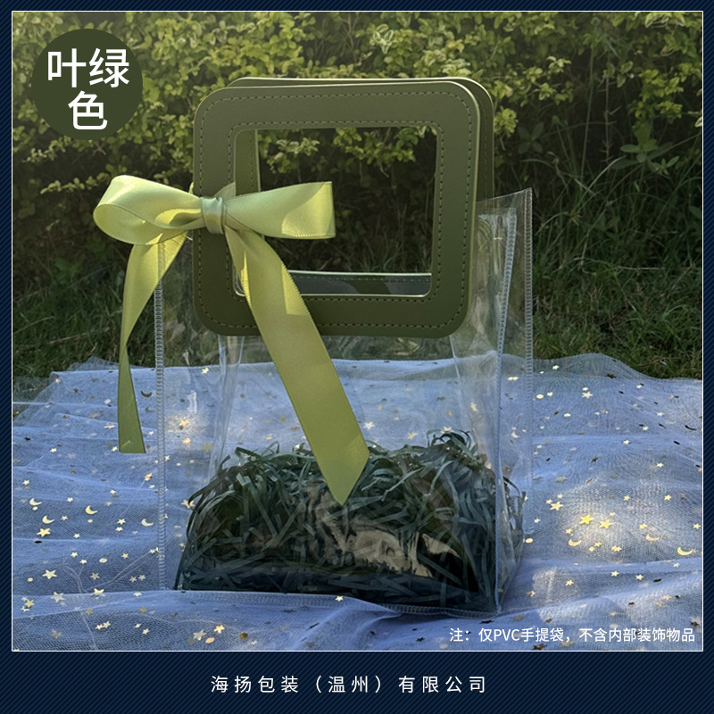 • 사각 잎 그린 [투명 PVC], 중대형 세로 (길이 20 높이 24 옆 폭 12cm), 더블 레이어 60 실크