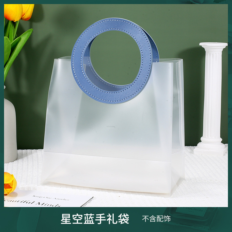 • 라운드 별이 빛나는 하늘색 [반투명 PP], 반투명 소형 사이즈 (길이 16 높이 18.5 옆 폭 8cm), 더블 레이어 60 실크