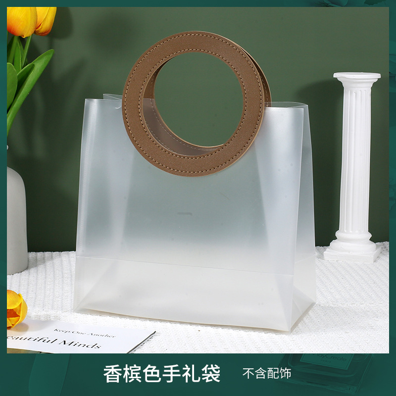 • 라운드 샴페인 컬러 [반투명 PP], 반투명 소형 사이즈 (길이 16 높이 18.5 옆 폭 8cm), 더블 레이어 60 실크