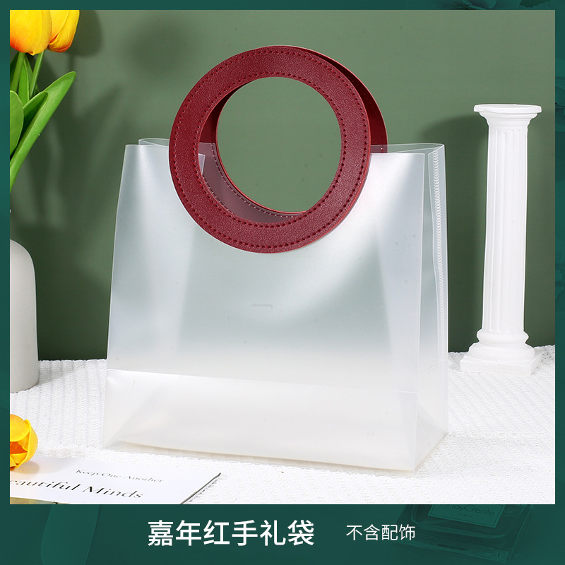 • 라운드 레트로 레드 [투명 PVC]; 대형 가로 (길이 27*높이 25*가로 폭 14cm); 더블 레이어 60 실크