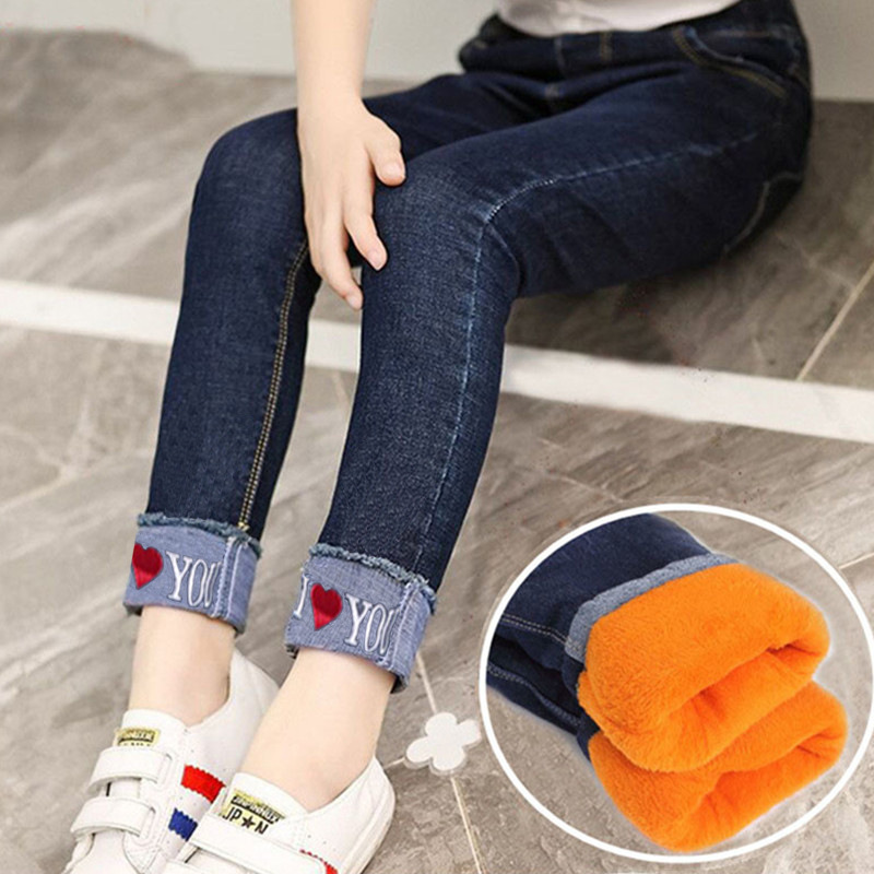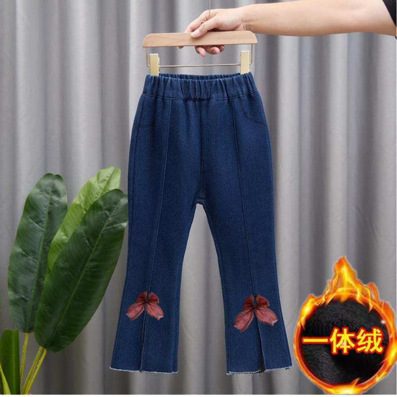 소녀 하나 벨벳 공장 도매 대형 어린이 기모 청바지 스트레치 어린이 따뜻한 바지 도매 한국 어린이 바지