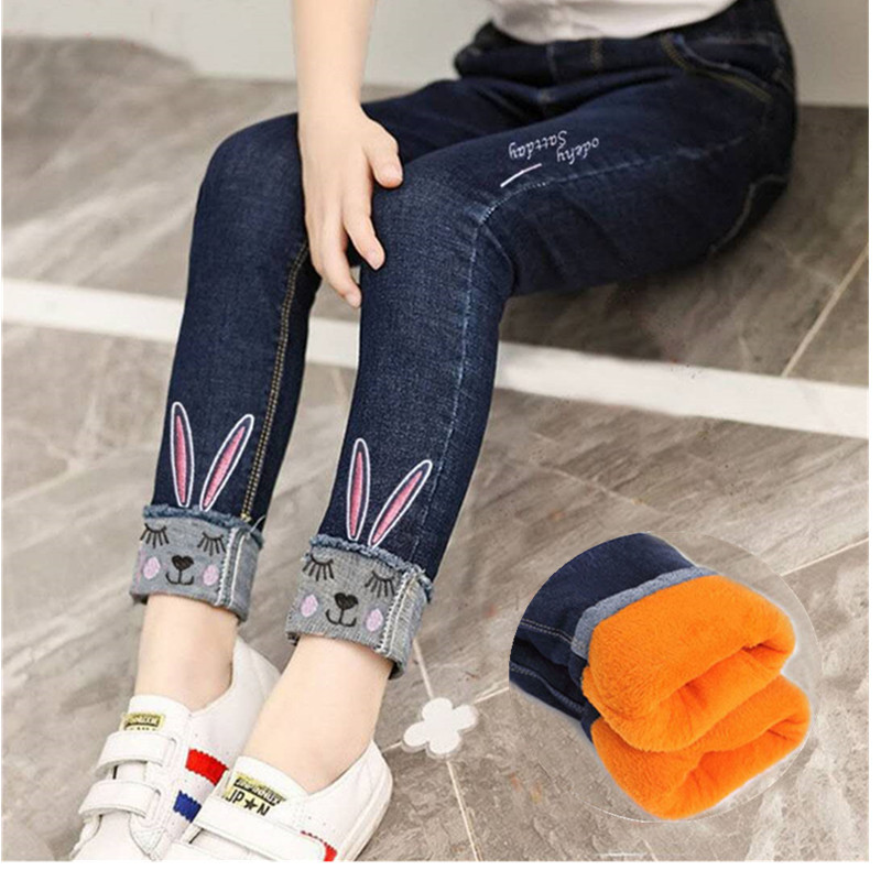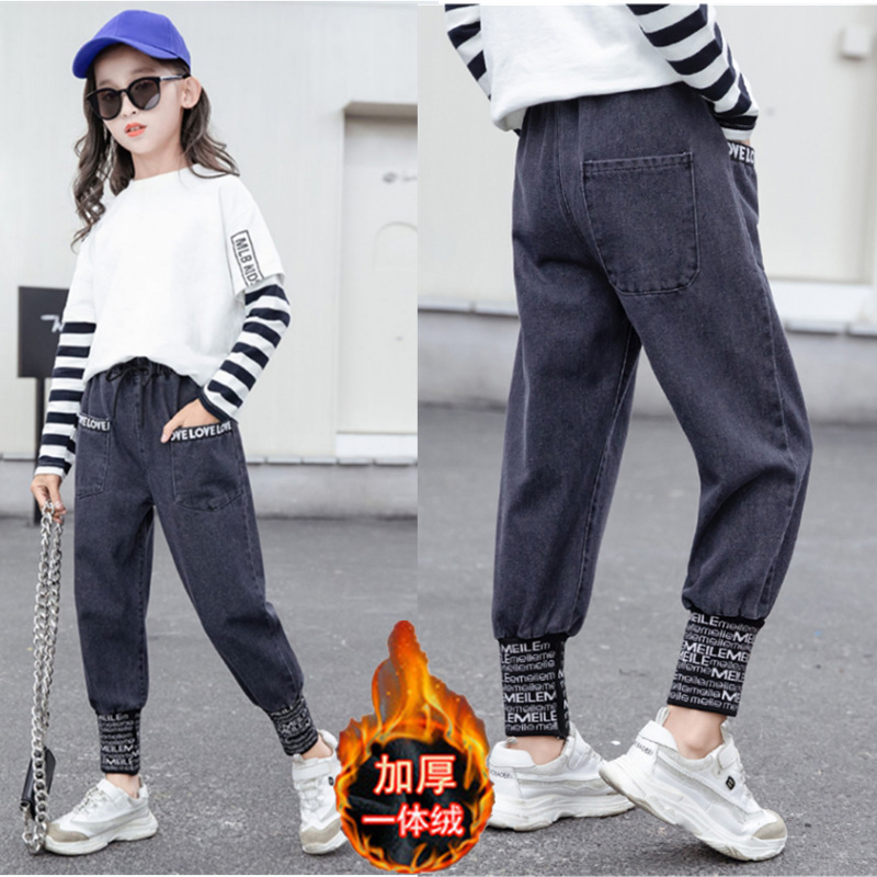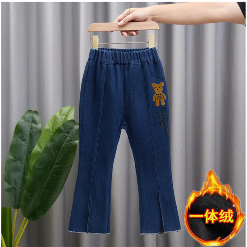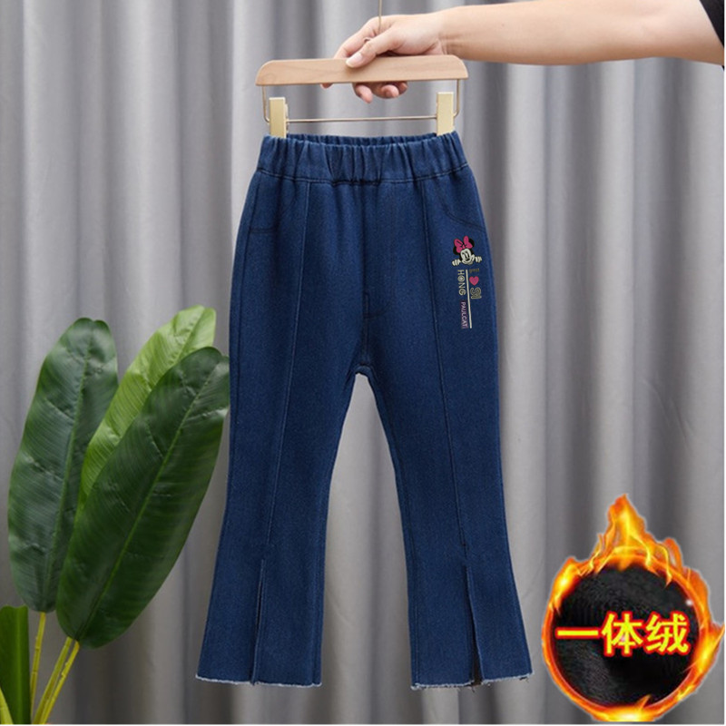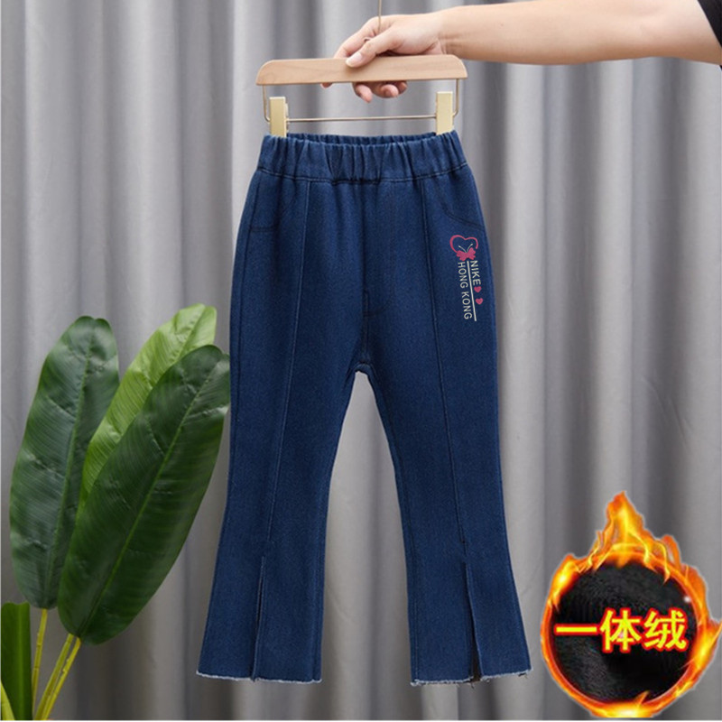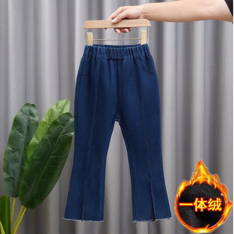 소녀 하나 벨벳 공장 도매 대형 어린이 기모 청바지 스트레치 어린이 따뜻한 바지 도매 한국 어린이 바지스토어 가기