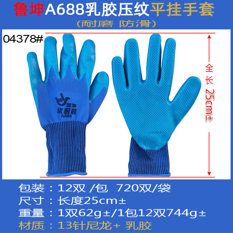 【商品名称】:鲁坤优耐戴A688物理压纹乳胶手套