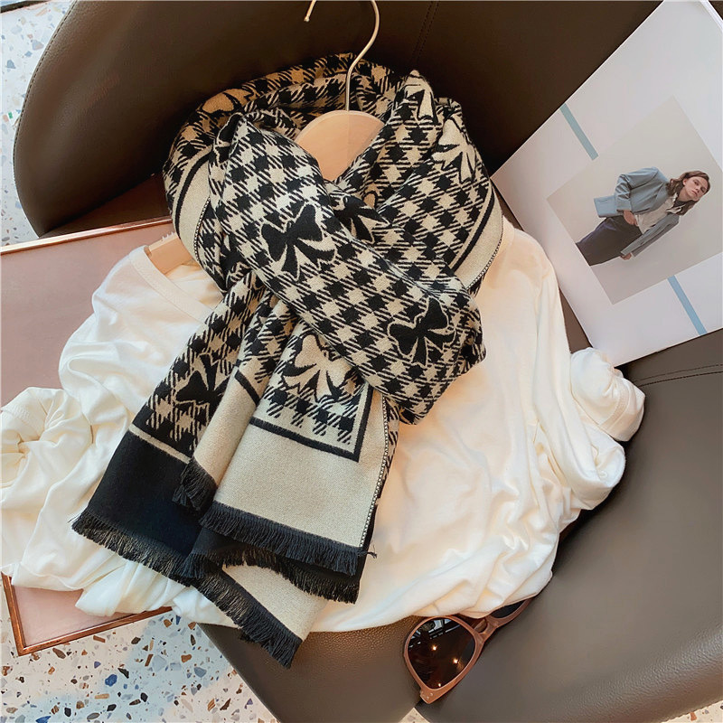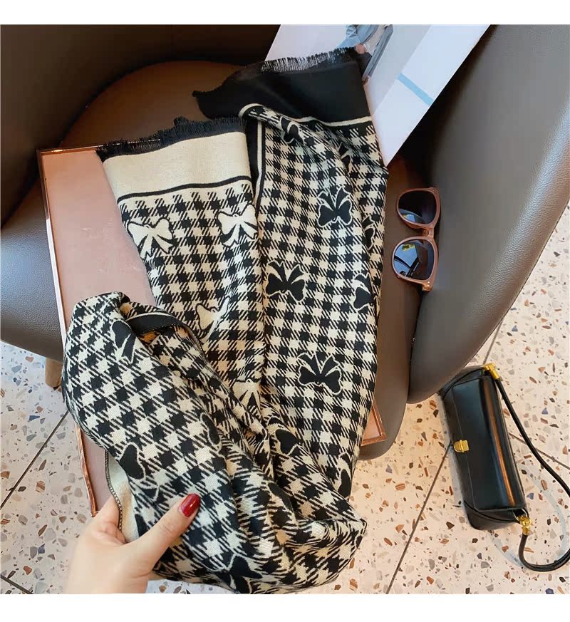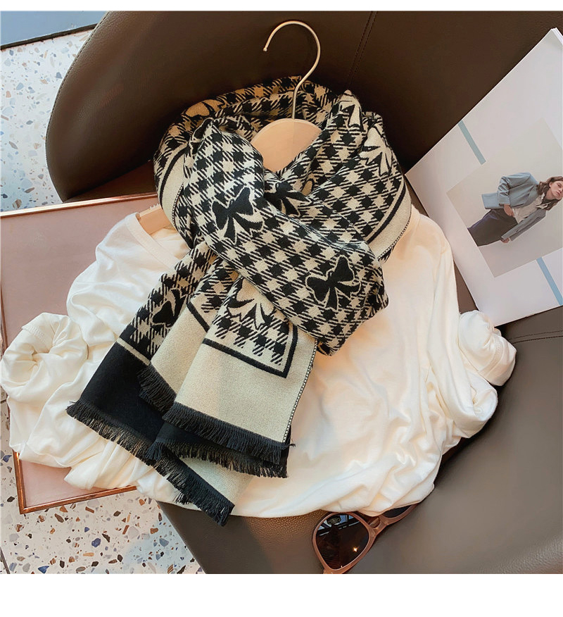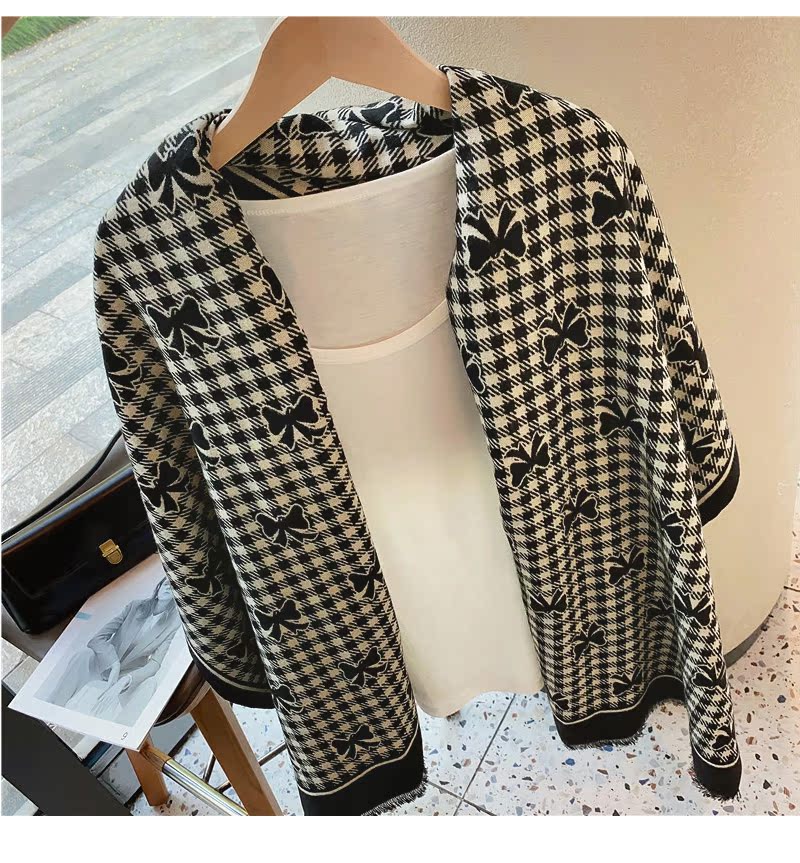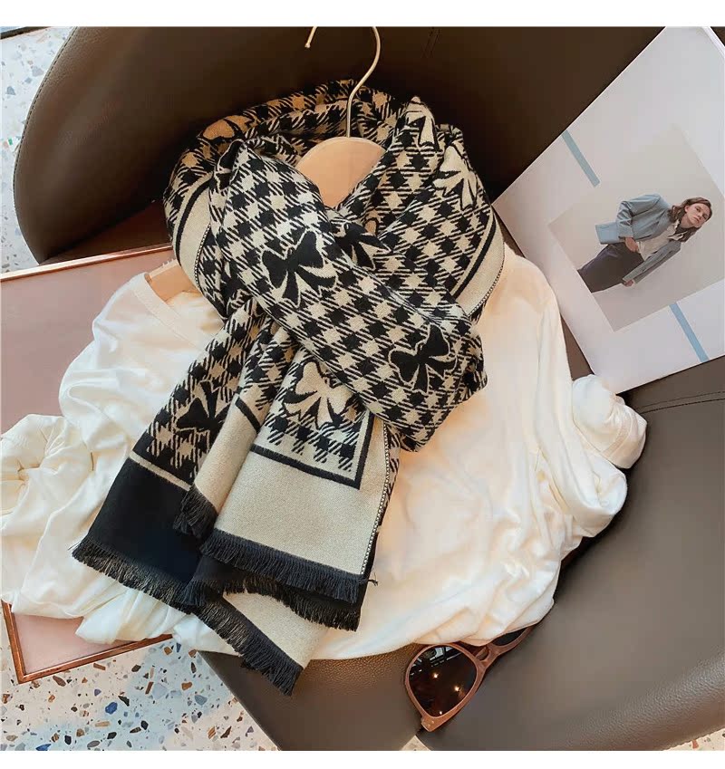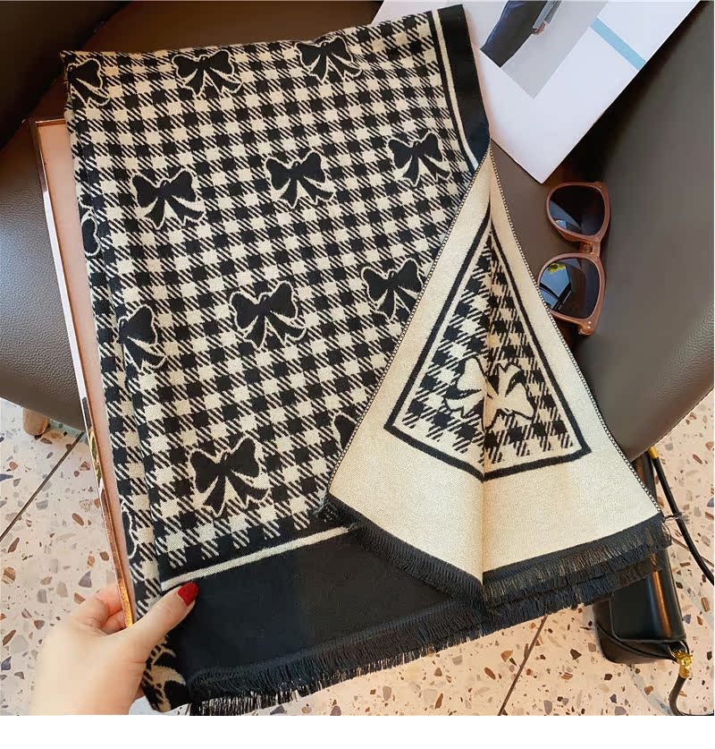 한국식 달콤한 활 격자 무늬 겨울 캐시미어 숄 따뜻한 모든 일치 학생 틈새 선물 소녀 스카프스토어 가기