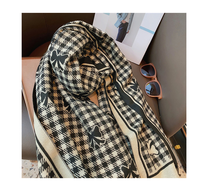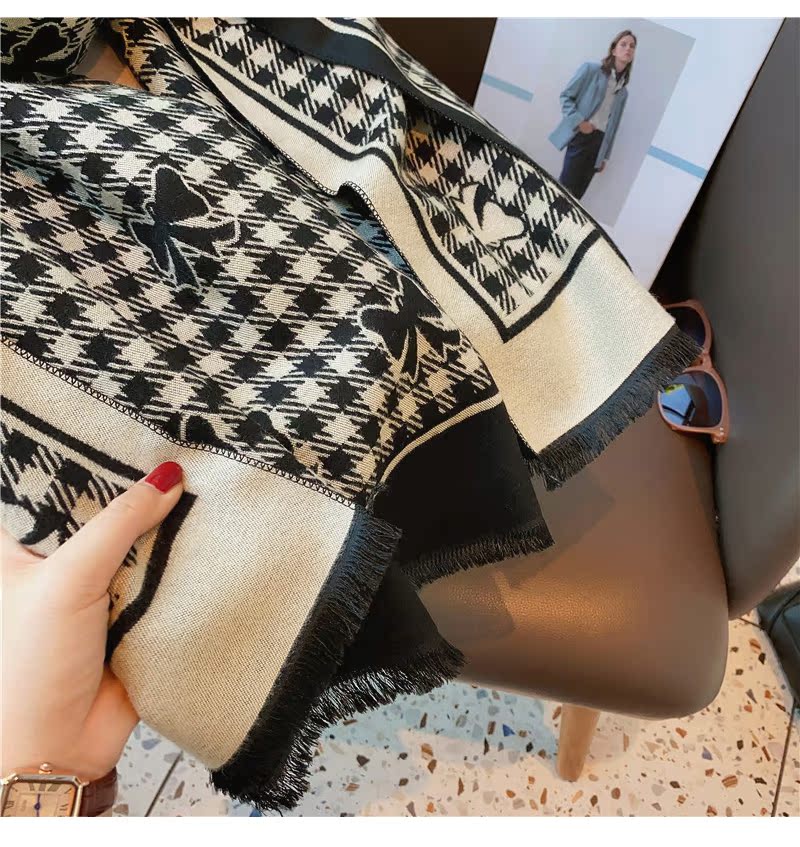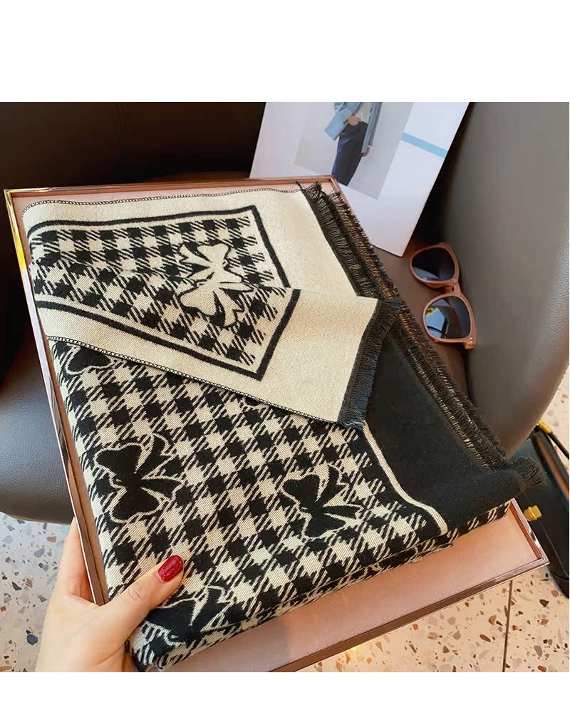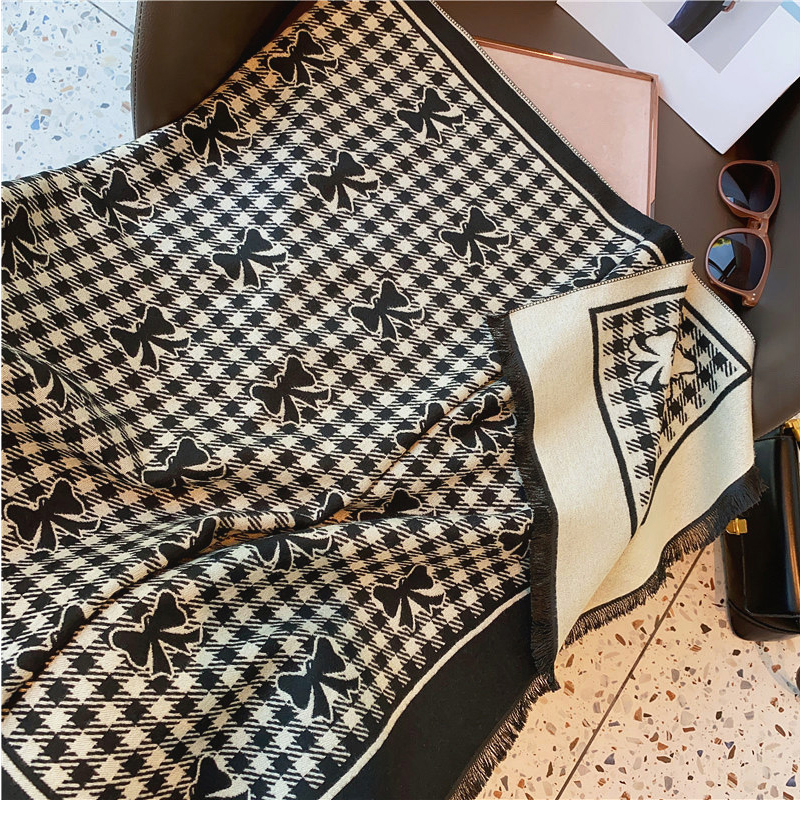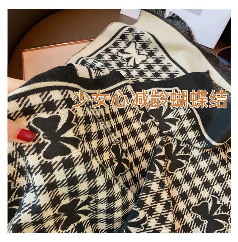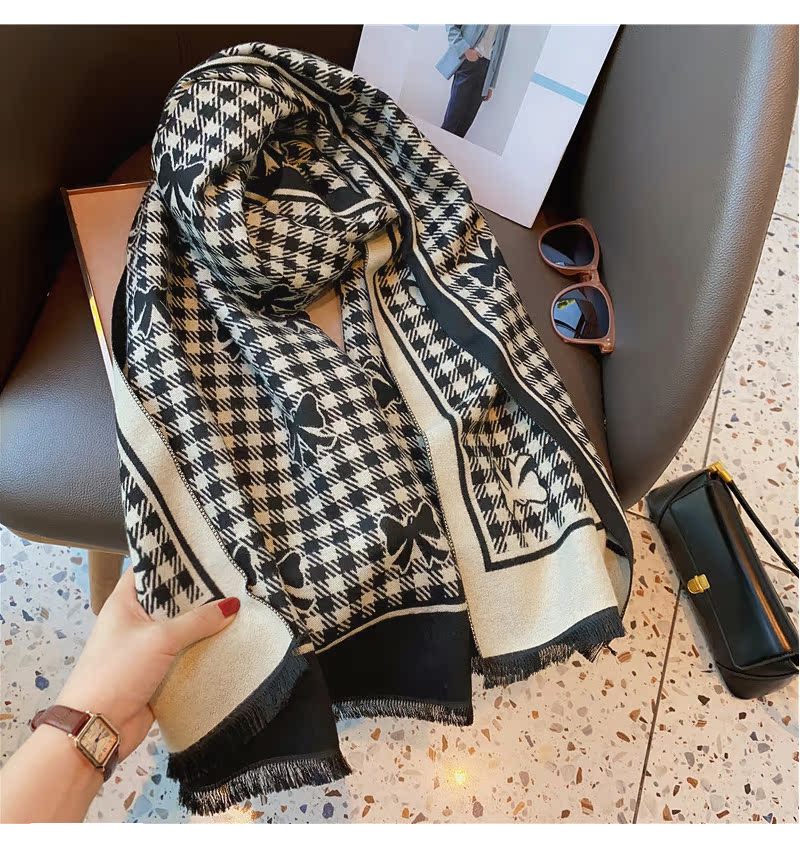 한국식 달콤한 활 격자 무늬 겨울 캐시미어 숄 따뜻한 모든 일치 학생 틈새 선물 소녀 스카프스토어 가기