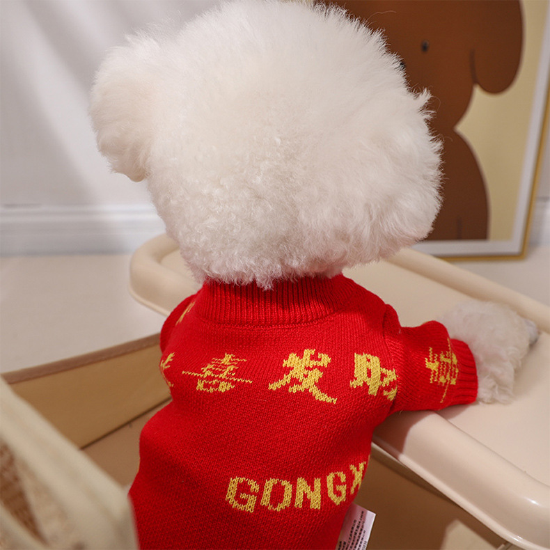 개 옷 2023 새로운 겨울 테디 보메이 VIP 치와와 레드 새해 두 다리 후크 니트 스웨터