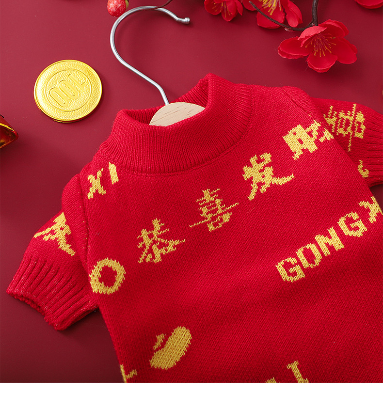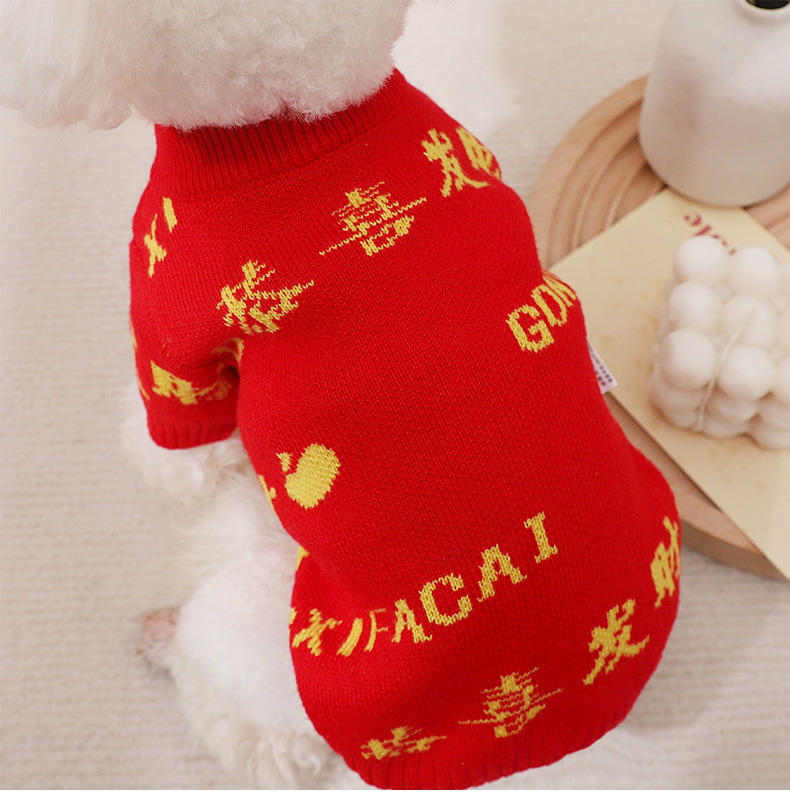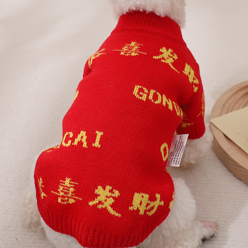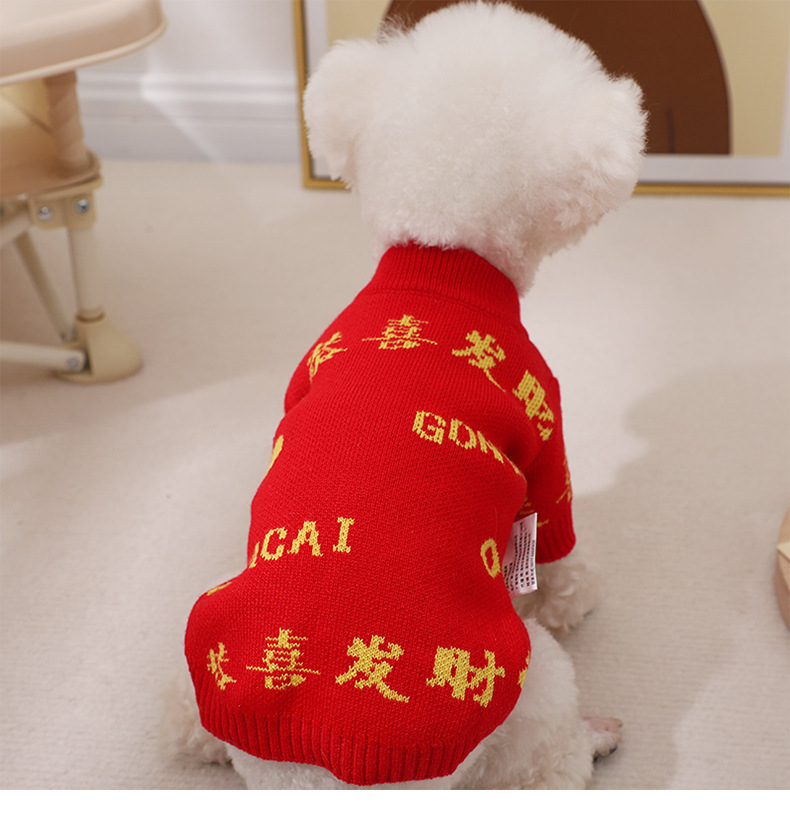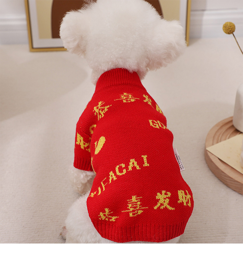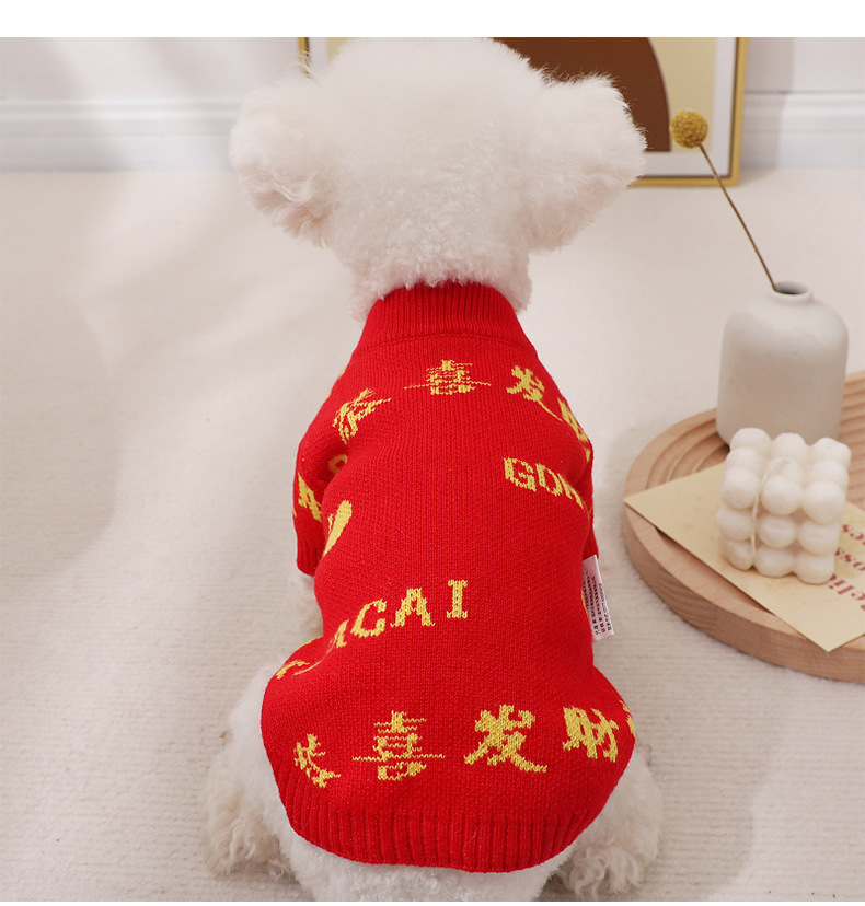 개 옷 2023 새로운 겨울 테디 보메이 VIP 치와와 레드 새해 두 다리 후크 니트 스웨터스토어 가기