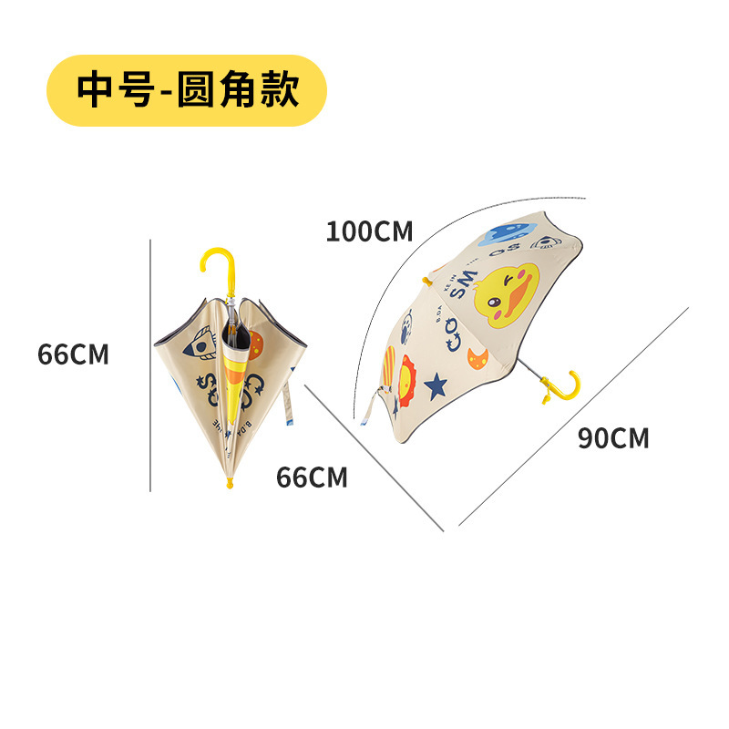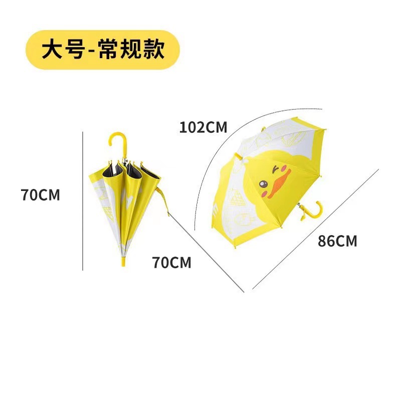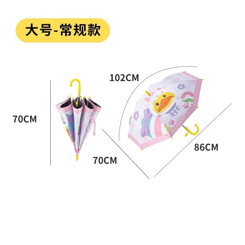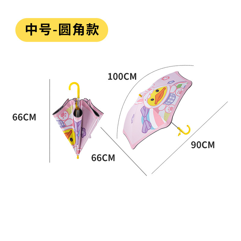 새로운 라운드 둥근 찌르기 방지 부상 우산 작은 노란 오리 어린이 작은 우산 어린이 맑은 우산 만화 초등학생을위한 긴 손잡이 우산