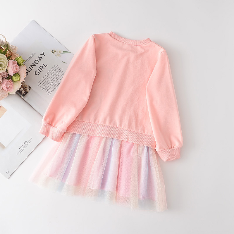 가을 6017 소녀 원피스 소녀 만화 스웨터 메쉬 스티치 원피스 어린이 의류 도매 머리카락의 세대스토어 가기