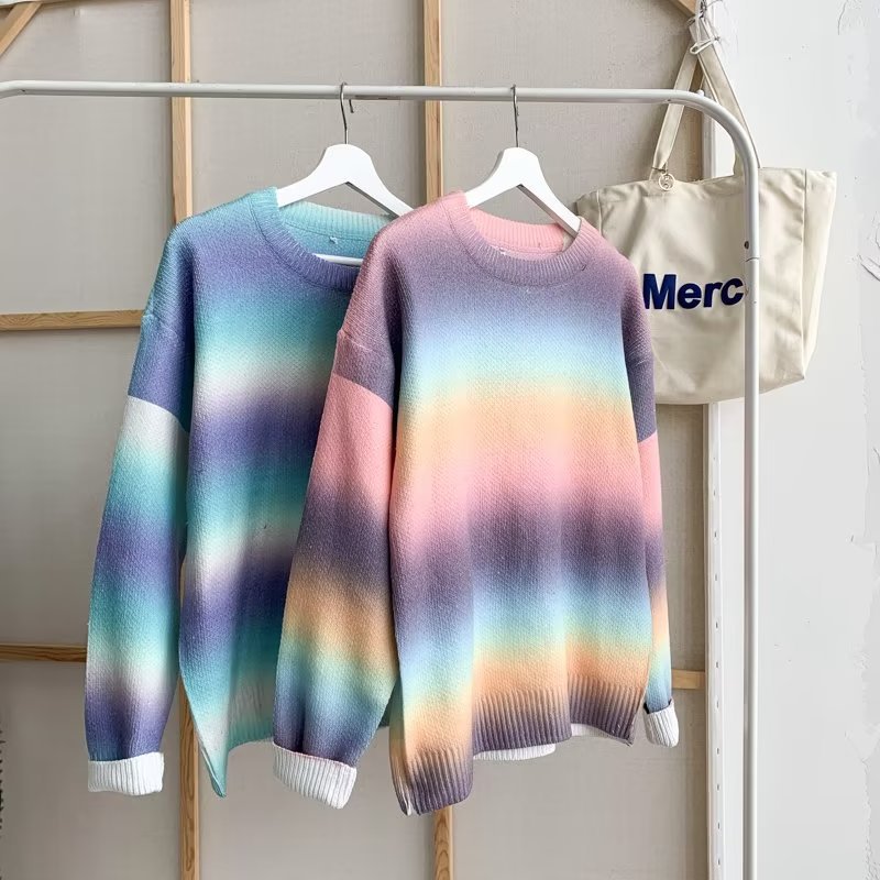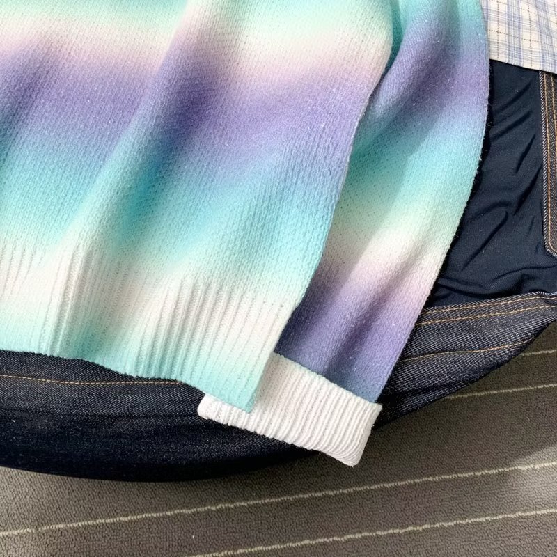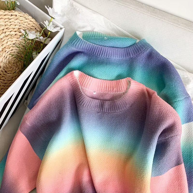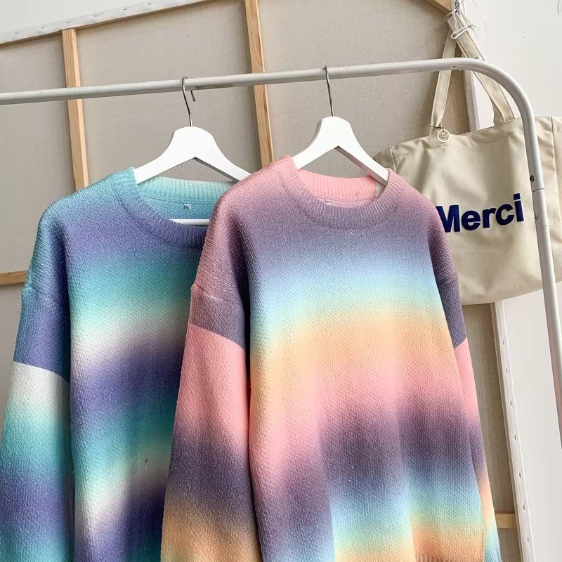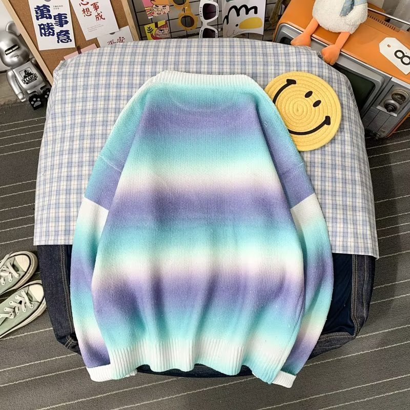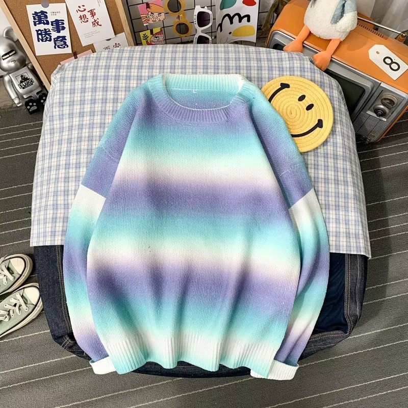 스웨터 남성용 풀오버 타이 염색 느슨한 청소년 인기 가을 긴팔 스웨터 남성 캐주얼 라운드 넥 컬러 매칭 스웨터스토어 가기