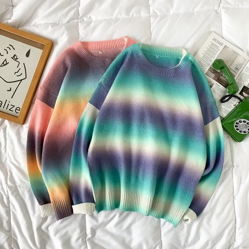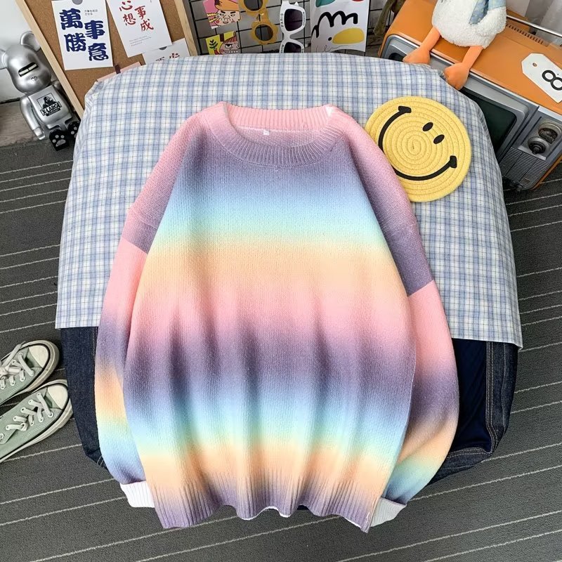 스웨터 남성용 풀오버 타이 염색 느슨한 청소년 인기 가을 긴팔 스웨터 남성 캐주얼 라운드 넥 컬러 매칭 스웨터