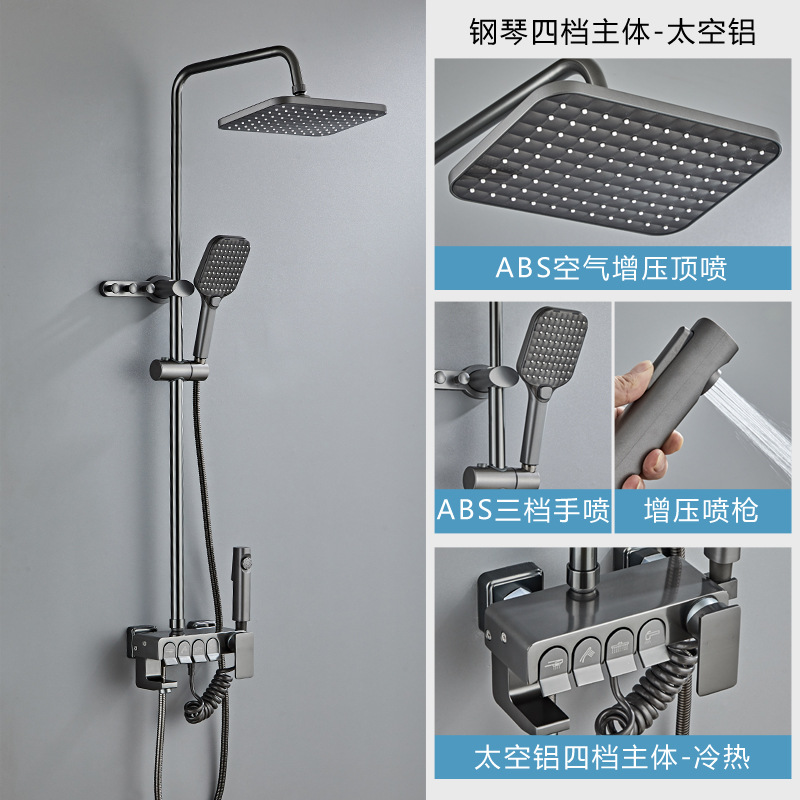 총 회색 공간 알루미늄 피아노 키 샤워 샤워 세트 가정용 화장실 샤워 청소 노즐 간단한 스타일스토어 가기