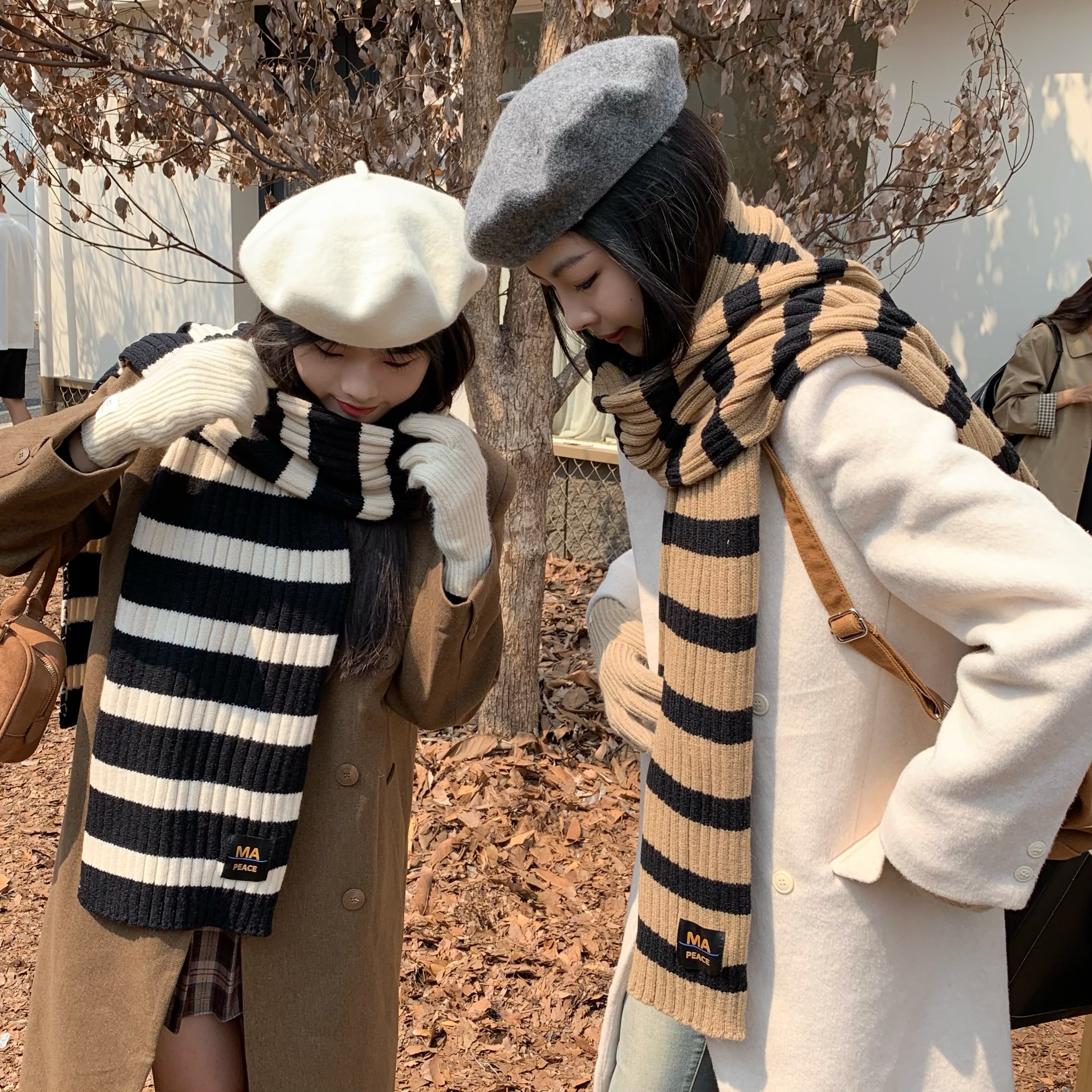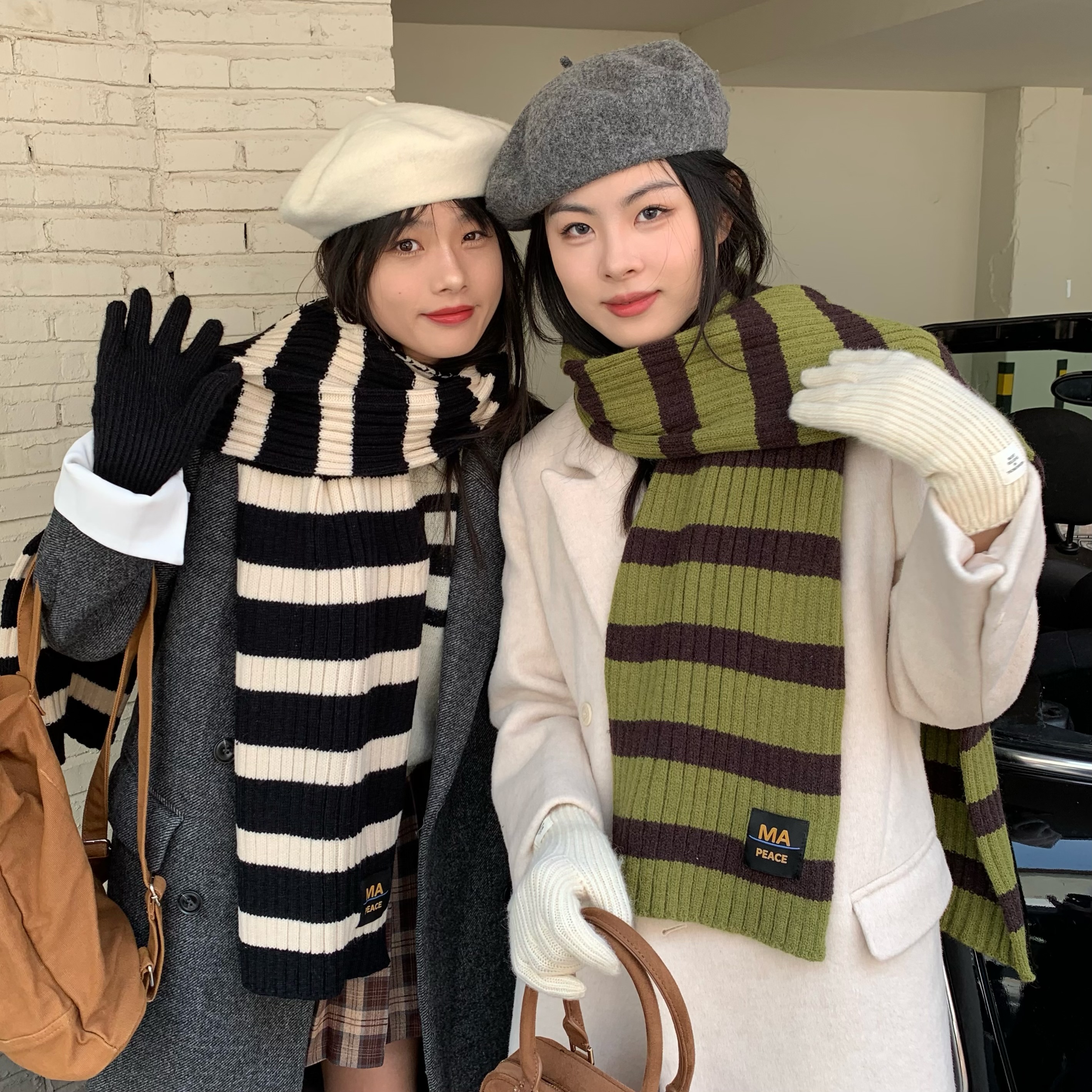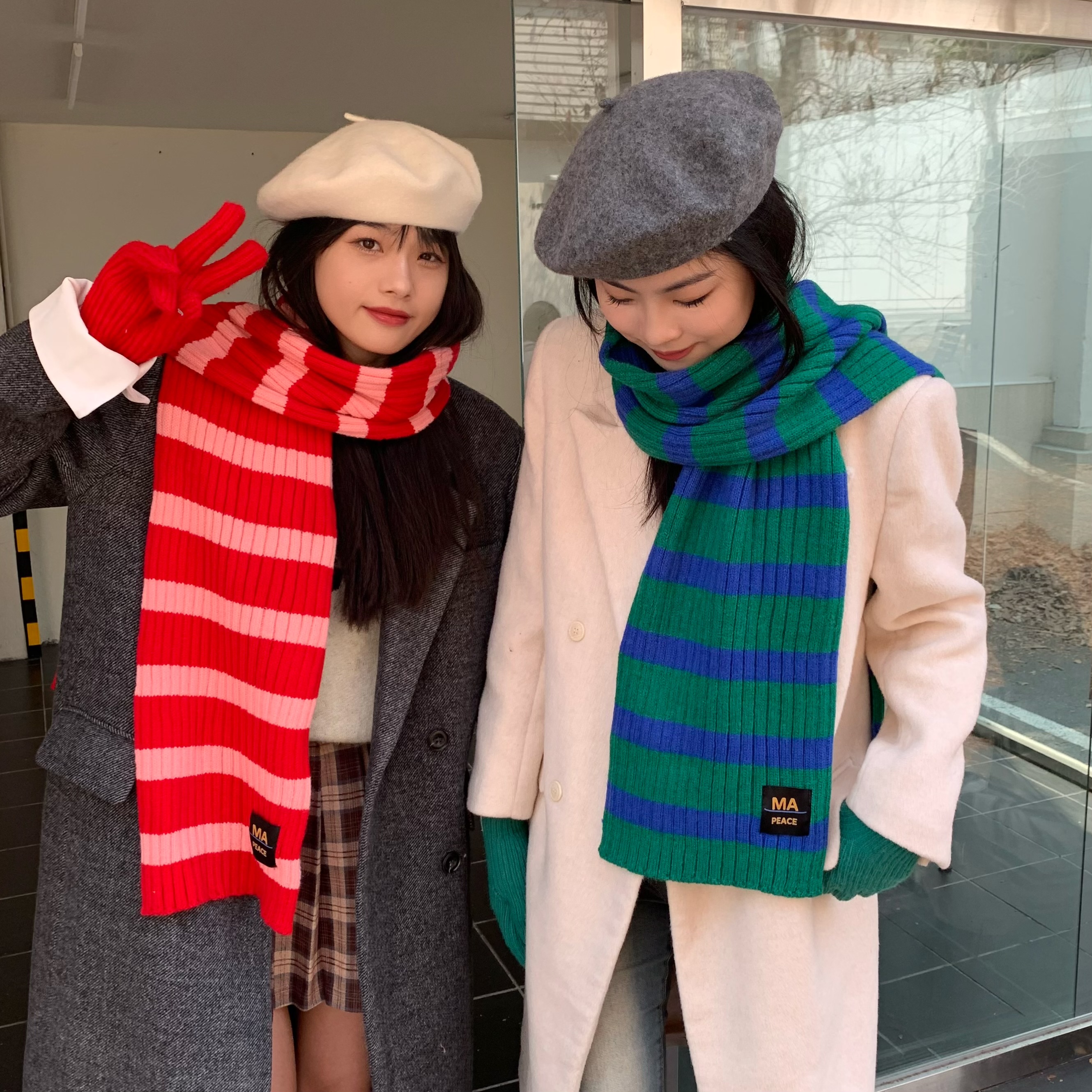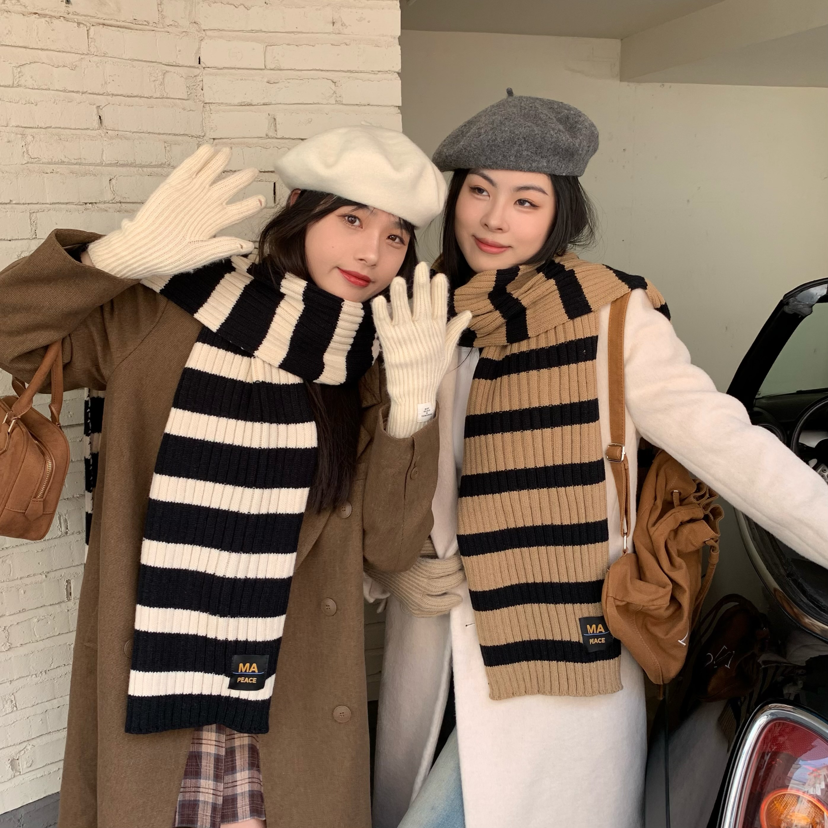 아름다운 소녀 ~ 대학 스타일 스트라이프 스카프 여성 가을과 겨울 한국 모직은 따뜻한 학생 니트 스카프 목도리를 착용하는 것이 좋습니다