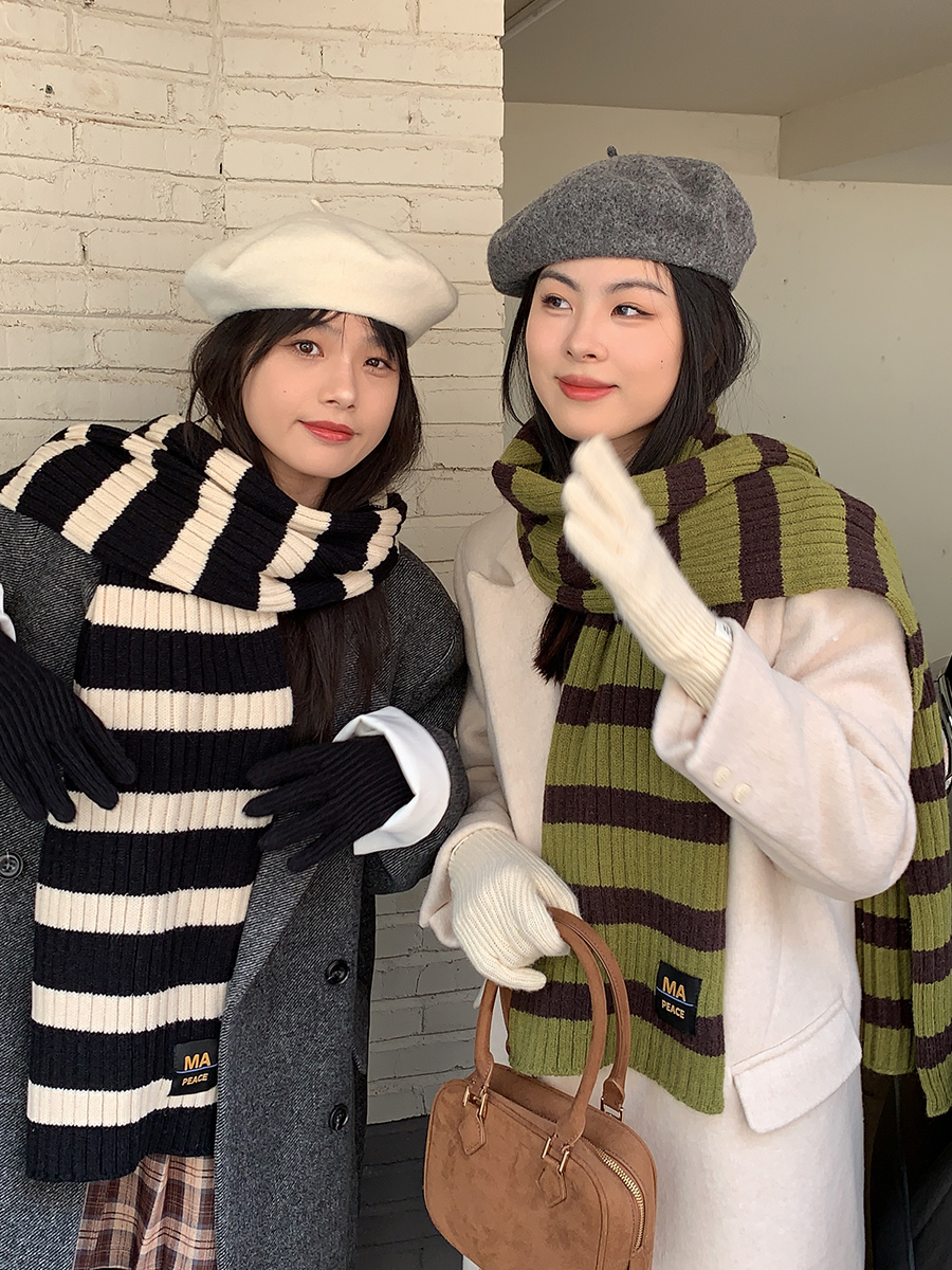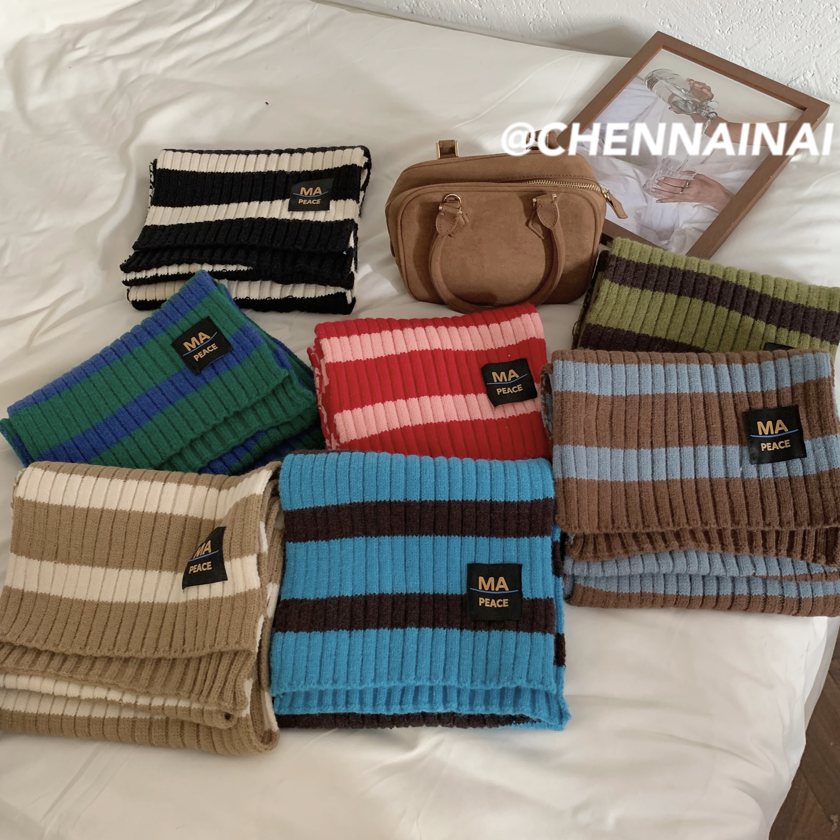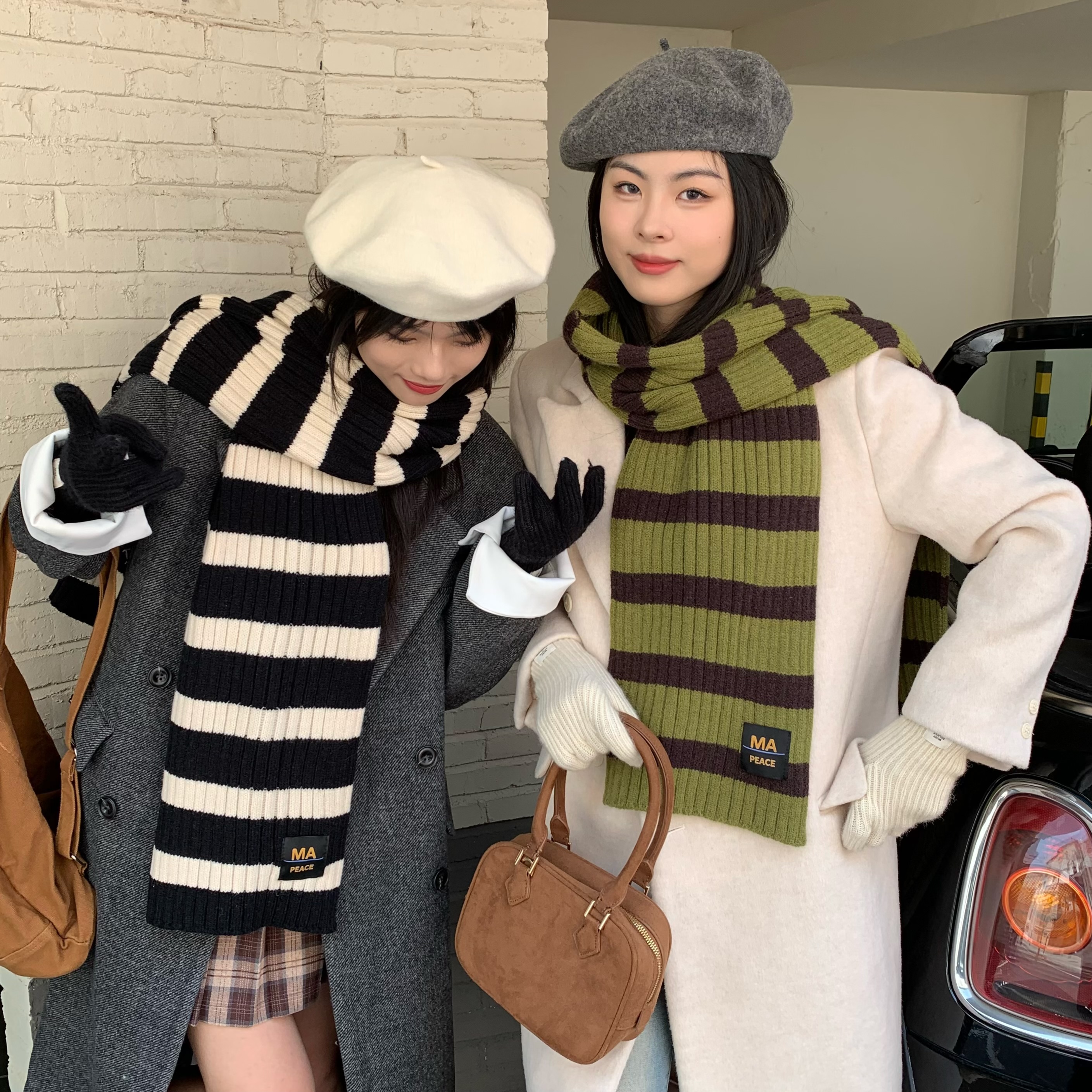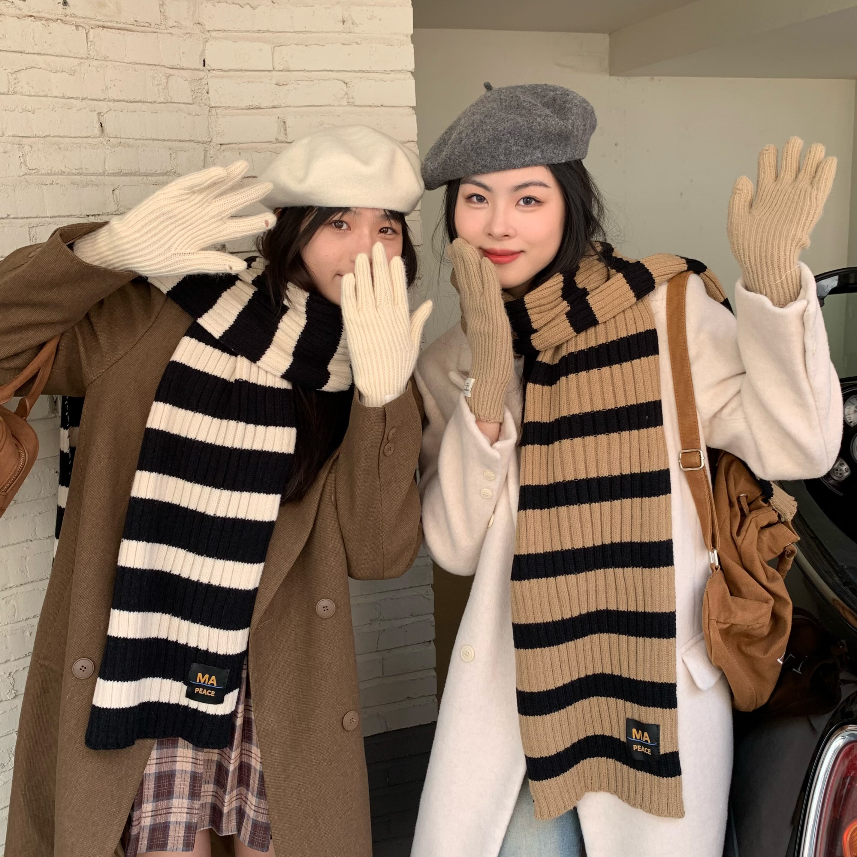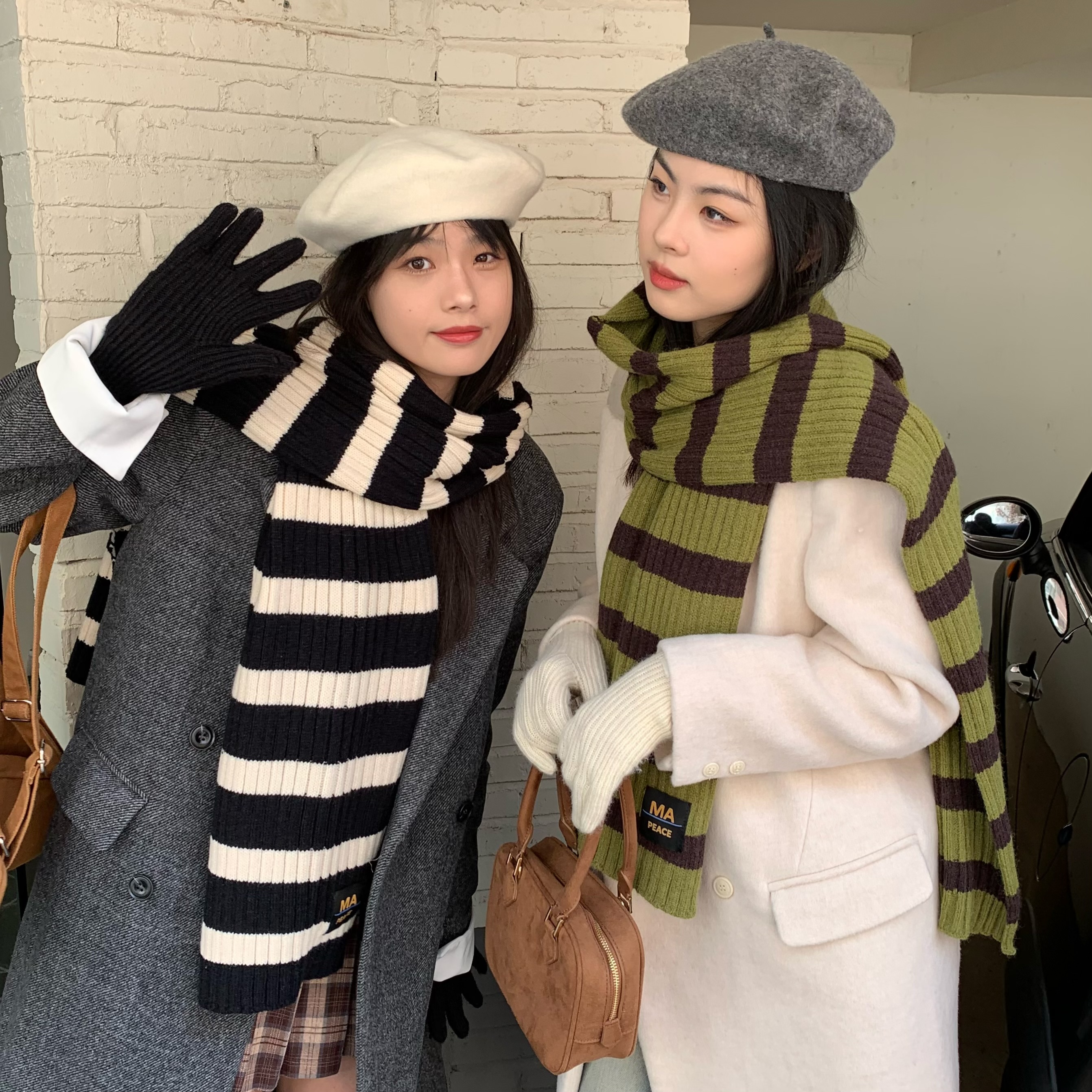 아름다운 소녀 ~ 대학 스타일 스트라이프 스카프 여성 가을과 겨울 한국 모직은 따뜻한 학생 니트 스카프 목도리를 착용하는 것이 좋습니다