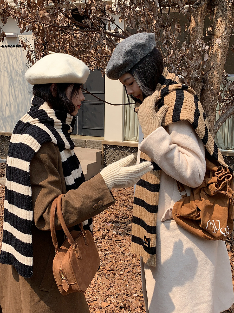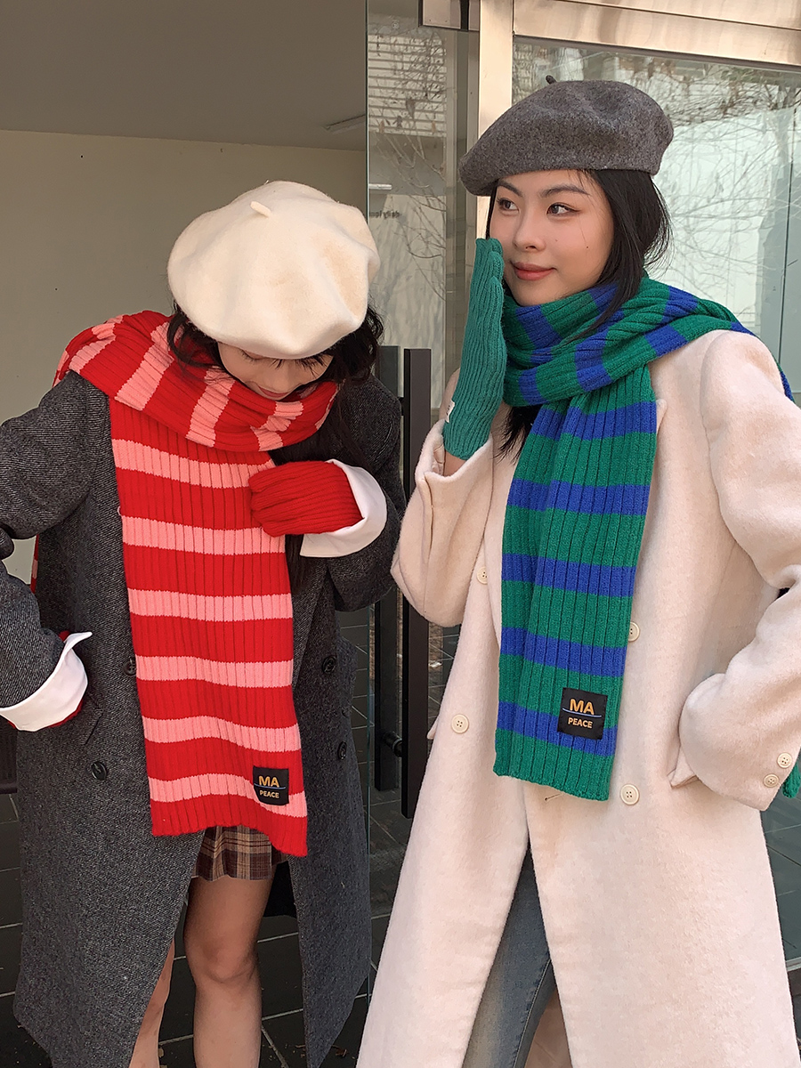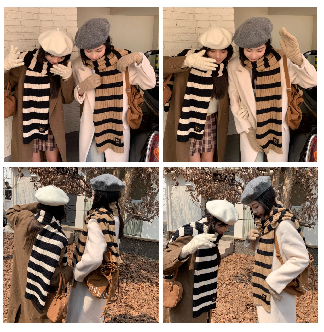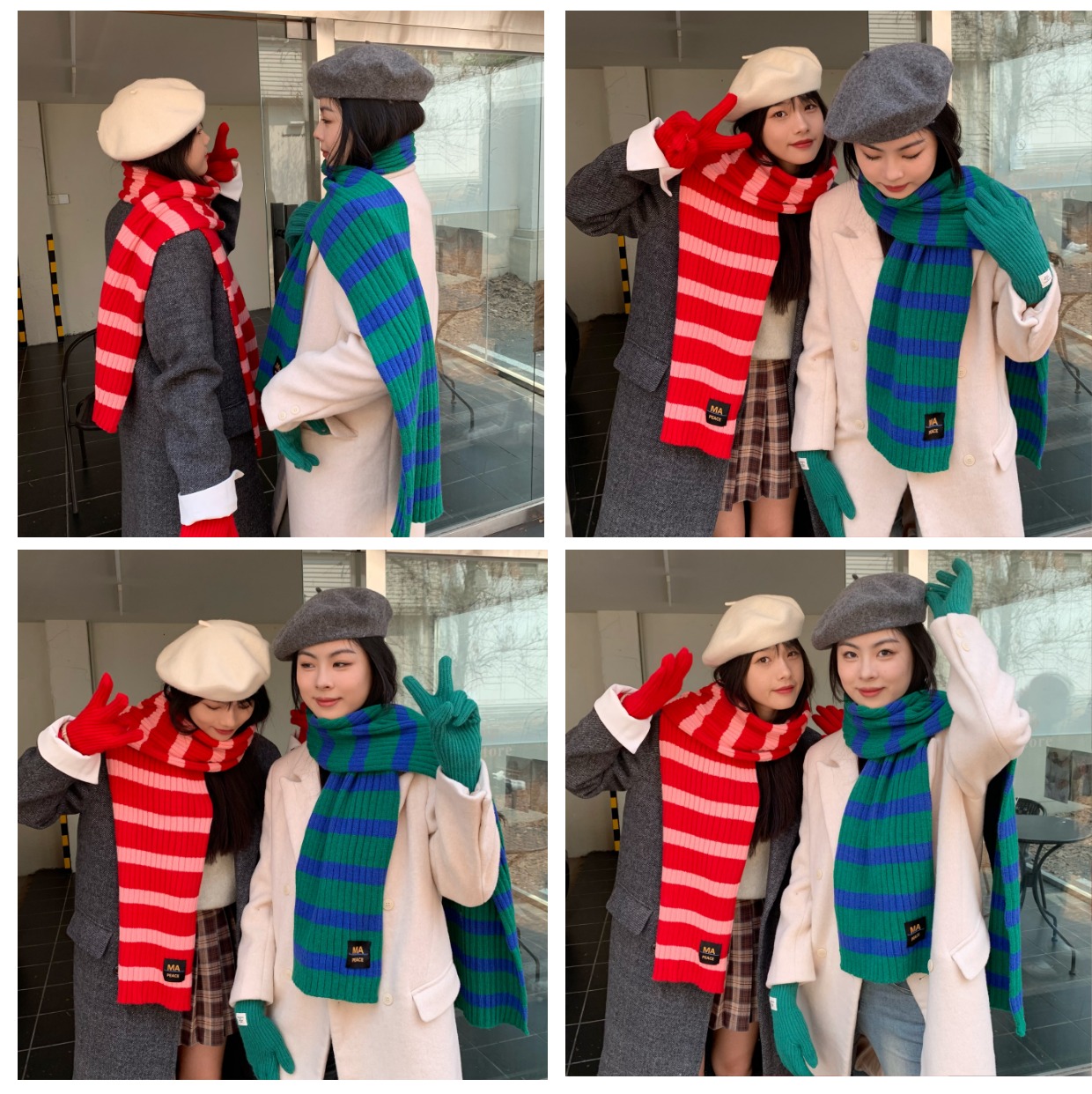 아름다운 소녀 ~ 대학 스타일 스트라이프 스카프 여성 가을과 겨울 한국 모직은 따뜻한 학생 니트 스카프 목도리를 착용하는 것이 좋습니다