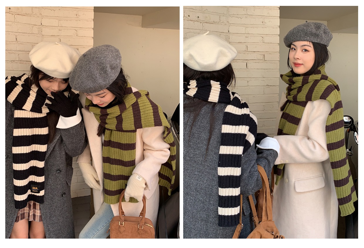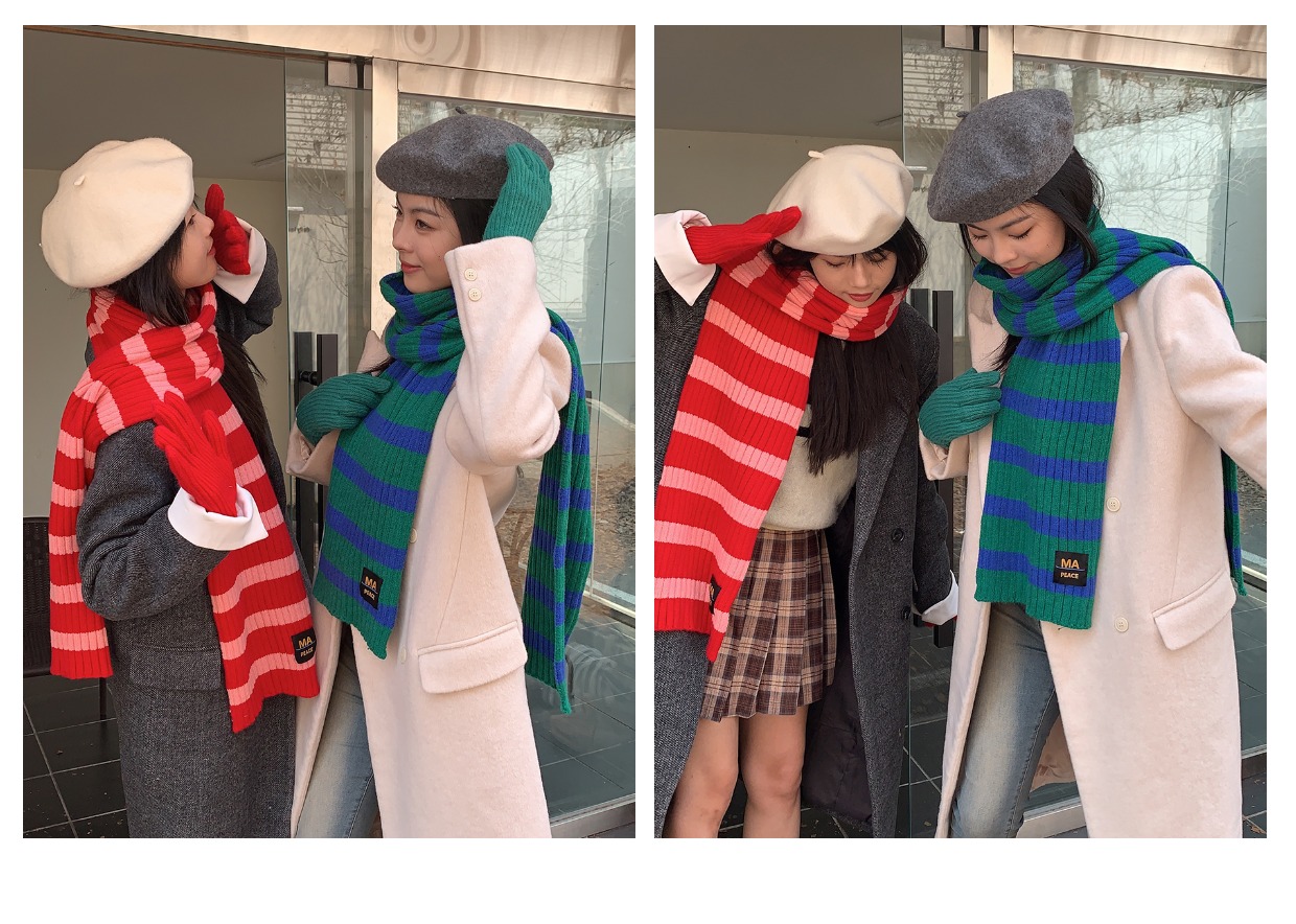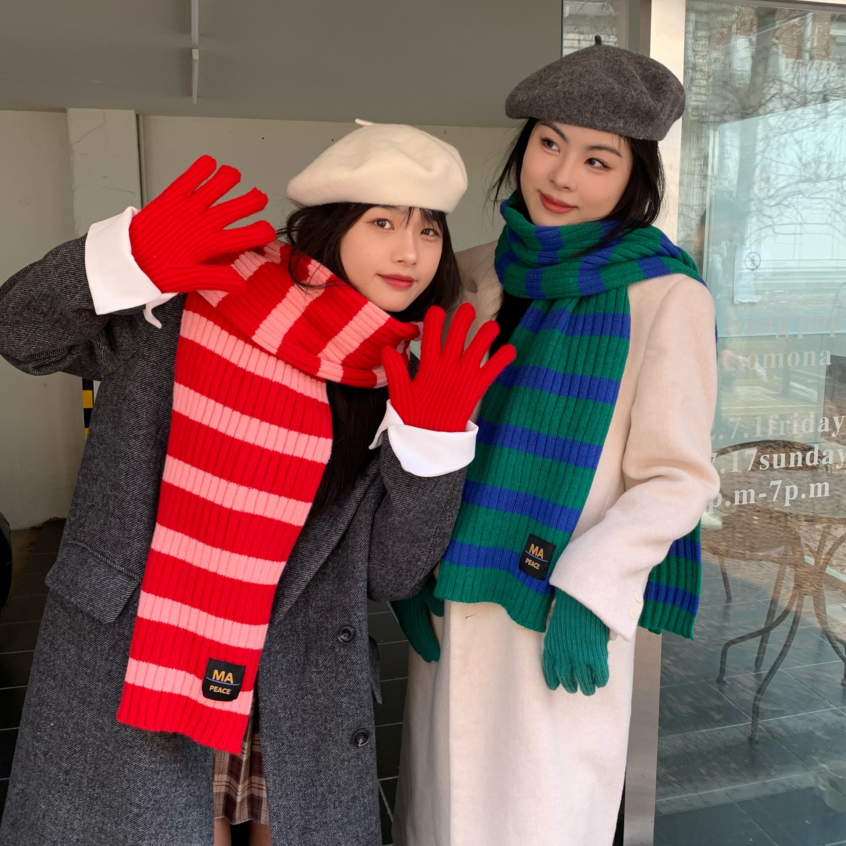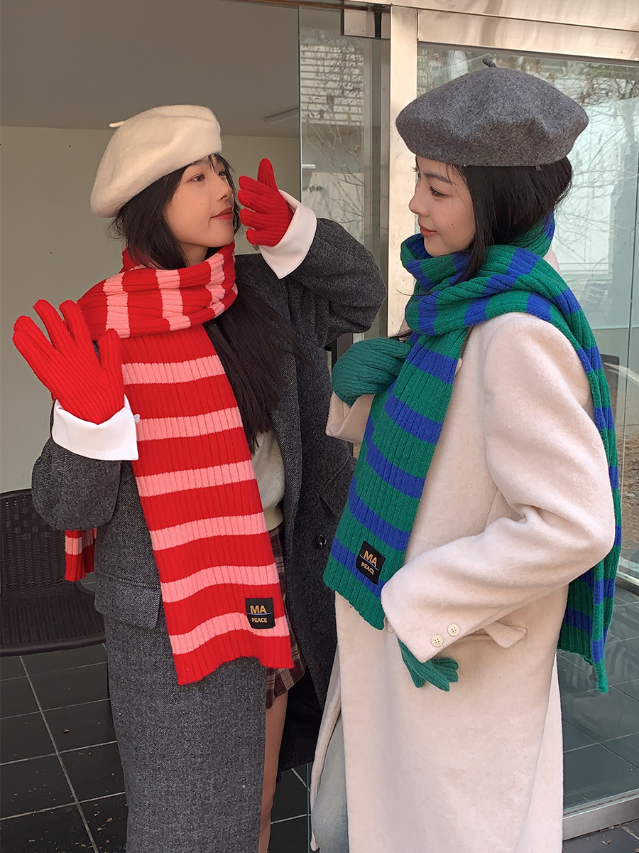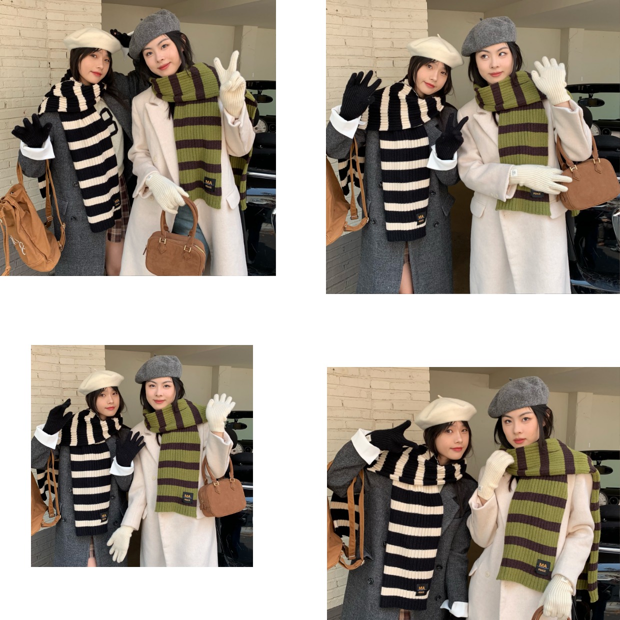 아름다운 소녀 ~ 대학 스타일 스트라이프 스카프 여성 가을과 겨울 한국 모직은 따뜻한 학생 니트 스카프 목도리를 착용하는 것이 좋습니다