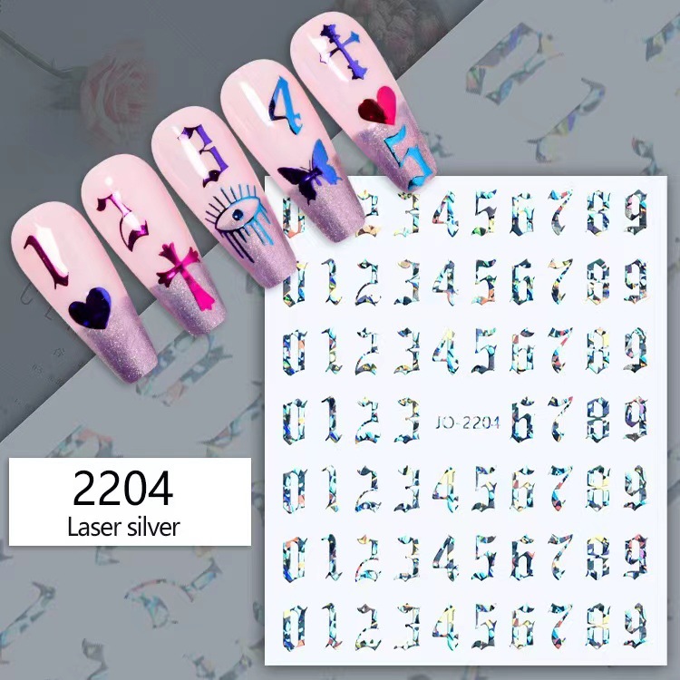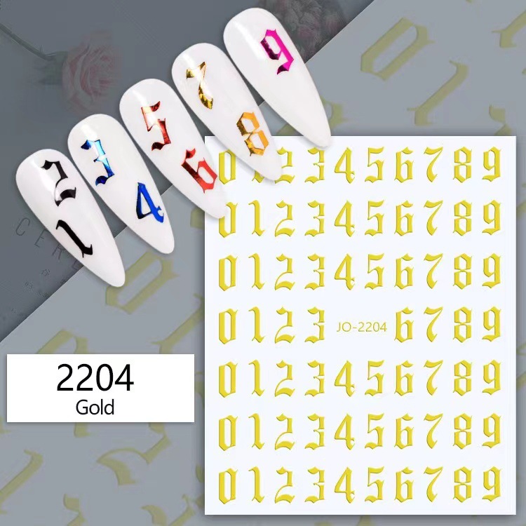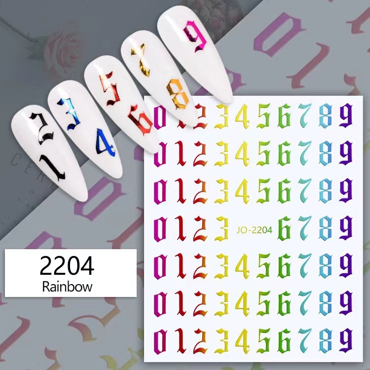 네일 아트 스티커 새로운 디지털 멀티 컬러 옵션 네일 쥬얼리 JO2204 독립 접착 종이 카드 포장
