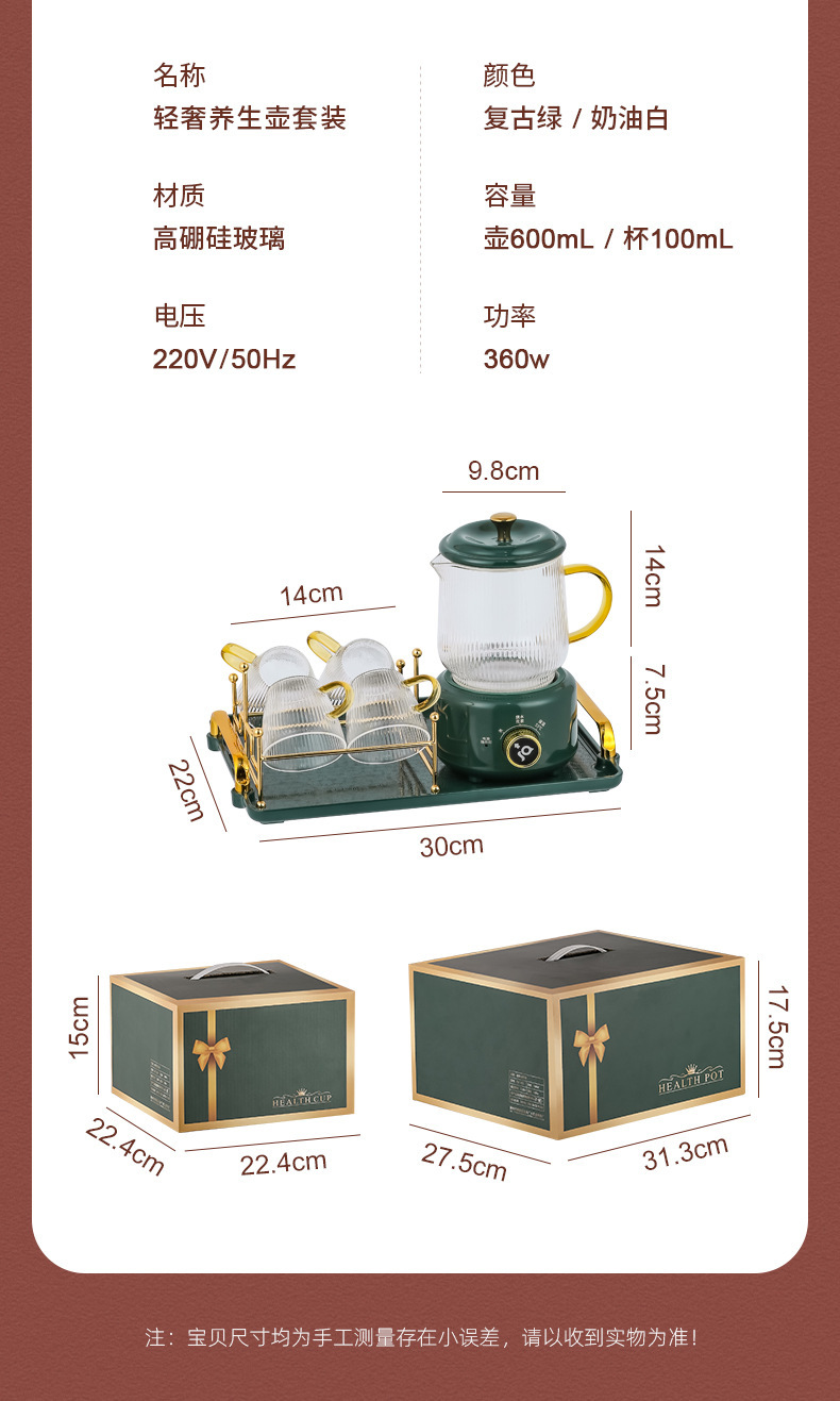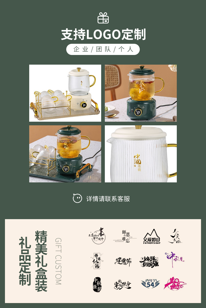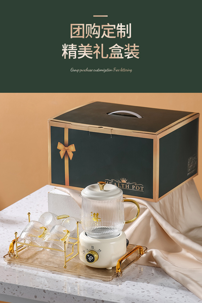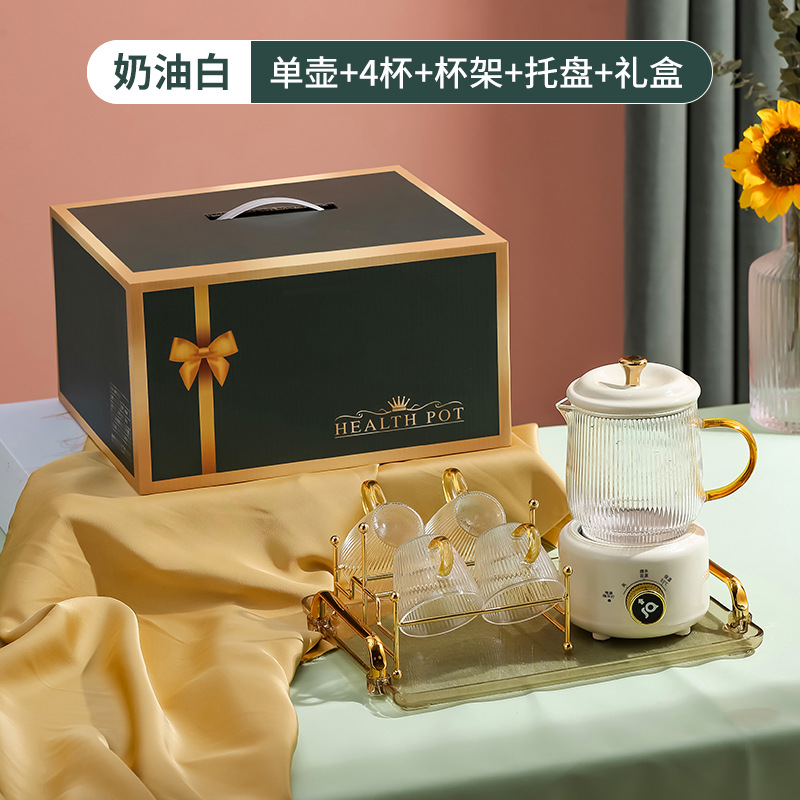 가벼운 럭셔리 끓는 찻 주전자 유리 김이 나는 차 세트 백색 차 자동 건강 냄비 차 세트 전기 세라믹 스토브 연례 회의 선물