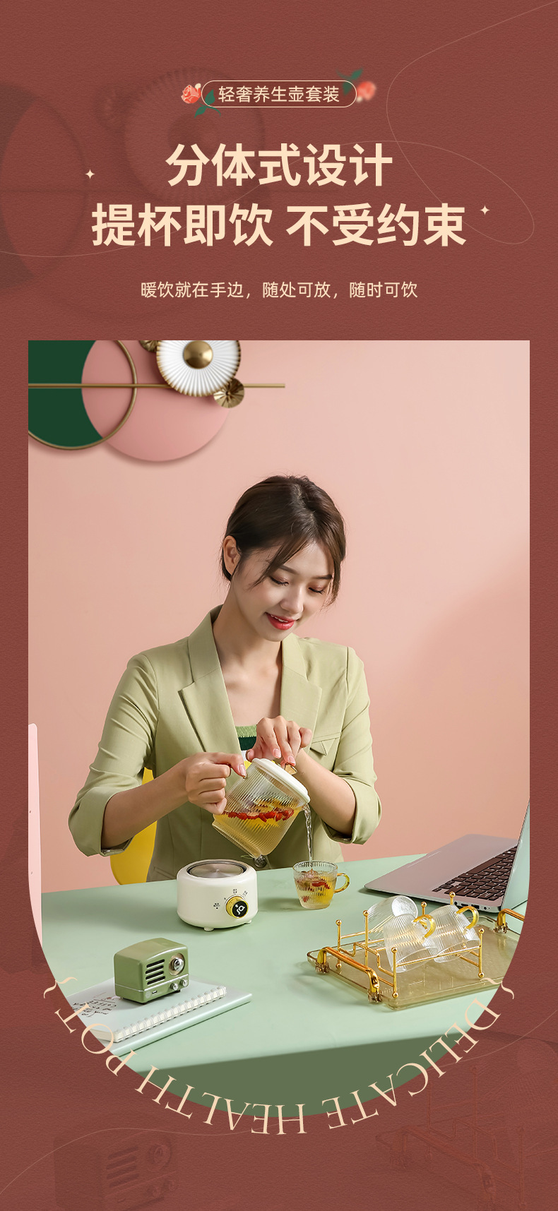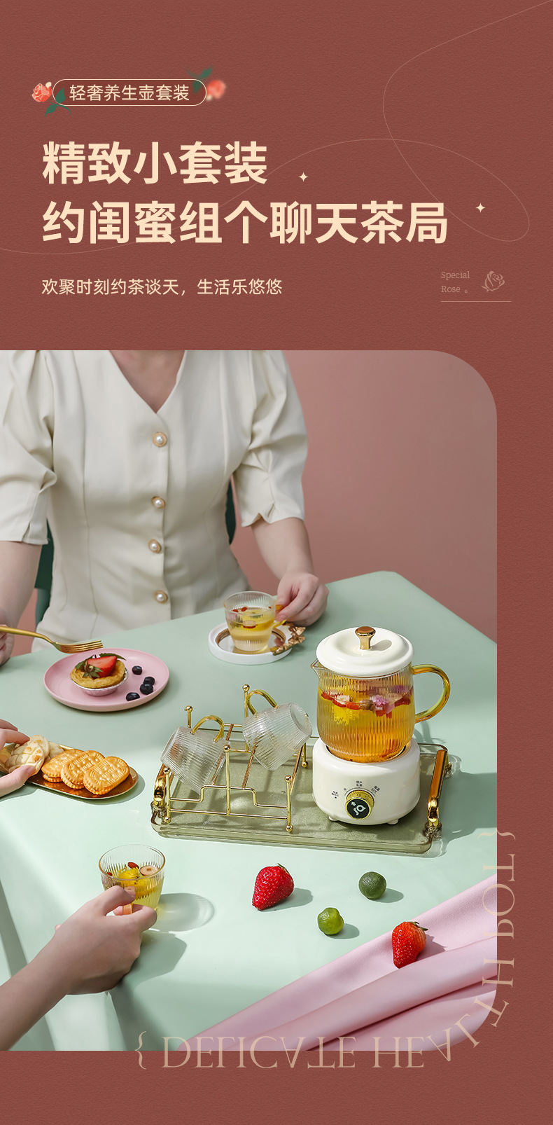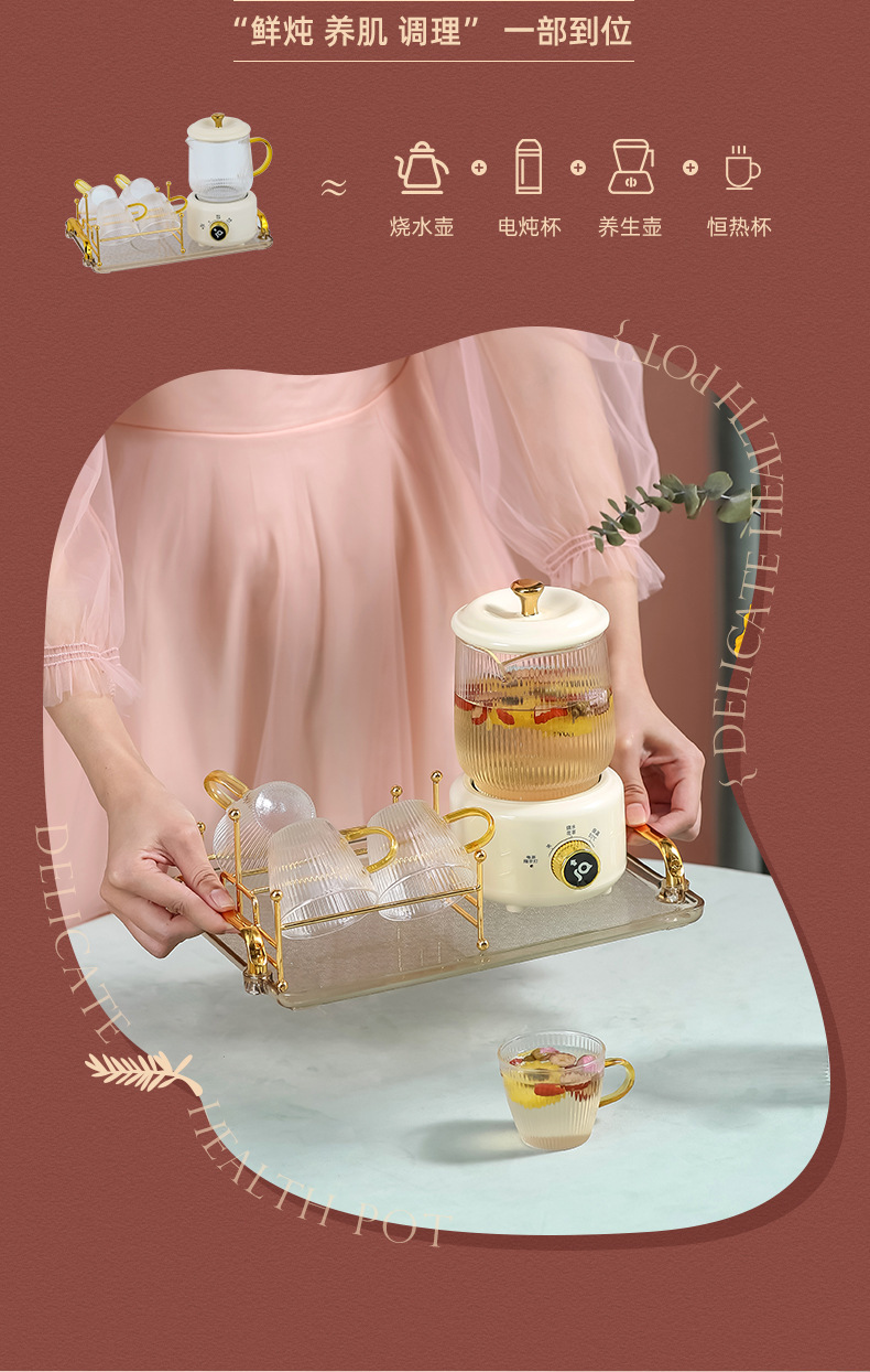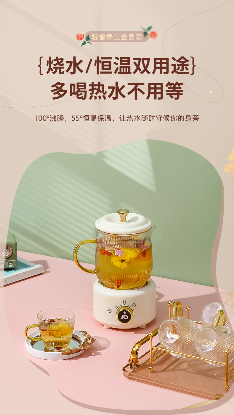 가벼운 럭셔리 끓는 찻 주전자 유리 김이 나는 차 세트 백색 차 자동 건강 냄비 차 세트 전기 세라믹 스토브 연례 회의 선물