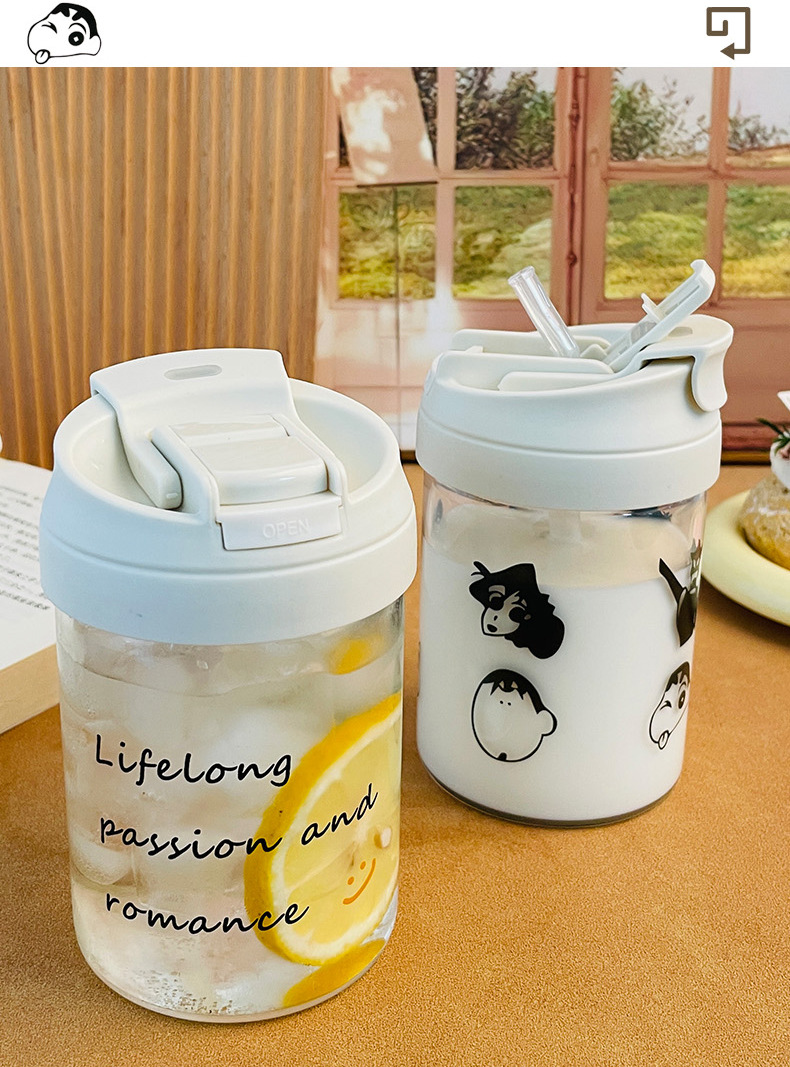 더블 마시는 유리 물 컵 여성용 고가의 귀여운 흡입 컵 동반 휴대용 컵 Instagram 스타일 사무실 커피 컵