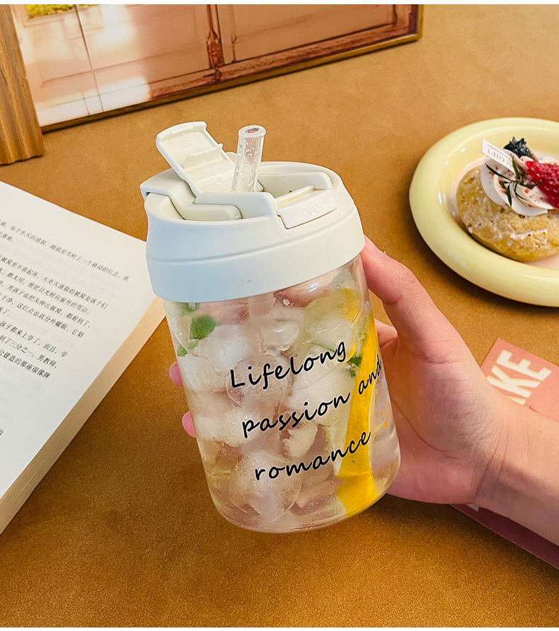더블 마시는 유리 물 컵 여성용 고가의 귀여운 흡입 컵 동반 휴대용 컵 Instagram 스타일 사무실 커피 컵스토어 가기