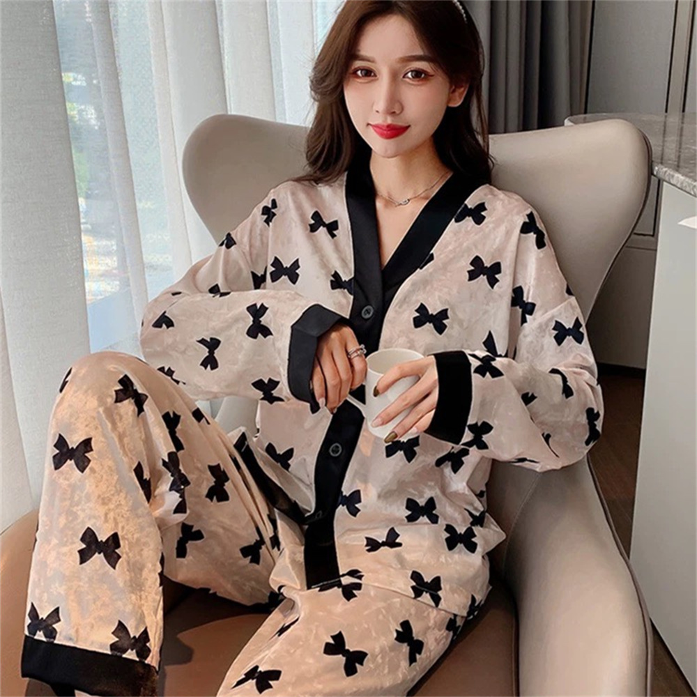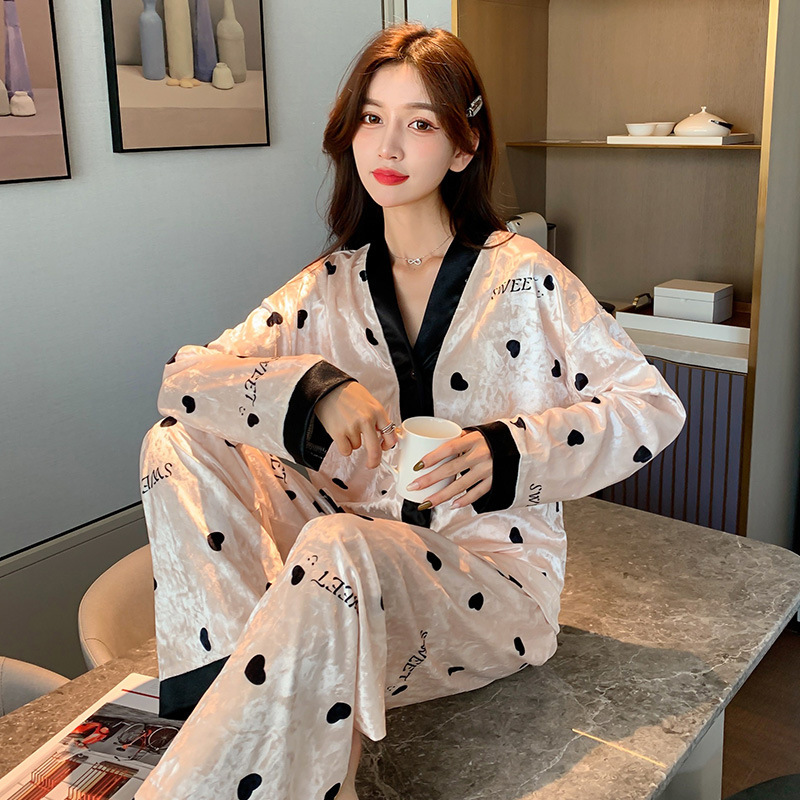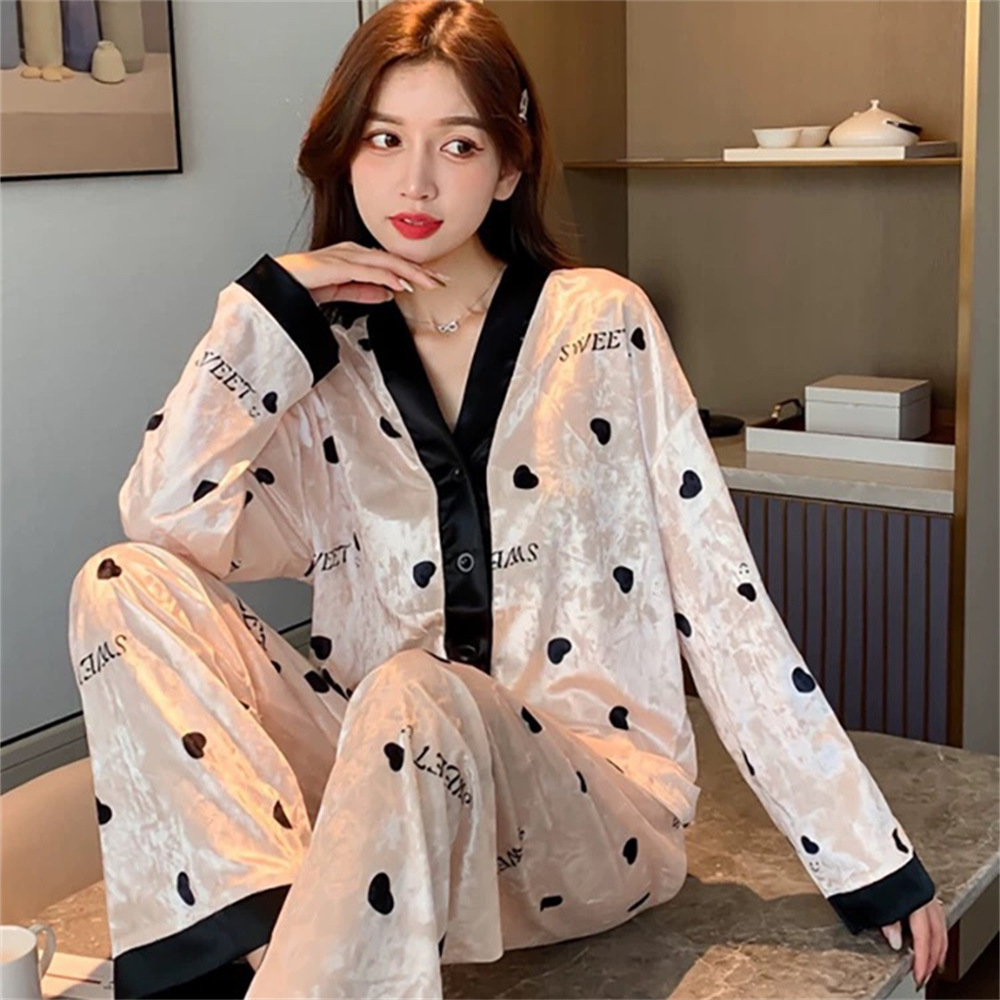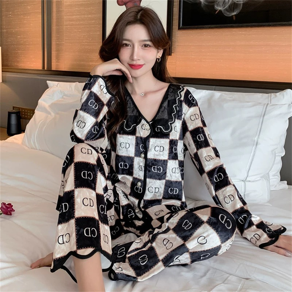 2025 새로운 가을 겨울 여성용 골드 벨벳 잠옷, 고급 긴팔 바지, 가디건, 홈웨어, 대리 가능스토어 가기