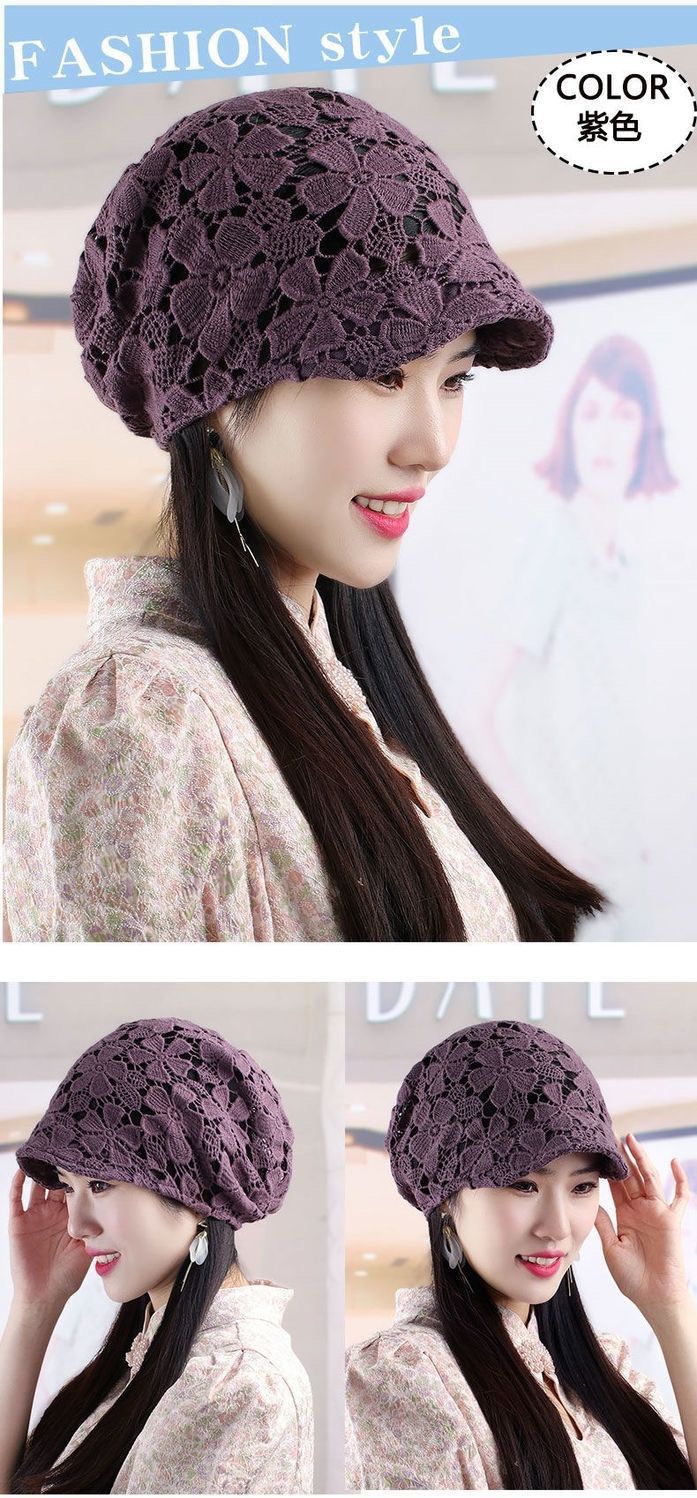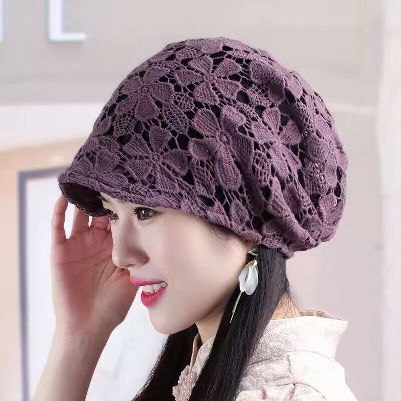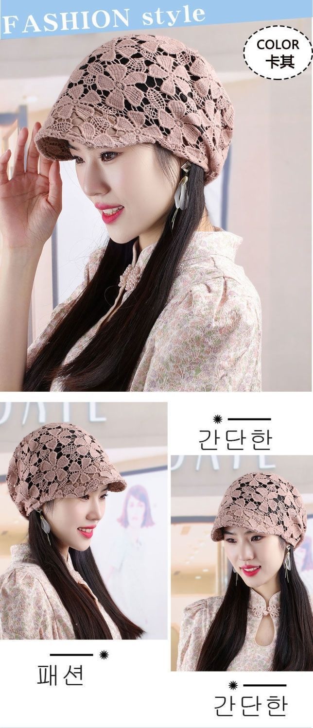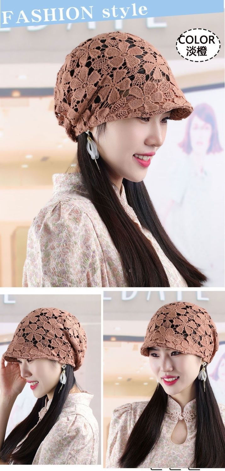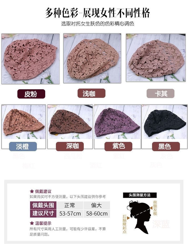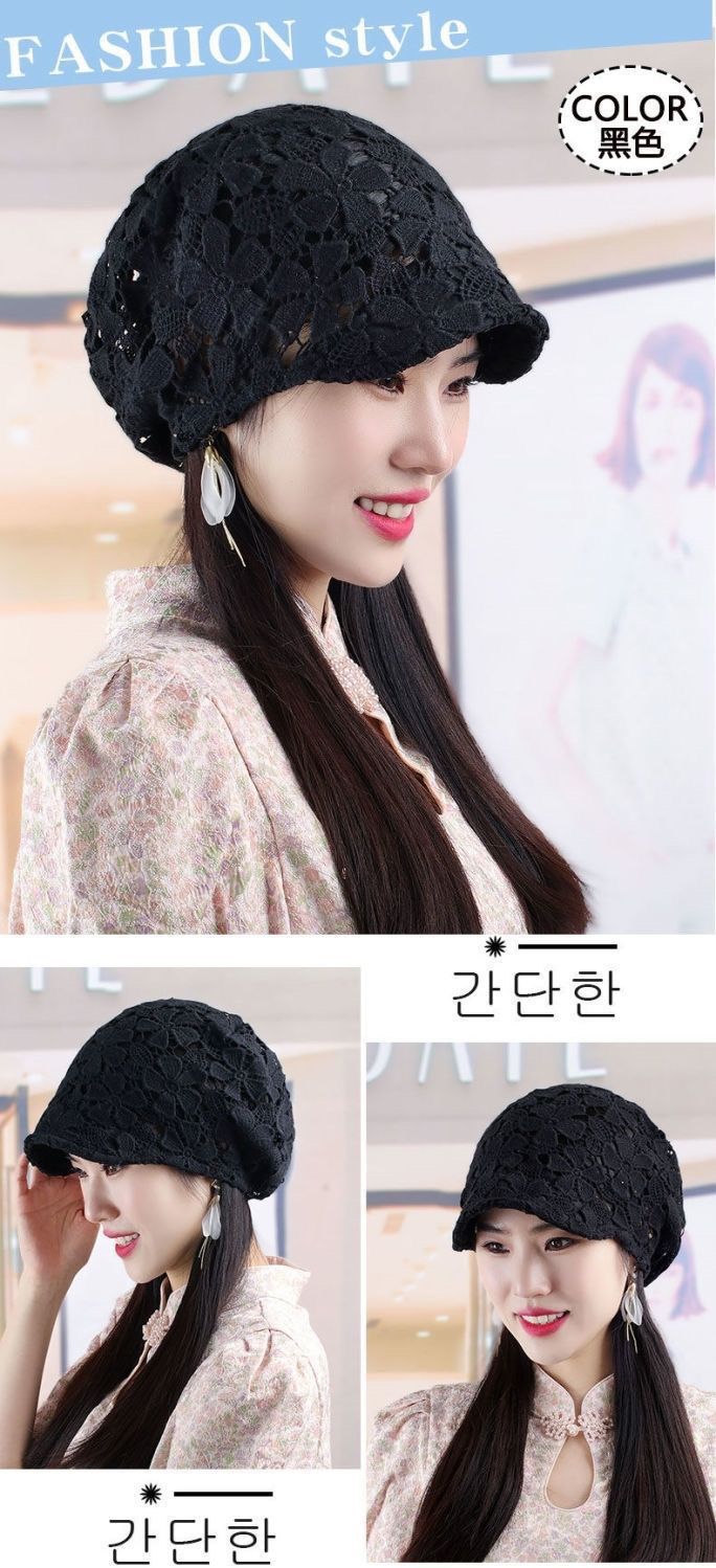봄/여름 2022 새로운 중공 꽃 크로 셰 뜨개질 소프트 림 Baotou 모자 통기성 니트 터번 모자 화이트 헤어 커버 모자 여성용스토어 가기