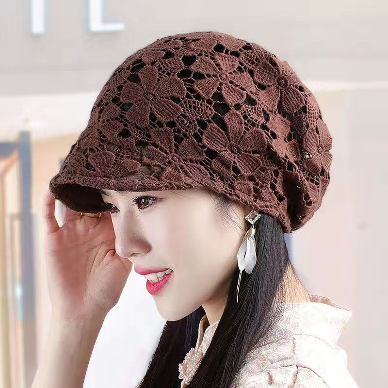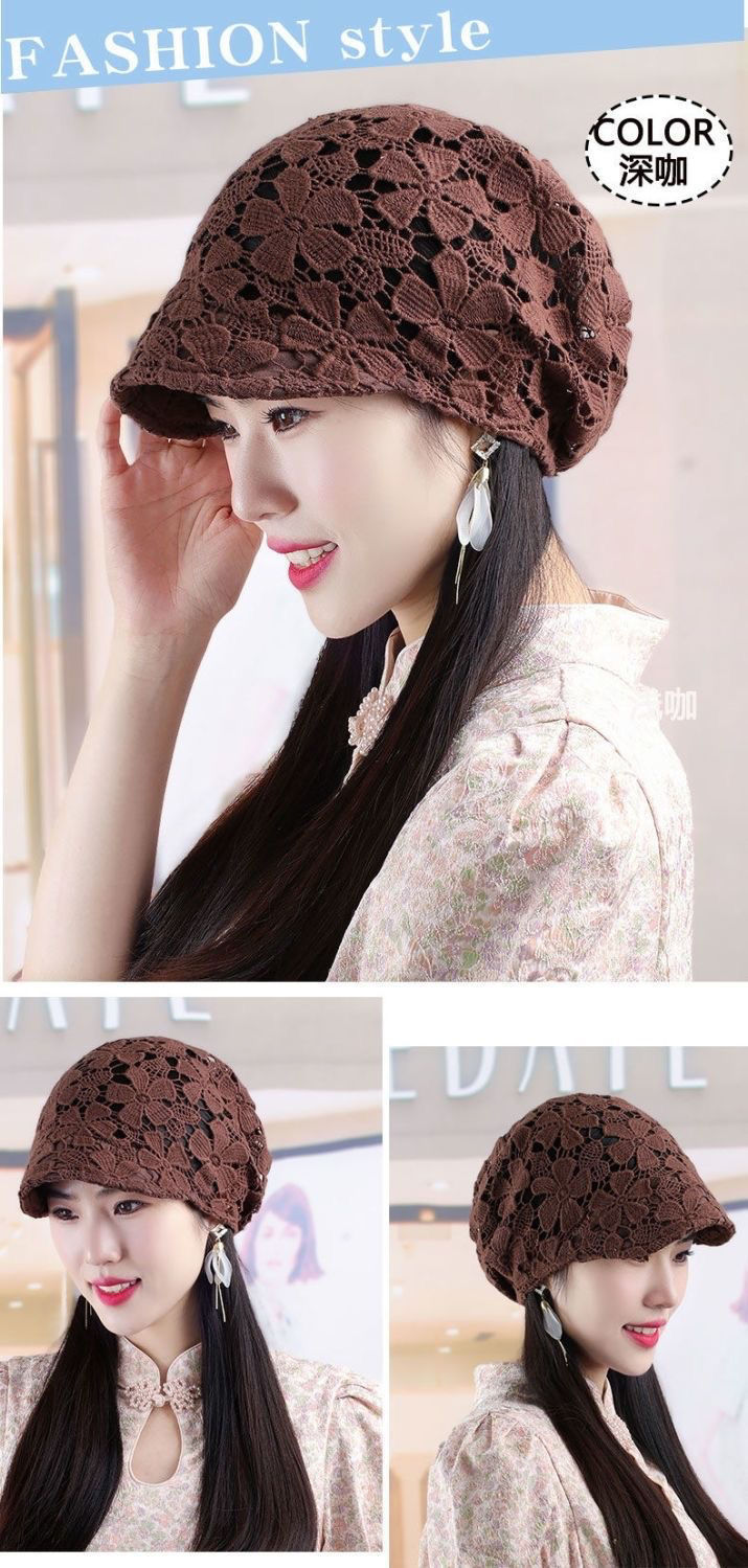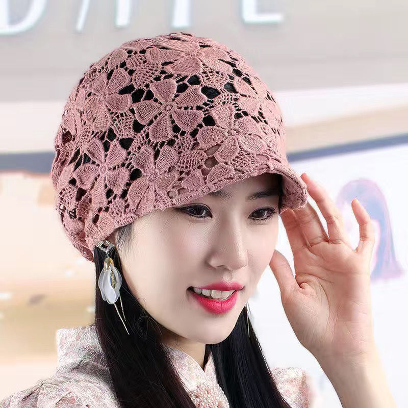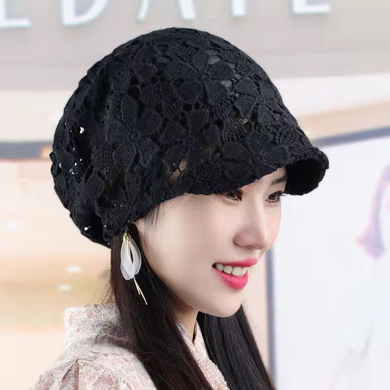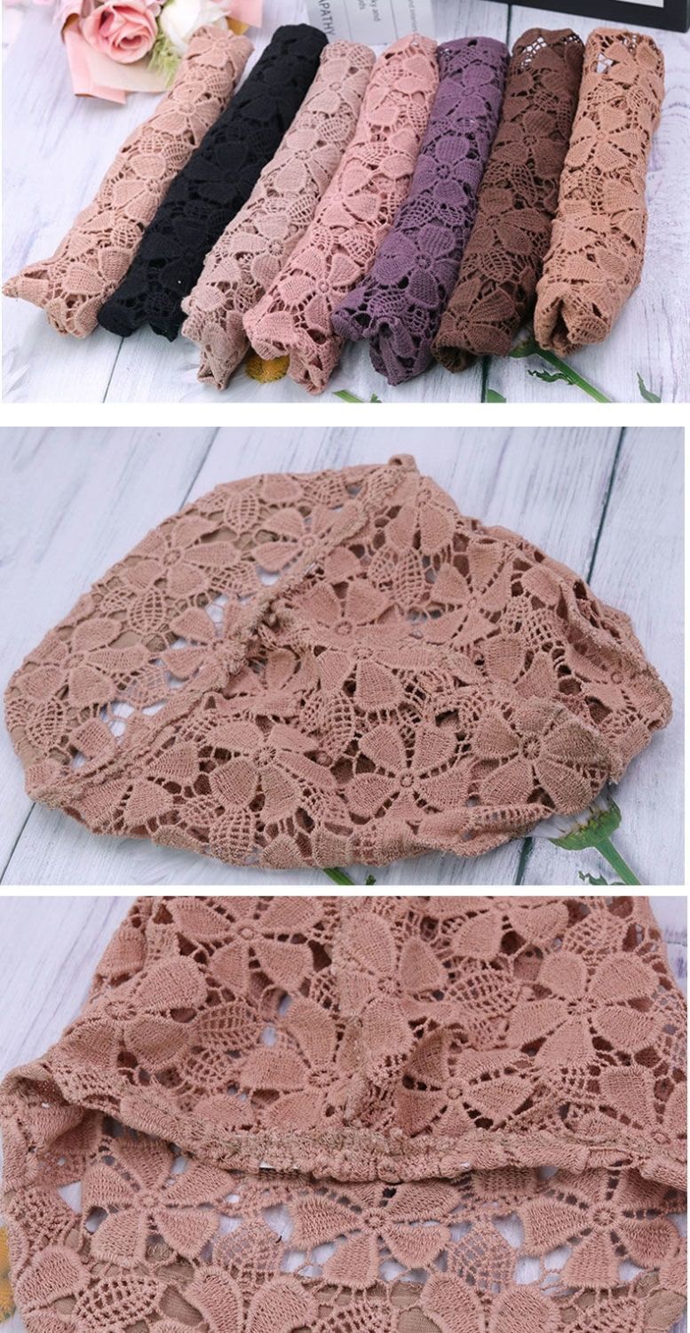 봄/여름 2022 새로운 중공 꽃 크로 셰 뜨개질 소프트 림 Baotou 모자 통기성 니트 터번 모자 화이트 헤어 커버 모자 여성용스토어 가기