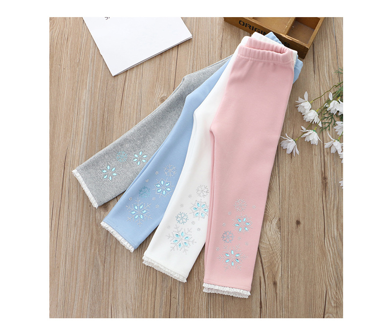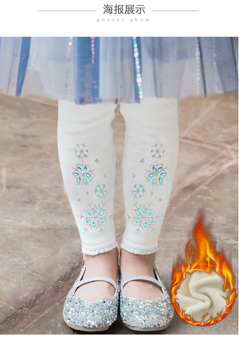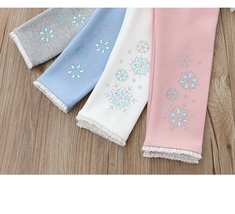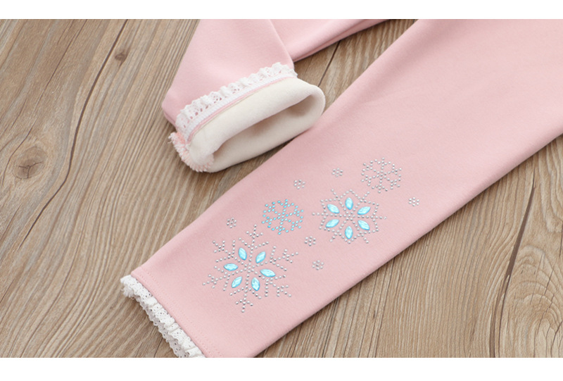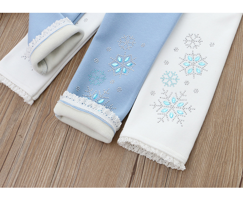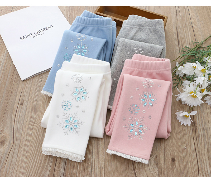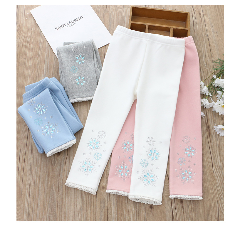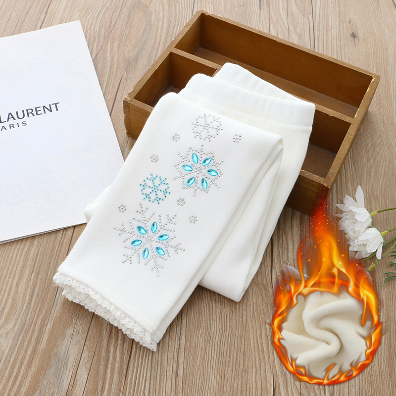 2024 아동 의류 겨울 새 스타일 소녀 벨벳 레깅스 레이스 핫 다이아몬드 아기 소녀 흰색 바지 드롭 배송